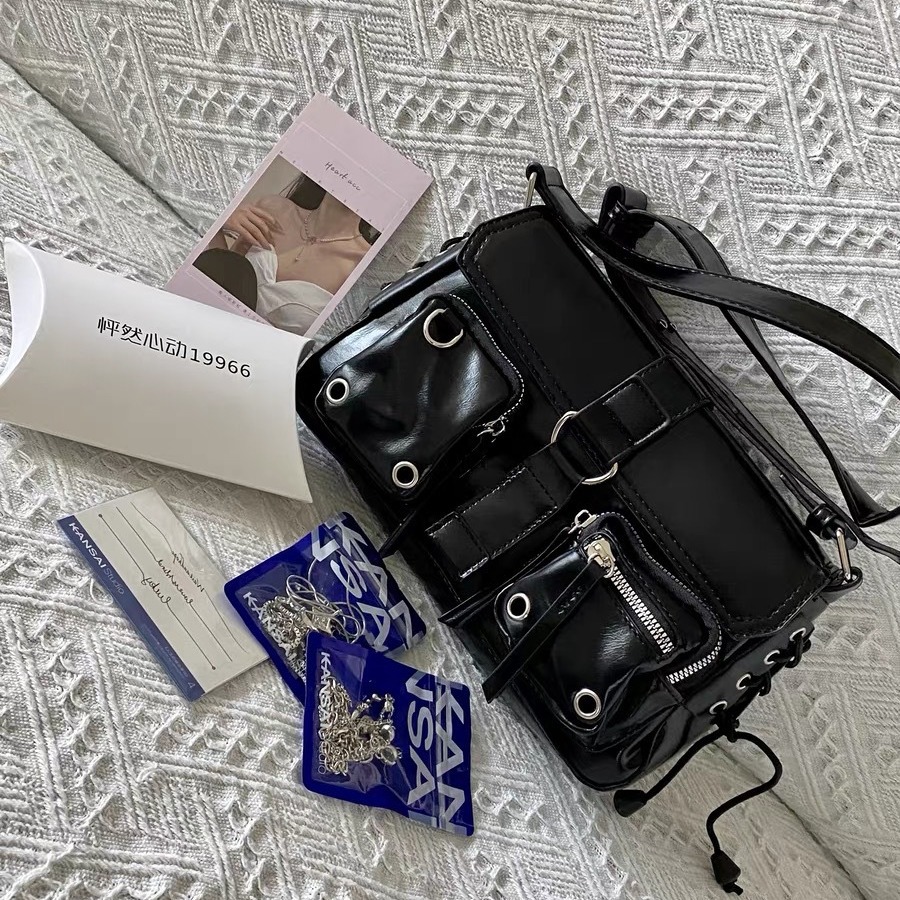 SIZE: Height 16cm, bottom width 27cm, thickness 6cm, shoulder strap length: 91cm one shoulder can be crossbody