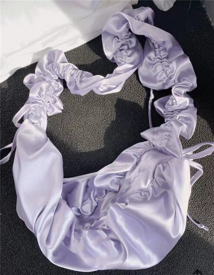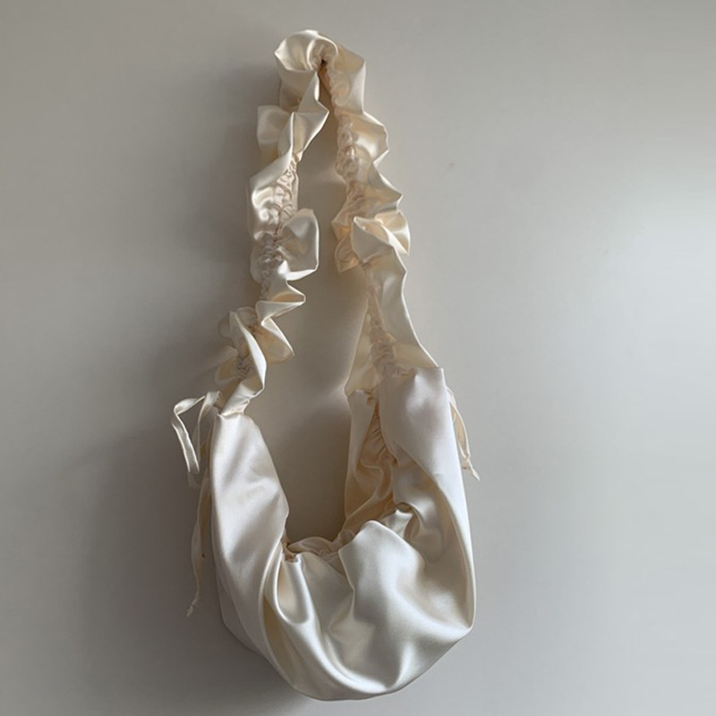 Underarm Satin Versatile Casual Pleated Lace Drawstring Design Large Capacity Shoulder Messenger Bag
