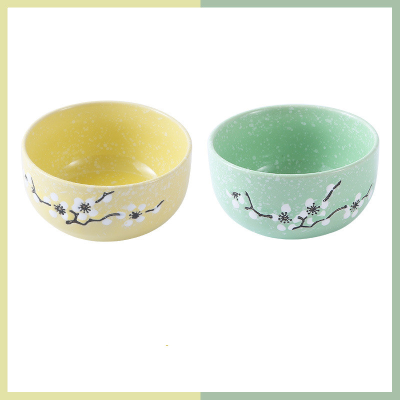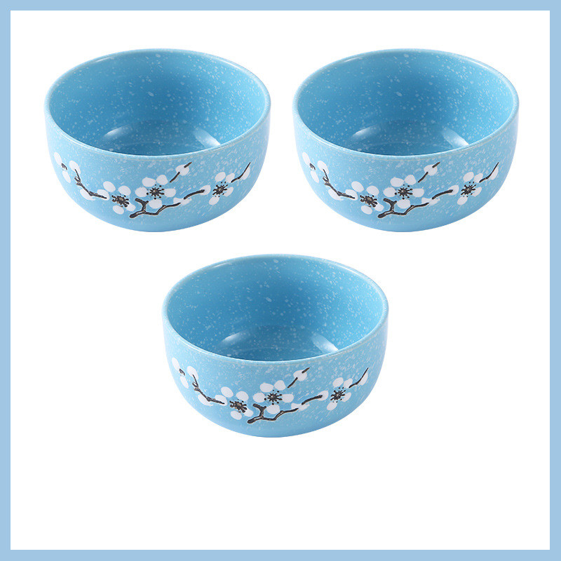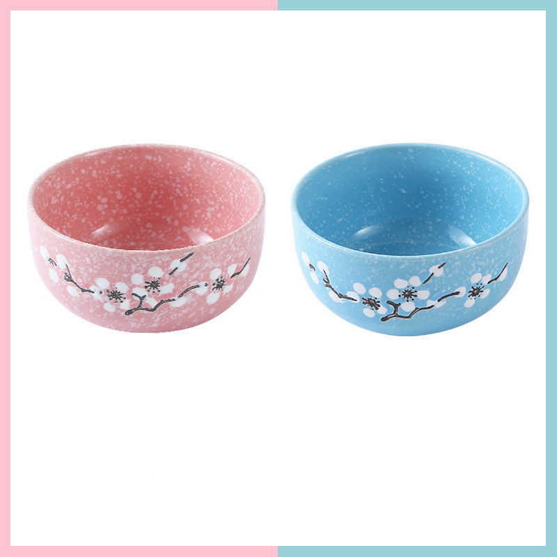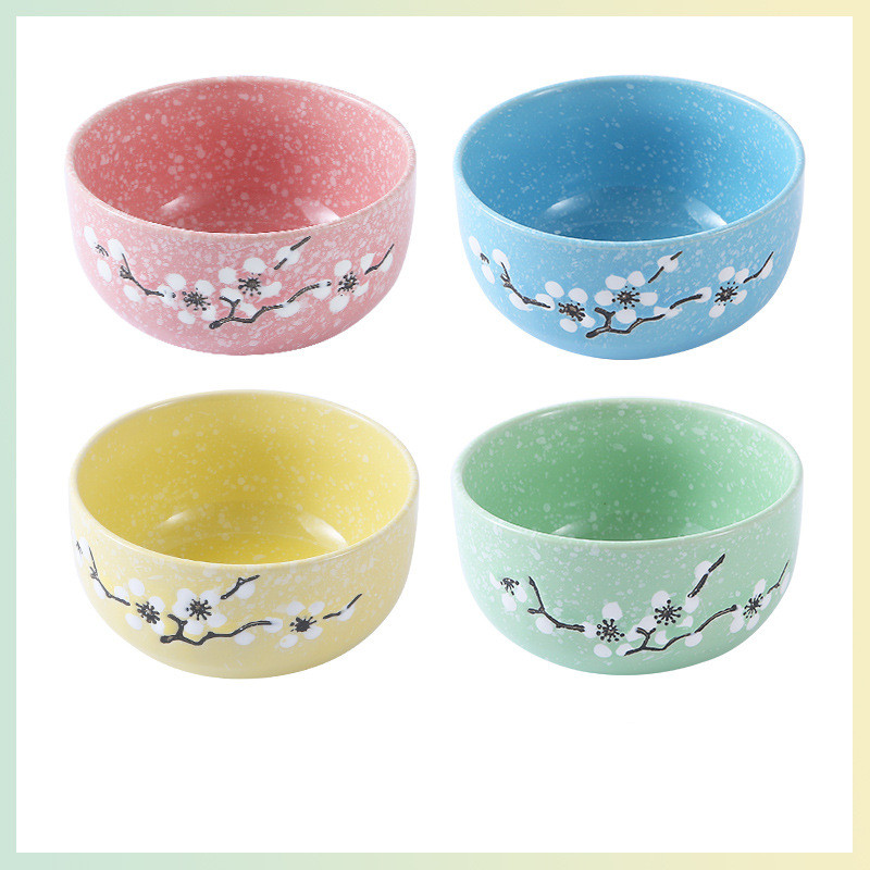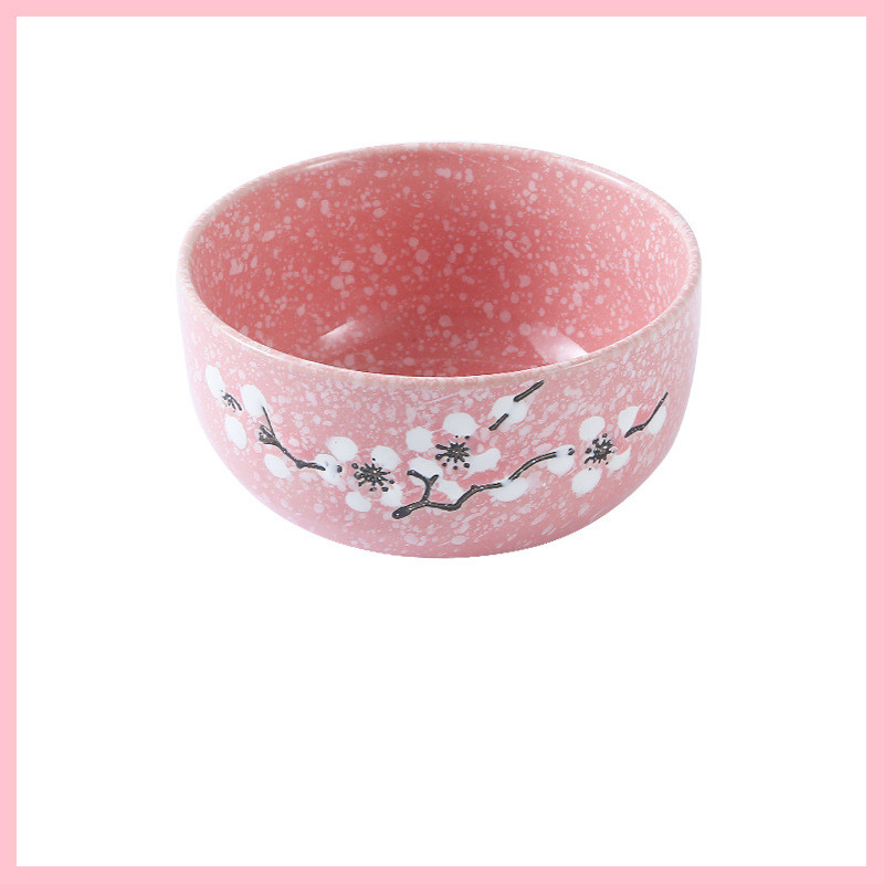 Underglaze Ceramic Bowl Japanese Creative Baby Cute Plum Blossom Small Bowl Household Tableware Children Eating Bowl Soup Bowl