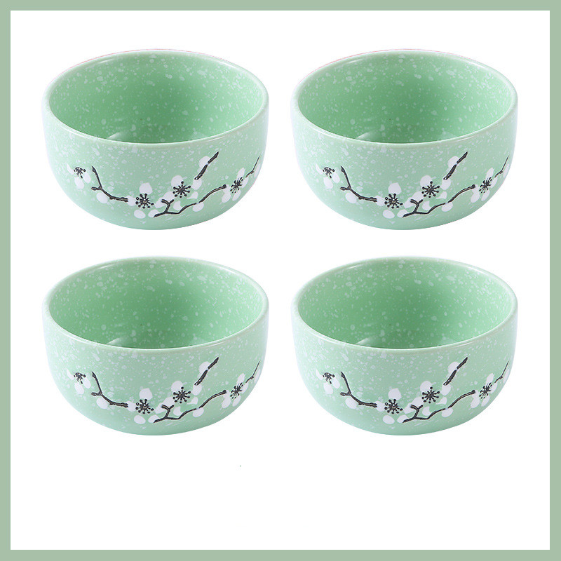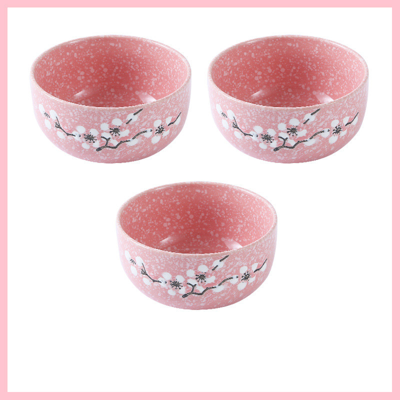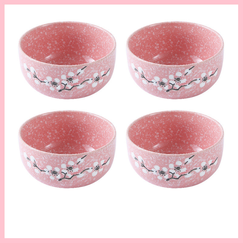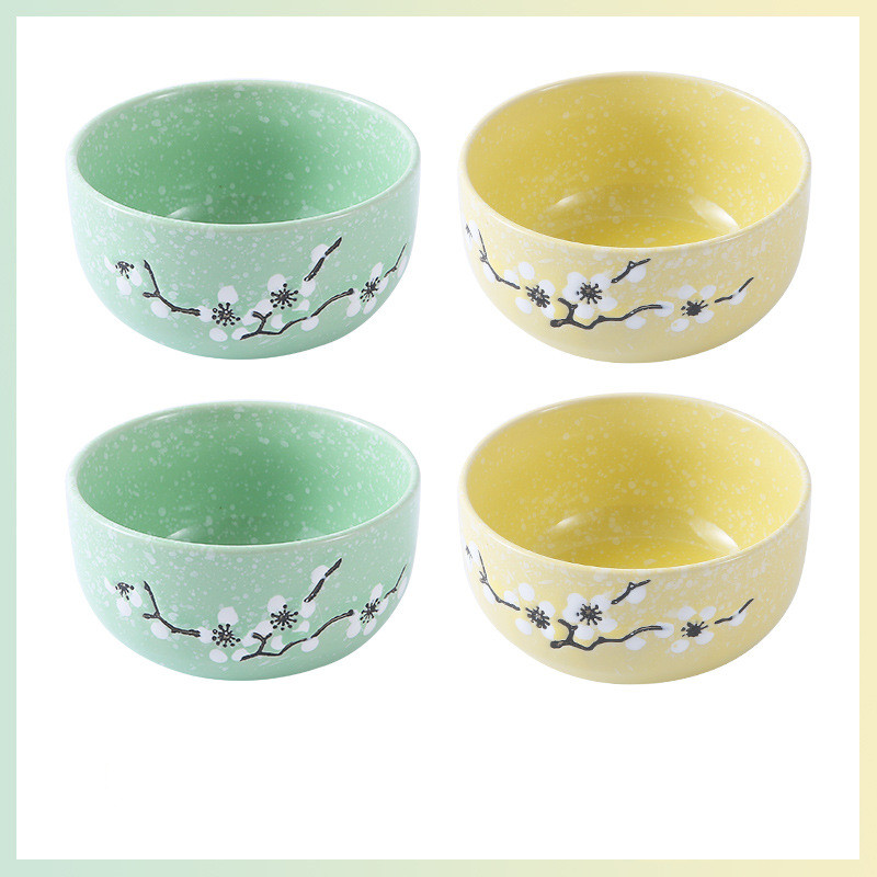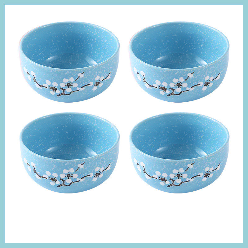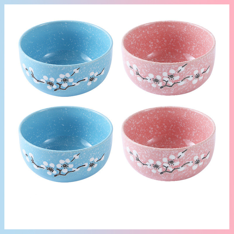 Underglaze Ceramic Bowl Japanese Creative Baby Cute Plum Blossom Small Bowl Household Tableware Children Eating Bowl Soup Bowl
