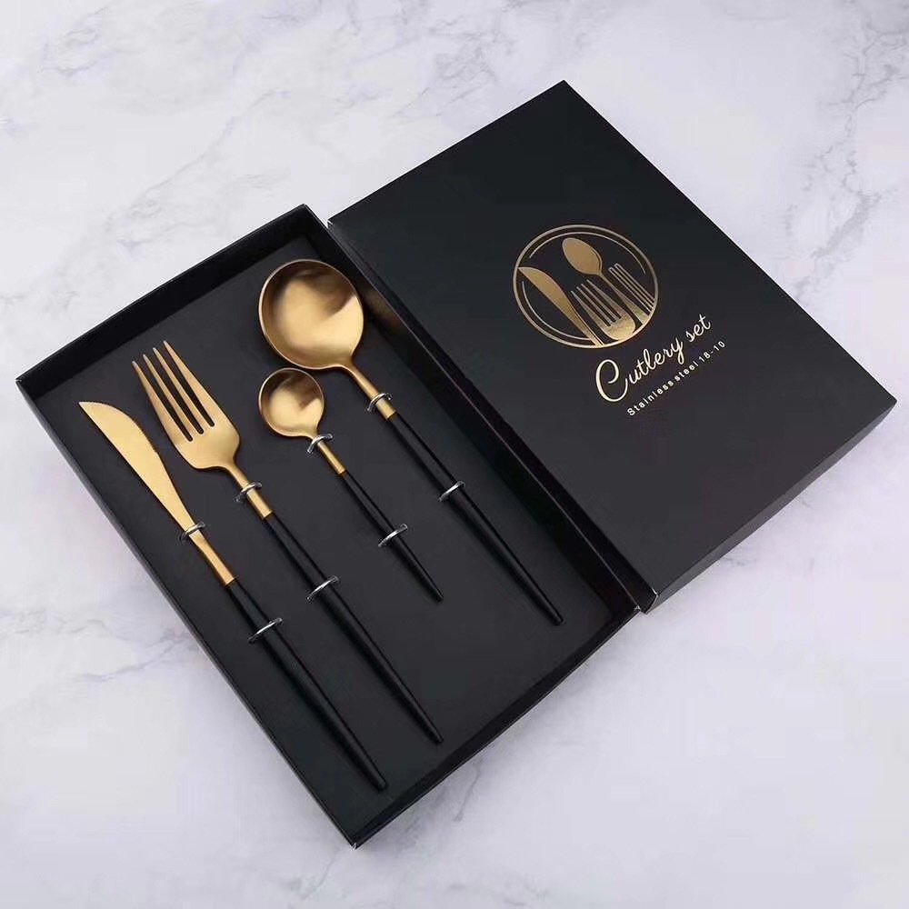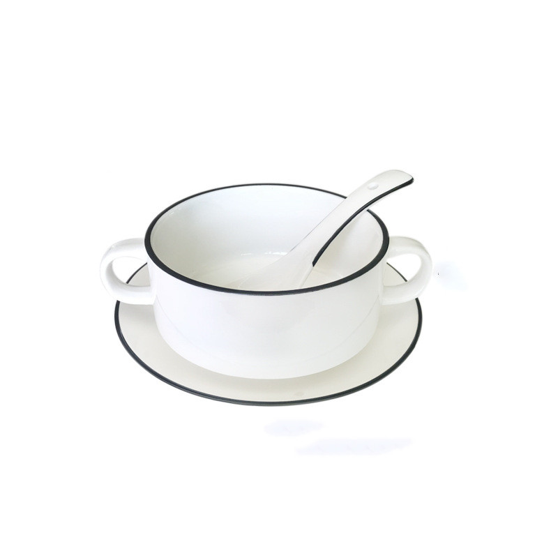 K: 4.5 inch black rim binaural soup bowl + saucer spoon,