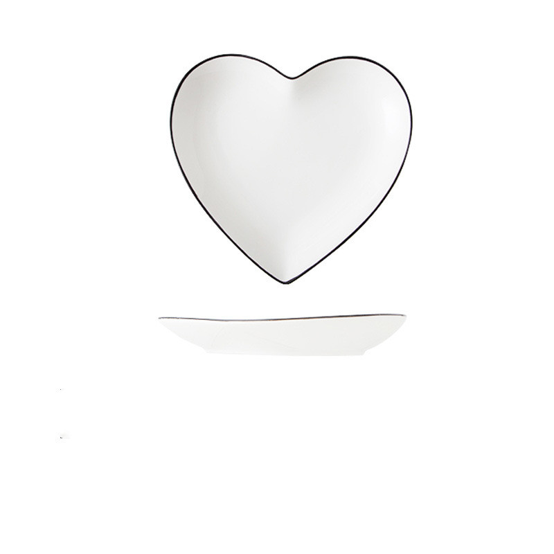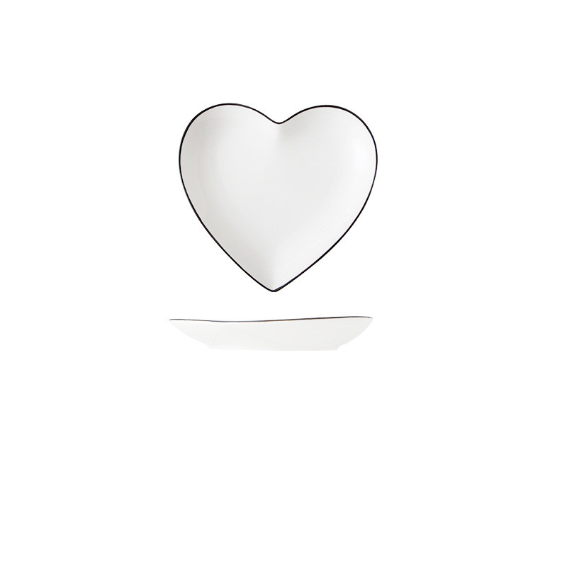 I: 8 inch peach heart plate with black edges — suitable for fruits,