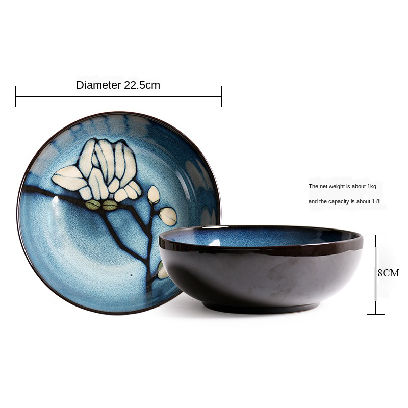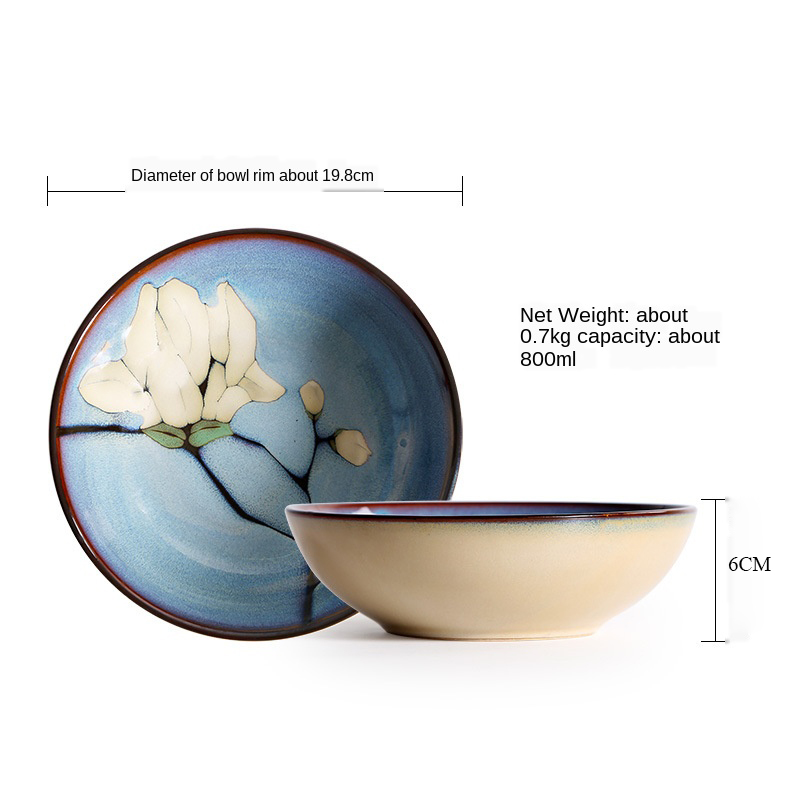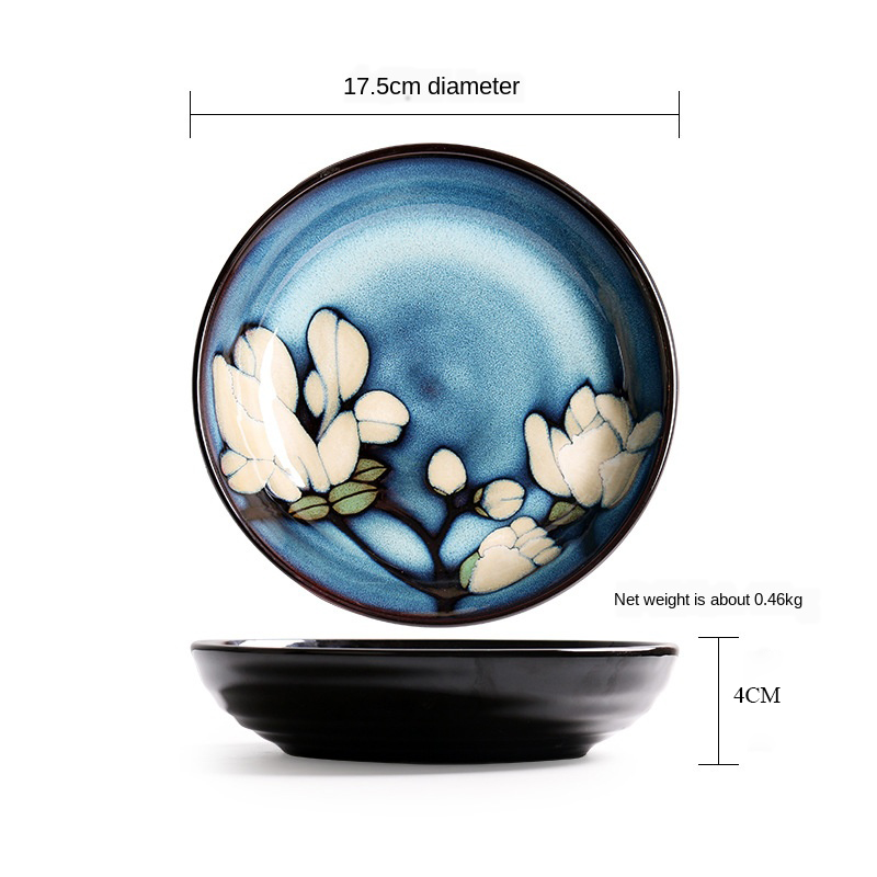 Color: Magnolia Rice Bowl 4.5 inches, Magnolia Rice Bowl 4.8 inches, Magnolia Salad Bowl 6 inches, Magnolia Noodle Bowl 8 inches, Magnolia Soup Bowl 9 inches, Magnolia Deep Plate 7 inches, Magnolia Deep Plate 8.5 inch, magnolia flower small plate 8.5 inches, magnolia flower large plate 10.8 inches, magnolia flower square small plate 7.5 inches, magnolia flower square plate 10.8 inches, magnolia flower big fish plate 11.5 inches, magnolia flower cup 400ml, magnolia flower sauce plate, magnolia flower flower spoon