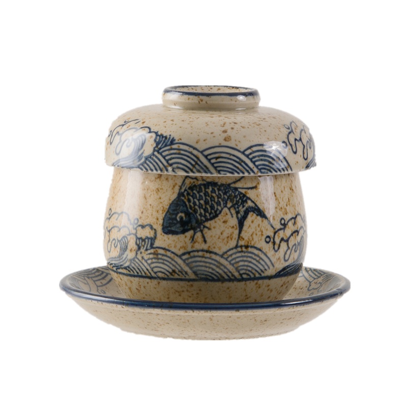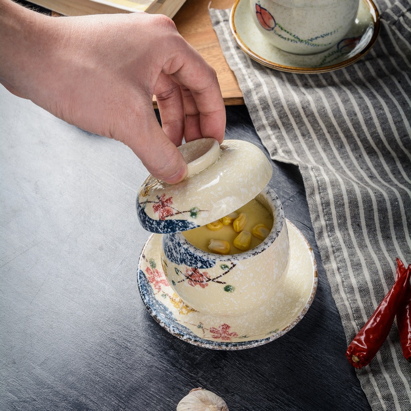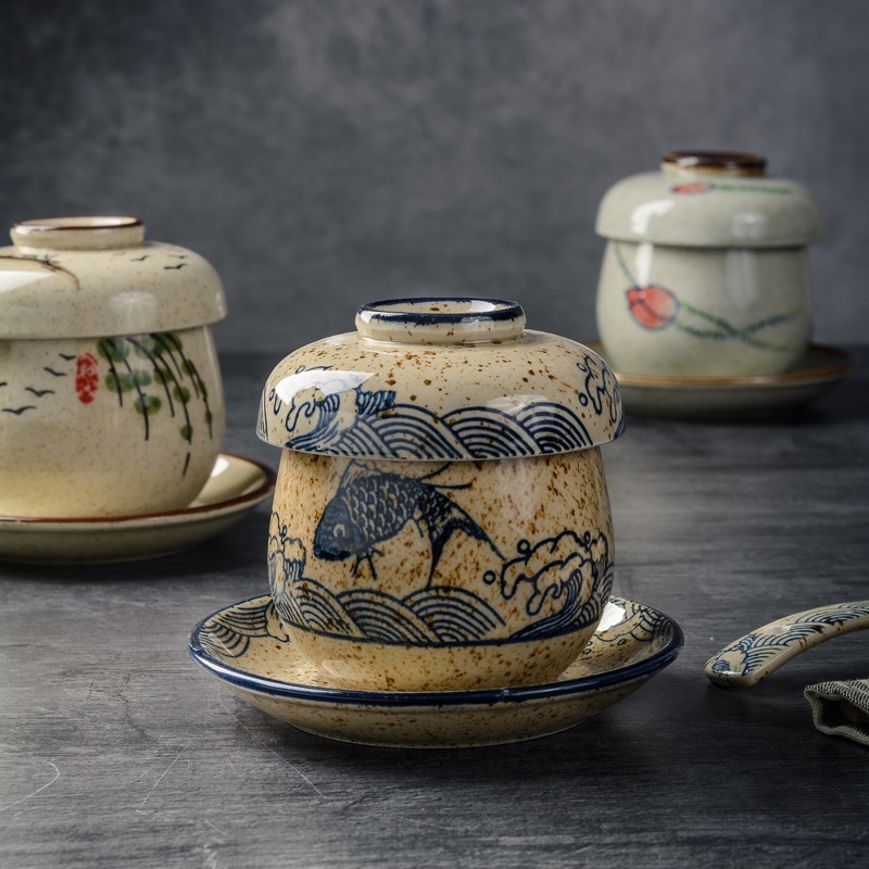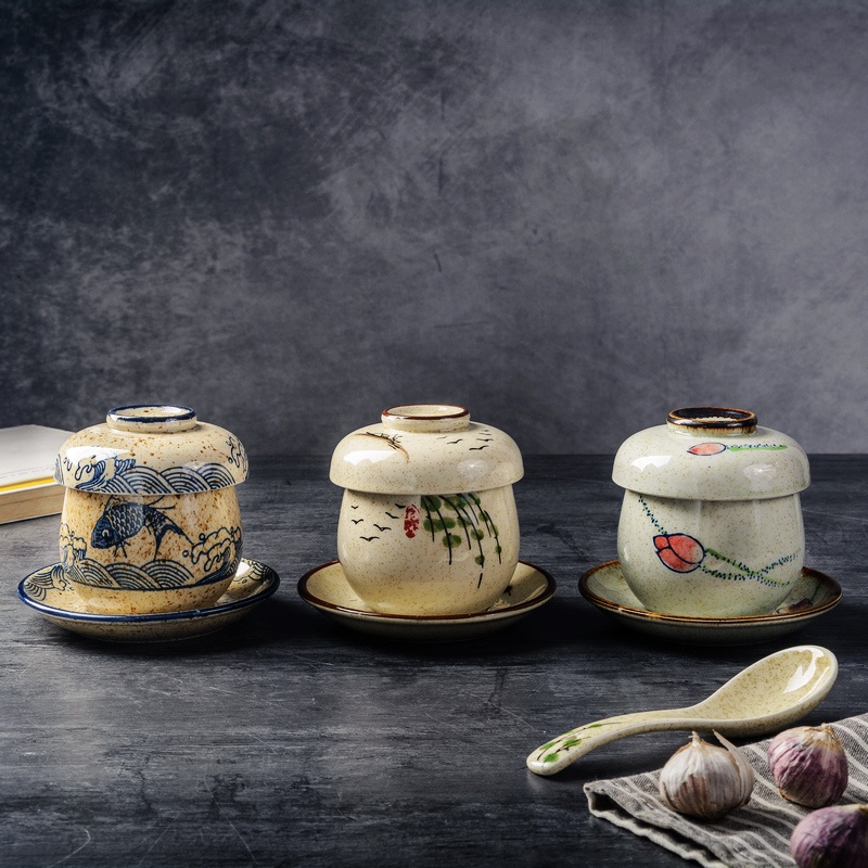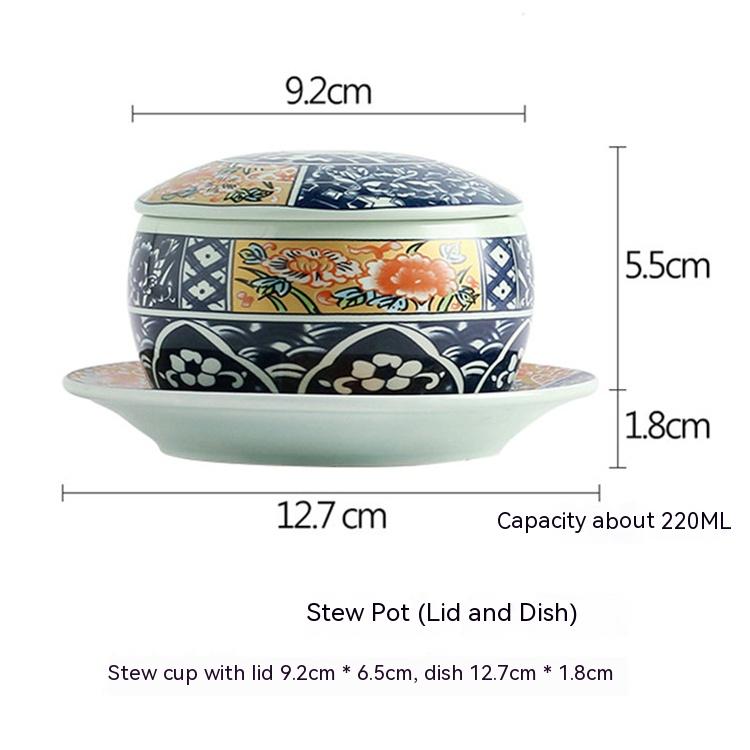 Underglaze Steaming Bowl Ceramic Stew Bowl With Lid High Temperature Resistance
