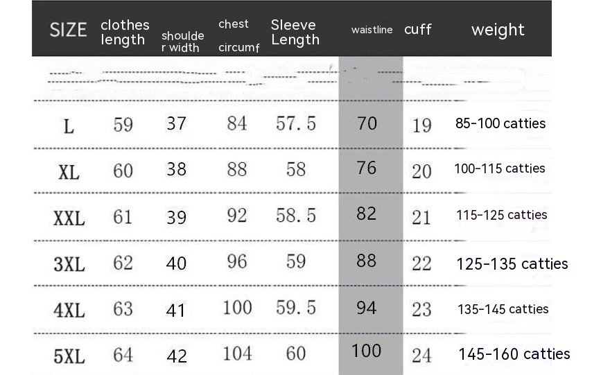 Size: L 45.00kg-52.50kg,XL recommend 52.50kg-57.50kg,2XL recommend 57.50kg-62.50kg,3XL recommend 62.50kg-67.50kg,4XL recommend 67.50kg-72.50kg,5XL recommend 72.50kg-82.50kg