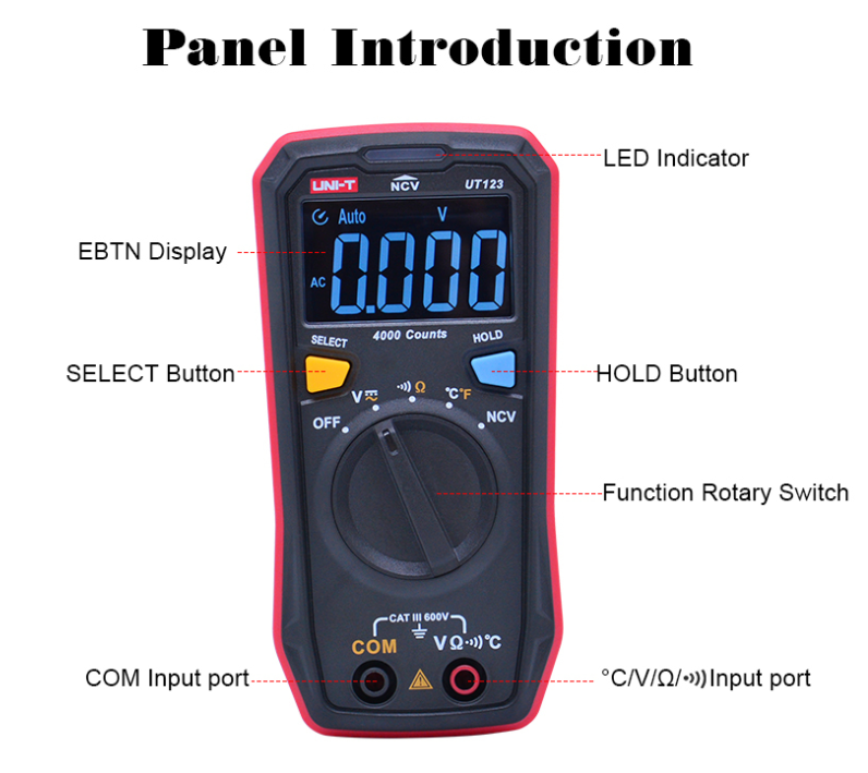 Direct current voltage (DCV): 4V/40V/400V/600V