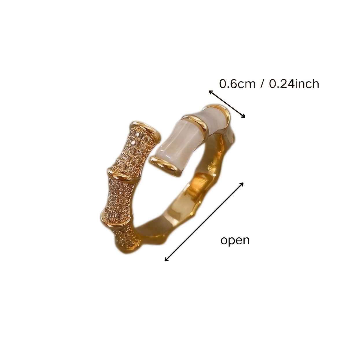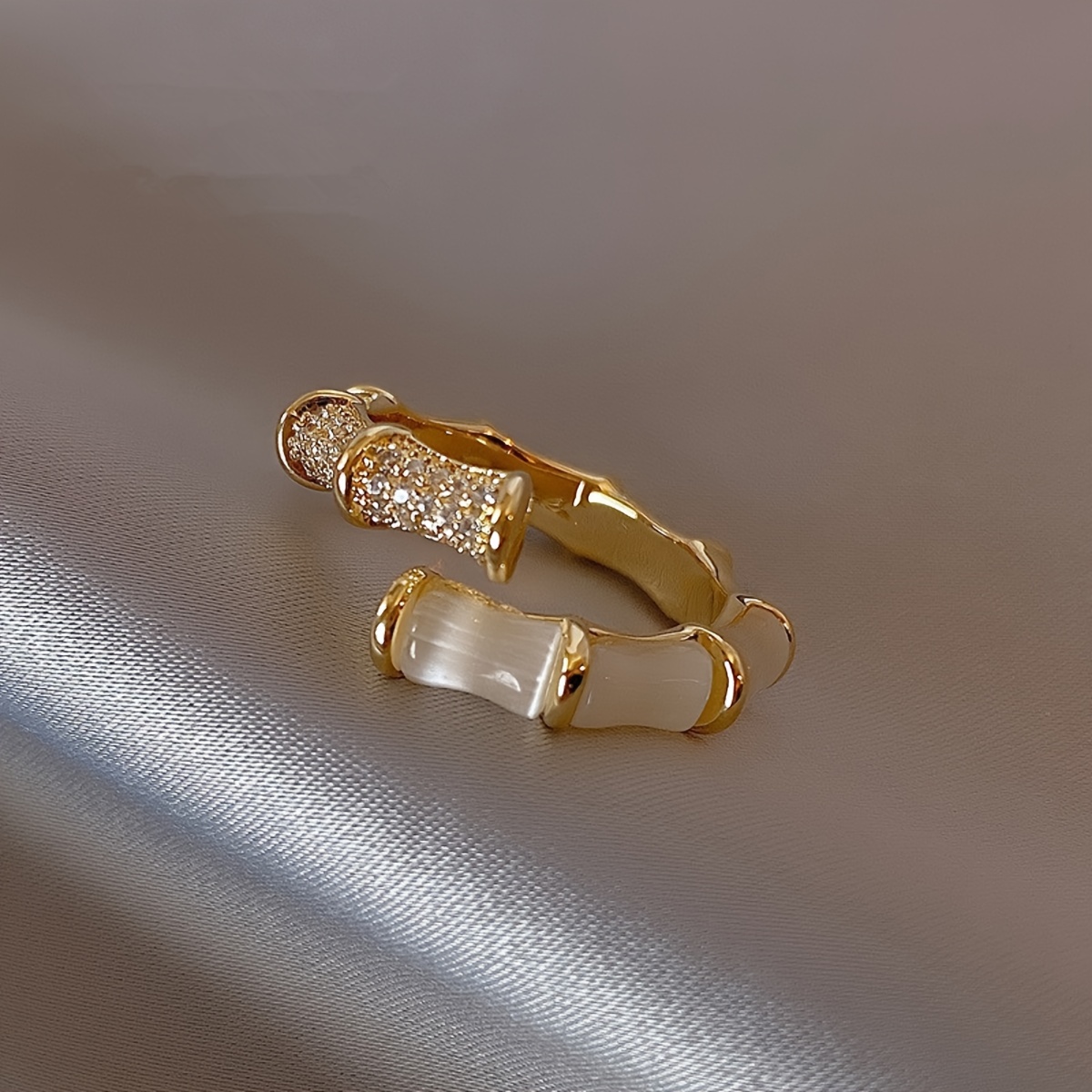 Unisex Alloy Geometric Bamboo Joint Ring, Cat's Eye Stone Open Adjustable Jewelry