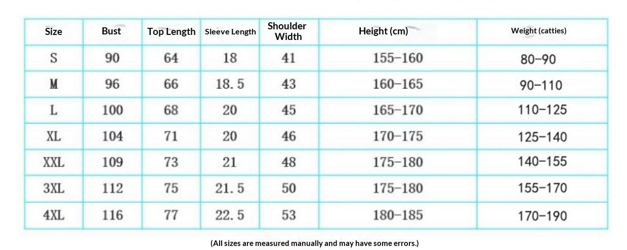 Sizes: S, M, L, XL, XXL, XXXL, XXXXL