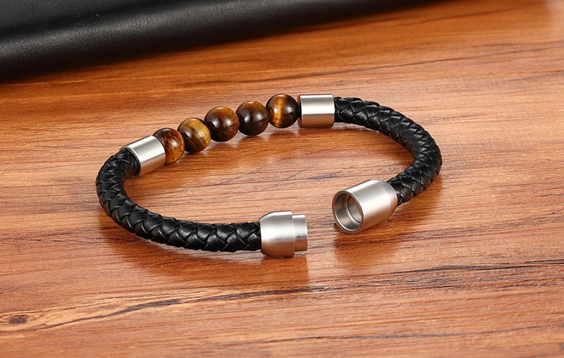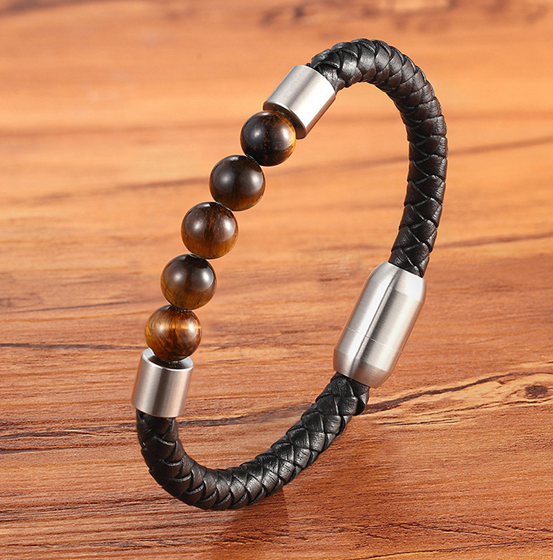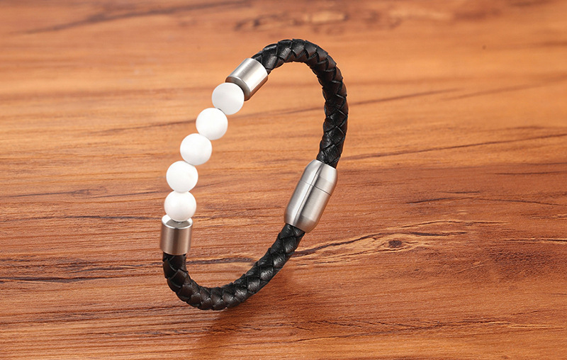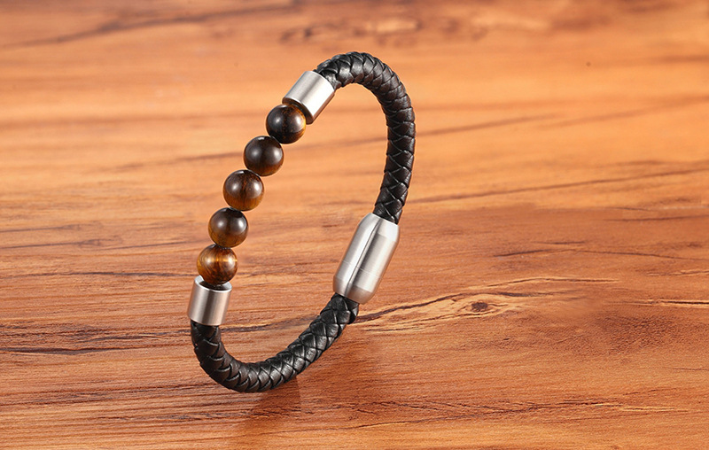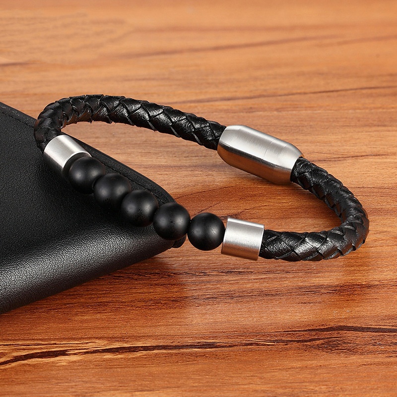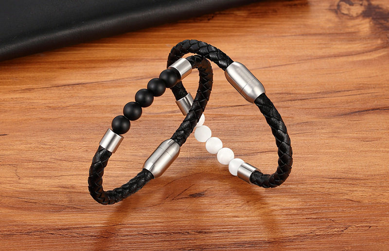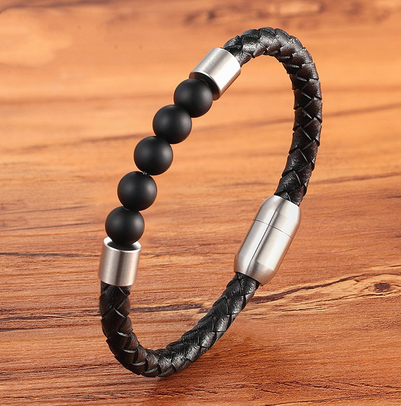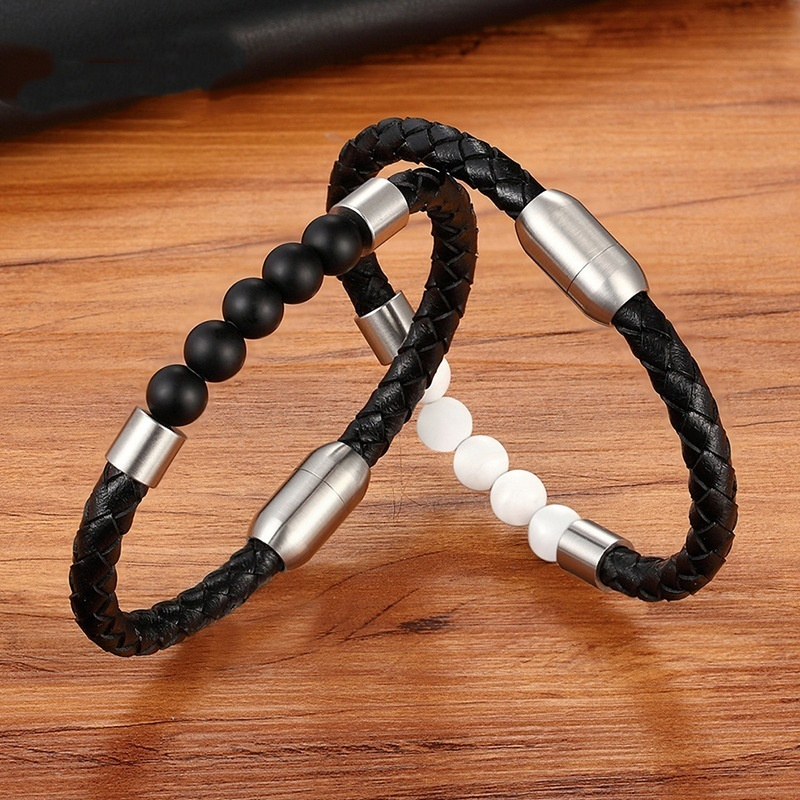 Unisex Leather Cord Stainless Steel Snap Bracelet