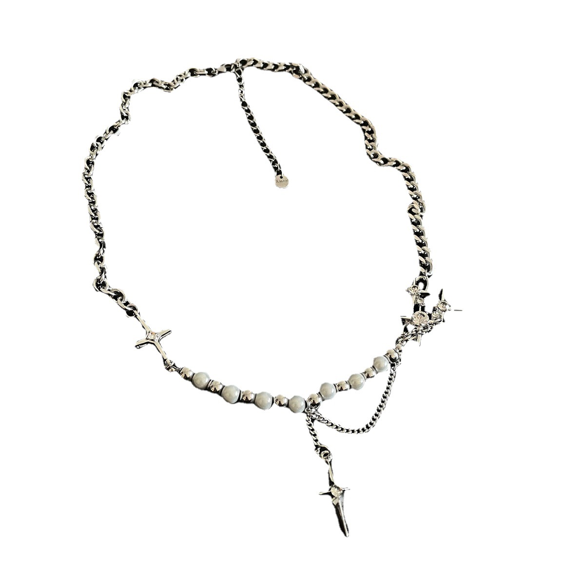 Color: eight-pointed stars reflective Pearl stitching necklace