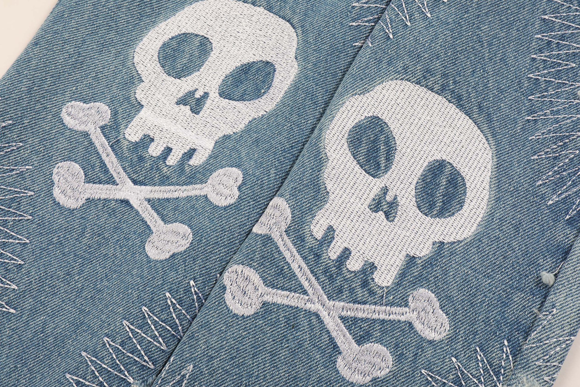Special craft: embroidery, washing, making old and worn out.