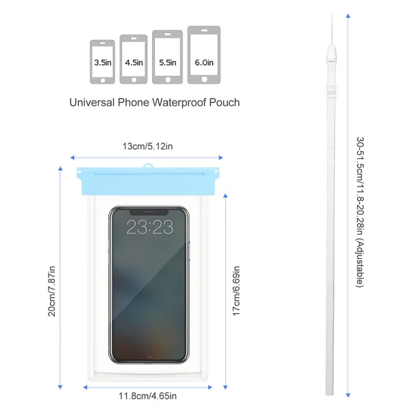 *Universal Waterproof Pouch*:Suitable for various smartphones under 6 inches such as for iPhone X 8,for Samsung Galaxy S9+/S8,for Google Pixel Nexus,for Sony,for Motorola,for LG,for HTC,for Blackberry or other phone devices.