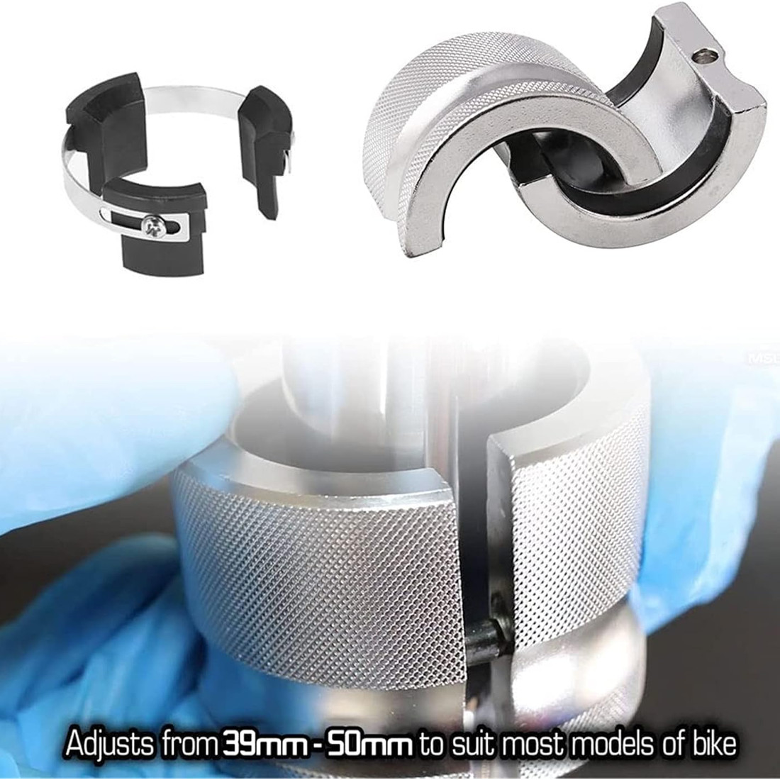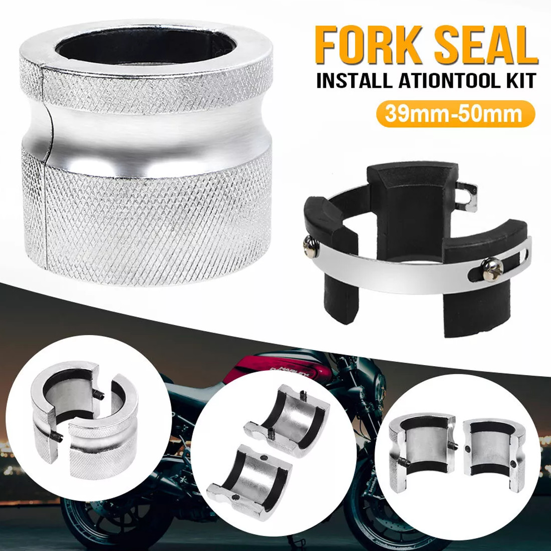 Design -- Made of high quality carbon steel with high strength. The split design ensures that the new front fork seal will not be damaged during installation. The heavy-duty body can evenly press the seal into the front fork tube.