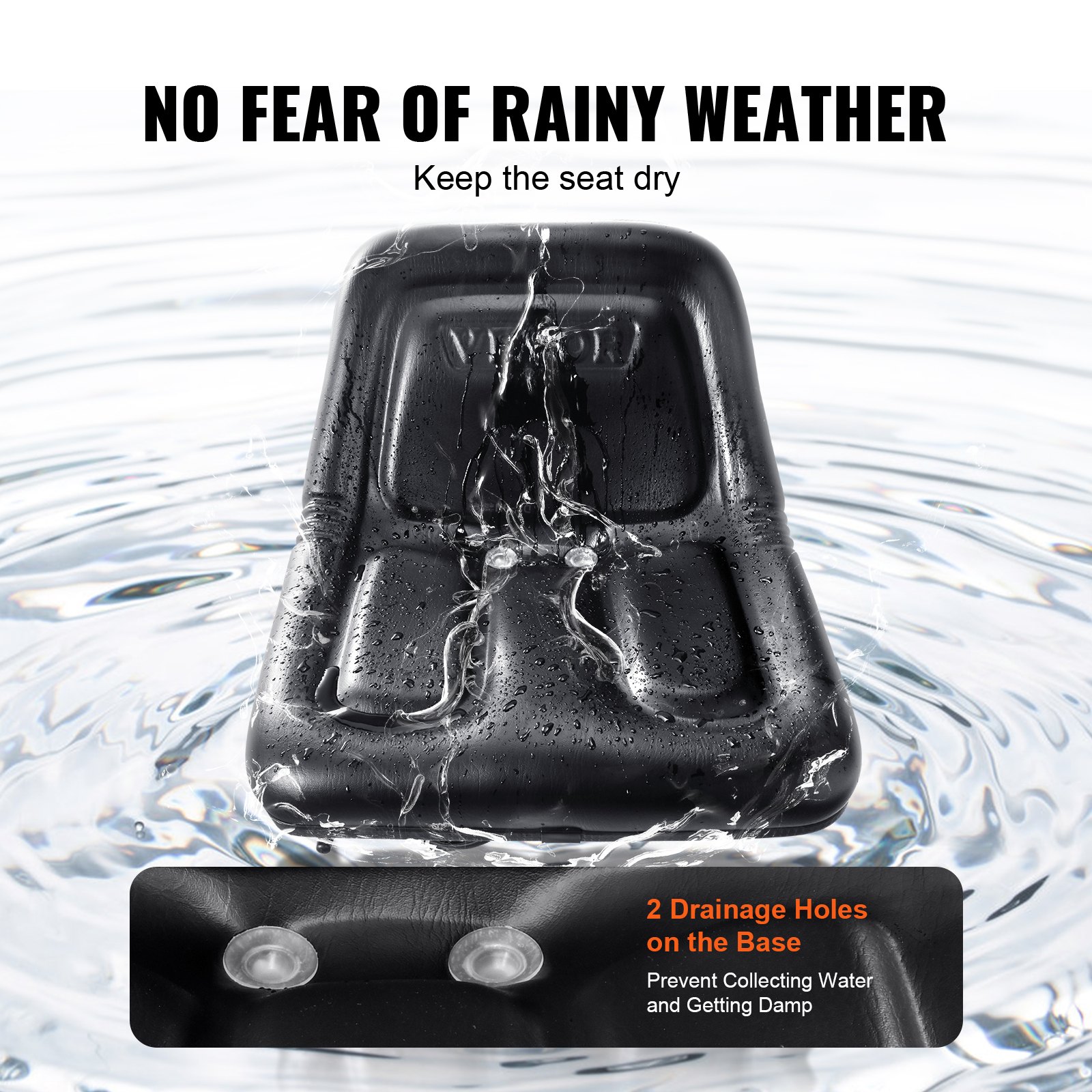 Stay Clean & Dry: The base of universal lawn mower seat features dual drainage holes, allowing water and dirt to quickly drain away. Even in damp outdoor environments, the seat base remains clean and dry, ensuring worry-free seating and instant comfort.