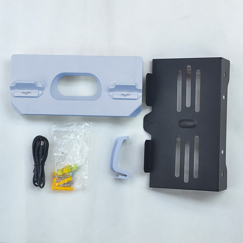 1 iron bracket, 1 dual charger, 1 headphone hook, a set of screws to fix the bracket