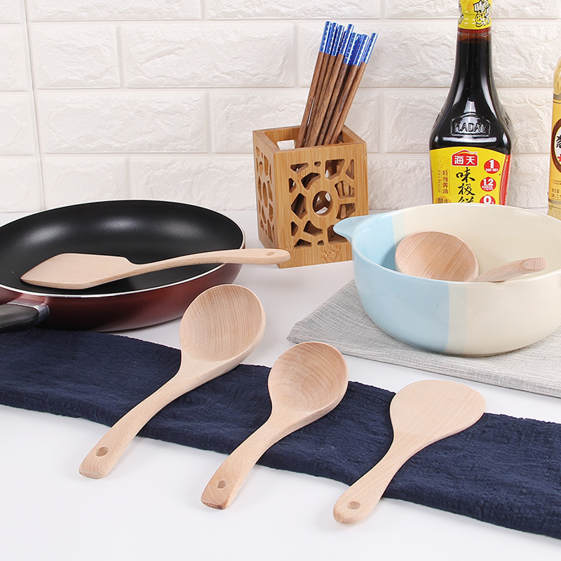 Unpainted wooden shovel wooden spoon non-stick special shredder long handle spoon