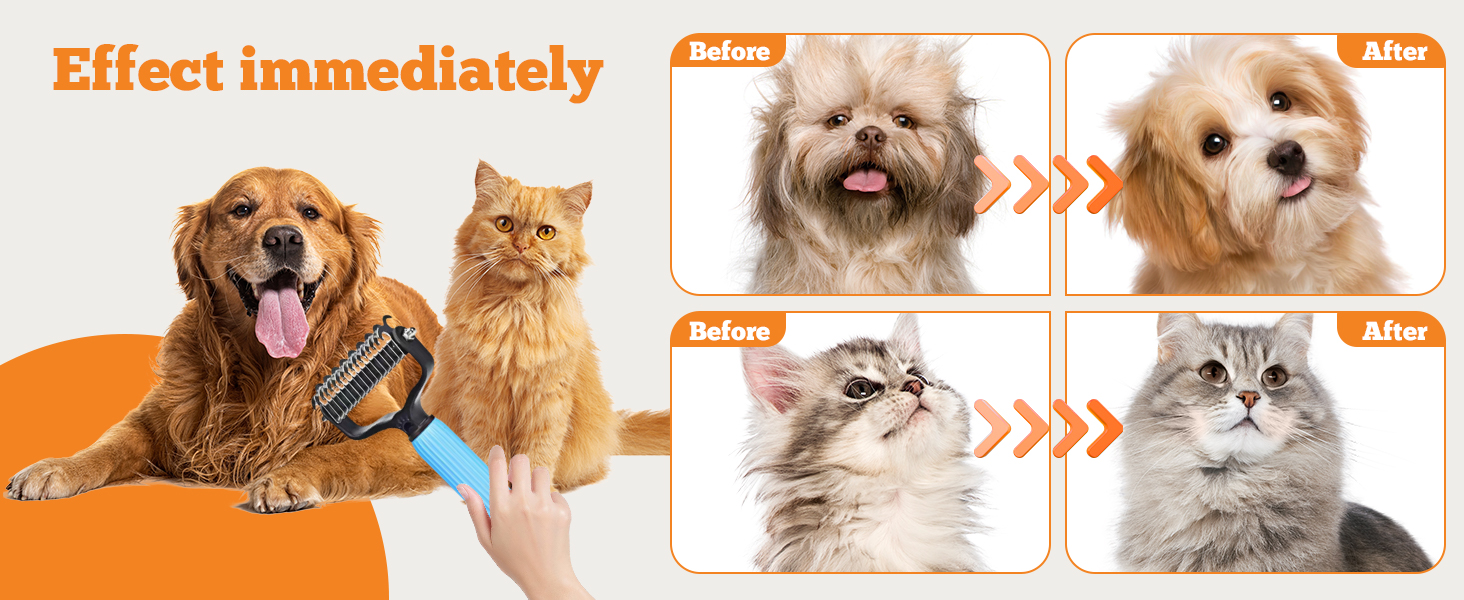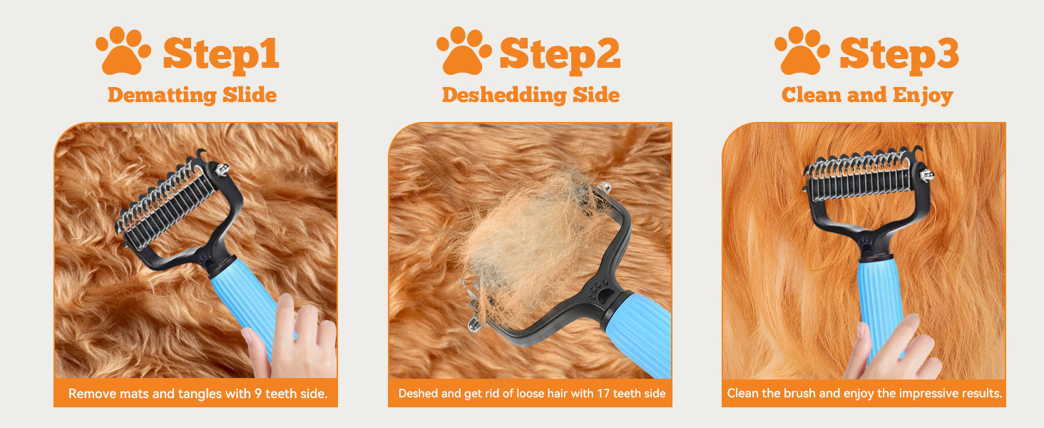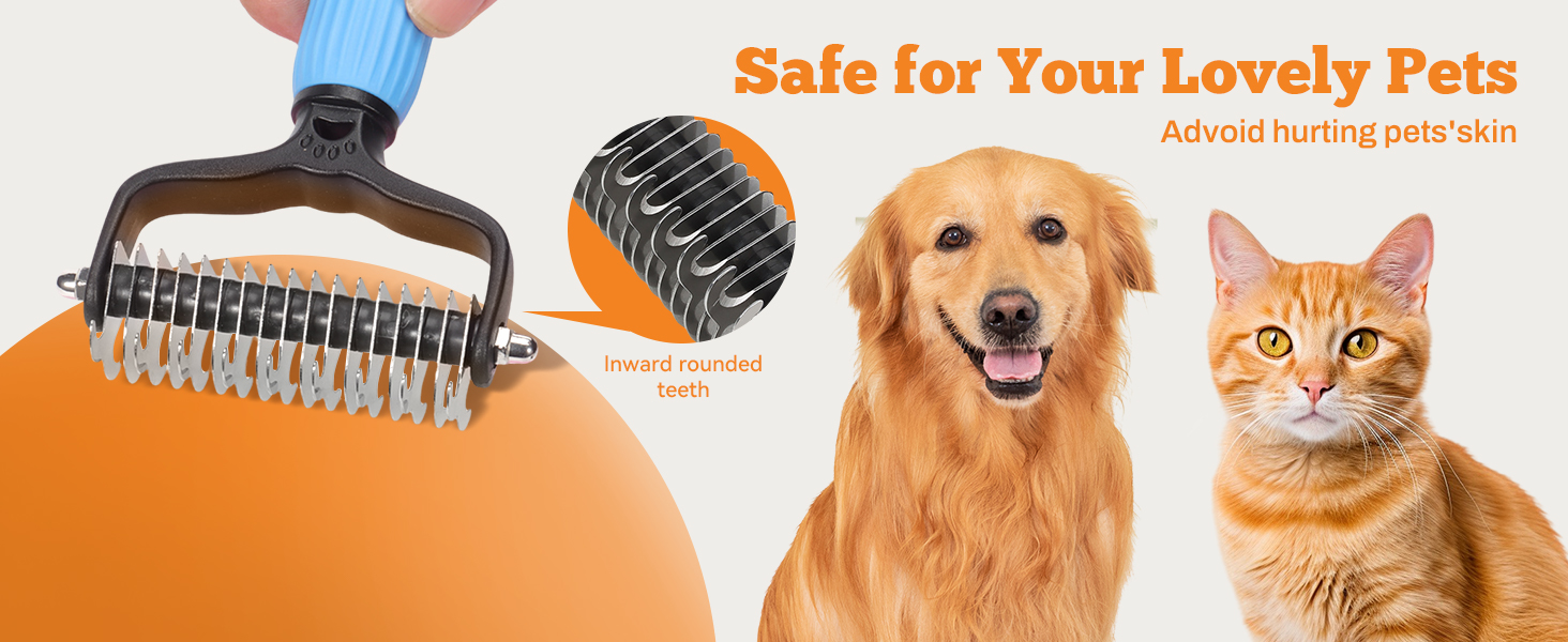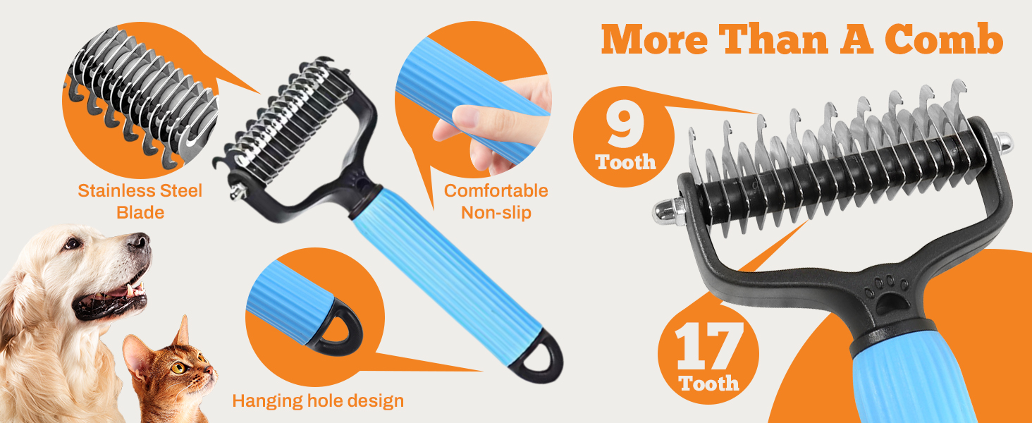 Upgraded Pet Safe Dematting Comb For Dogs Cats Deshedding Undercoat Rake With Double-Sided Stainless Steel Teeth Dogs Cats Grooming Brush For Detangling Thinning Shedding