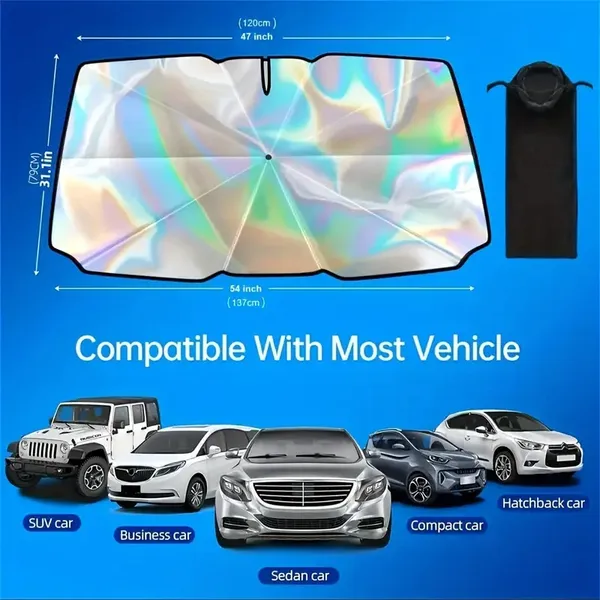 Upgraded U.S. General Purpose Version Rainbow Umbrella Car Windshield Sunshade - UV Blocking, Heat Insulating, Scratch Resistant Handle, 10 Layer Fabric, Foldable Sun Visor, 55x31.5 Inches - Univ