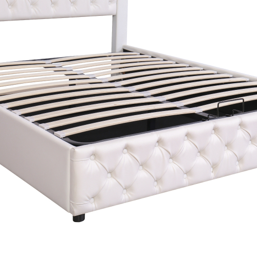 Product Name:Upholstered bed 150 x 200 cm functional bed with slatted frame and storage space, LED lighting in different colors, White, PU