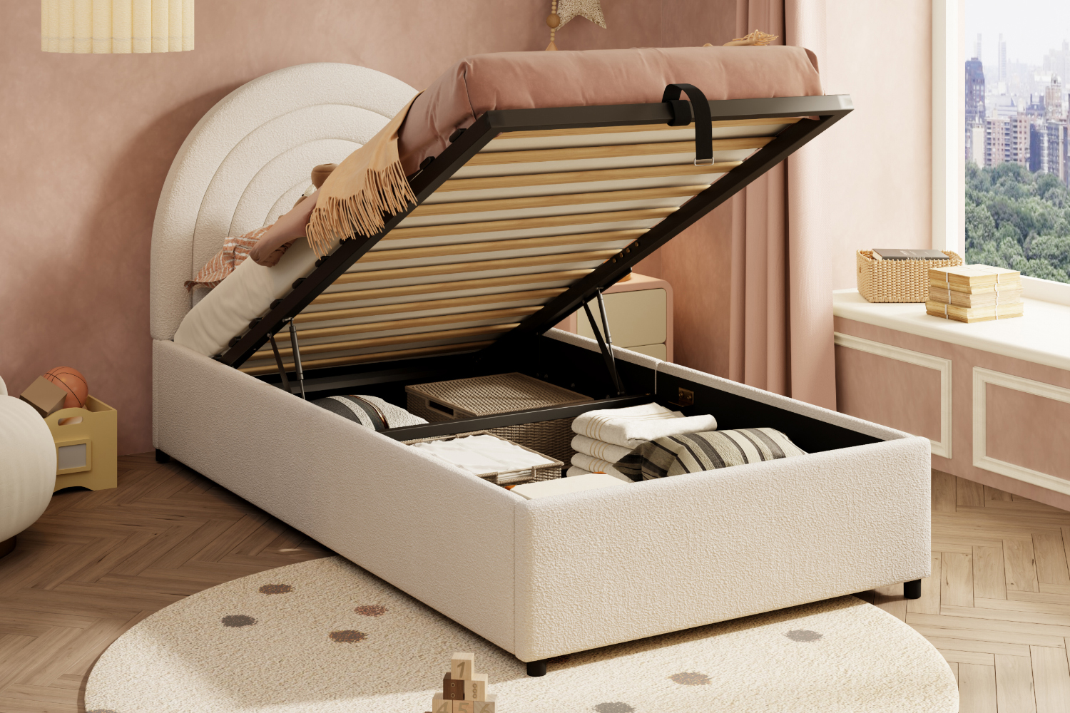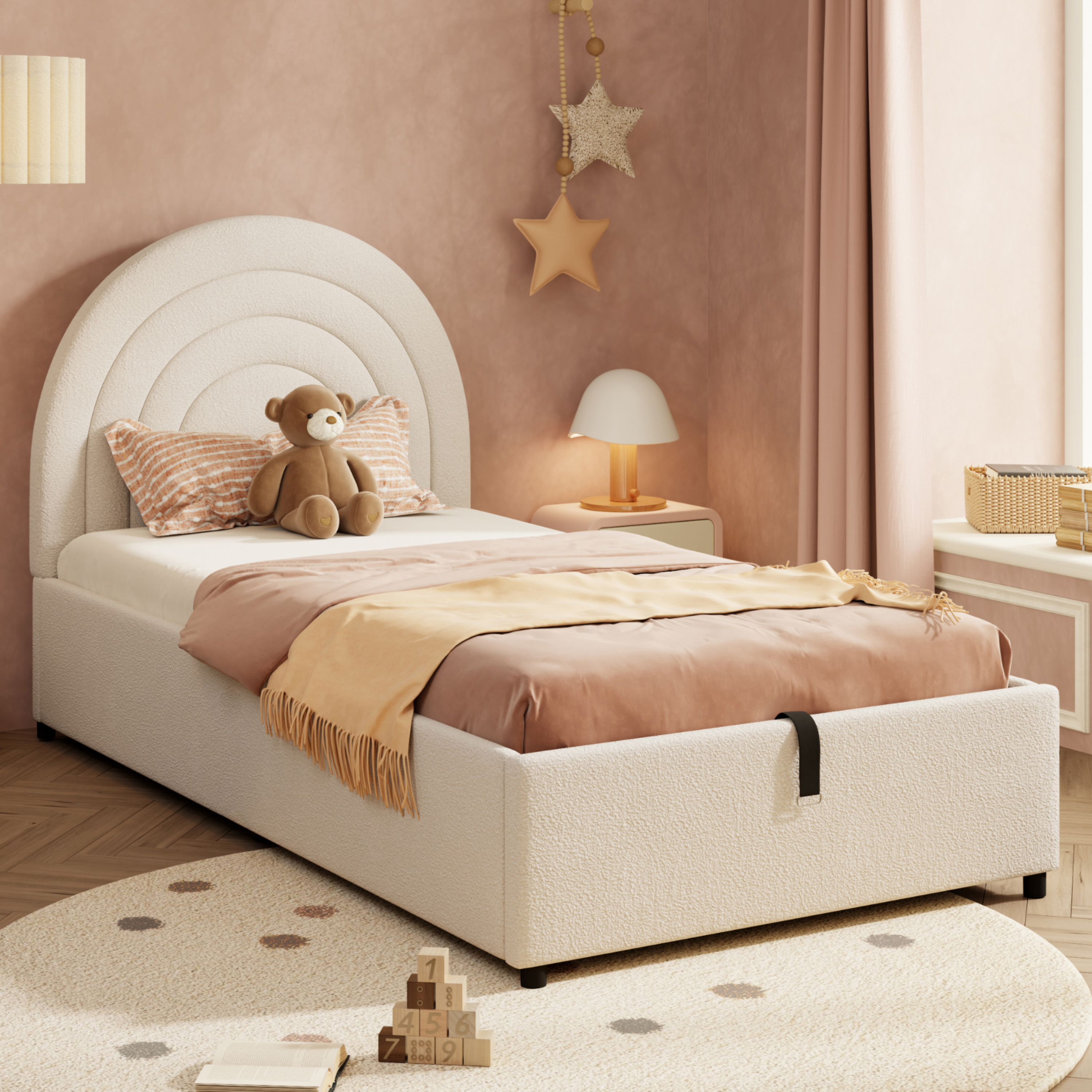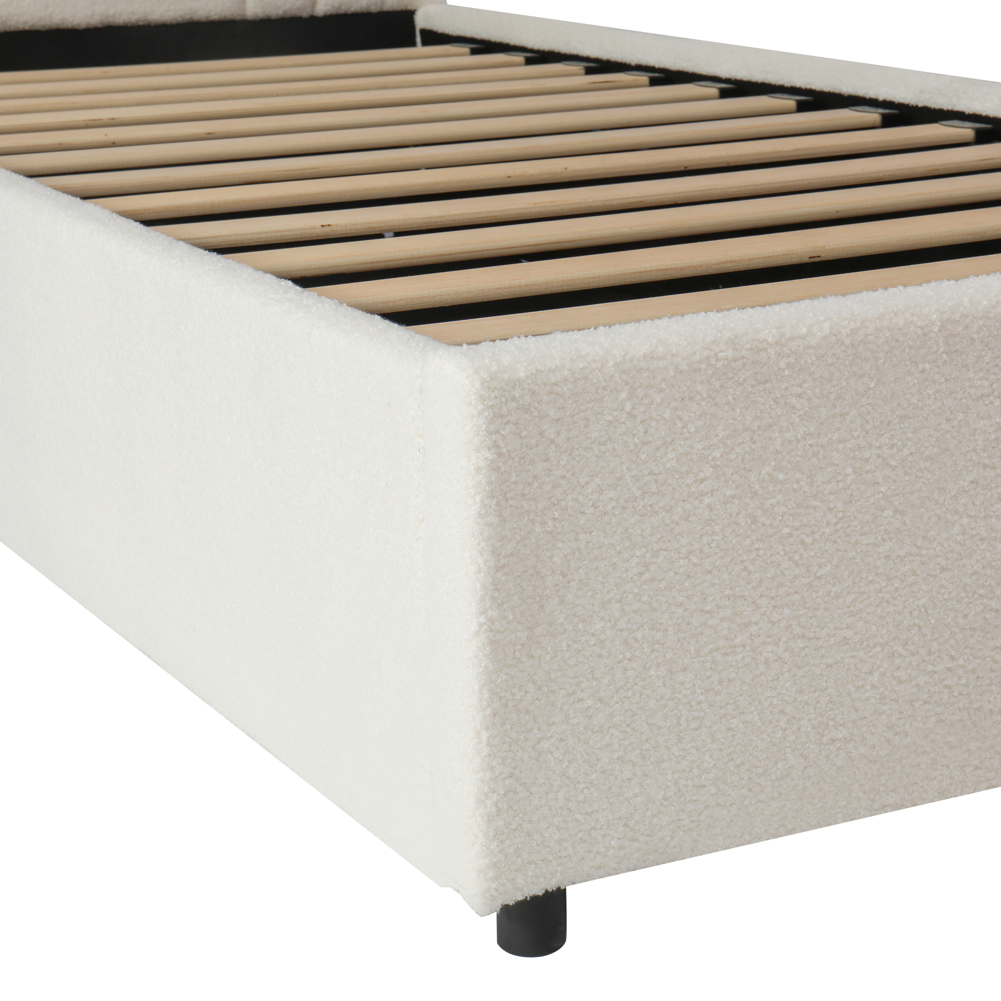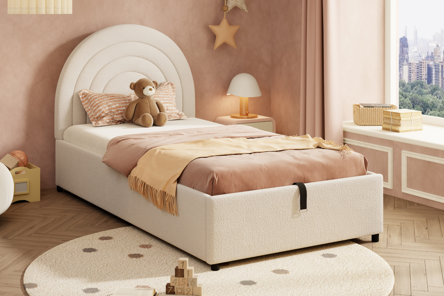 Product Name:Upholstered bed 3ft 90*190, children's bed, single bed with slatted frame and headboard, youth bed, suitable for adults and teenagers, wooden slats, easy to assemble, boucle, beige