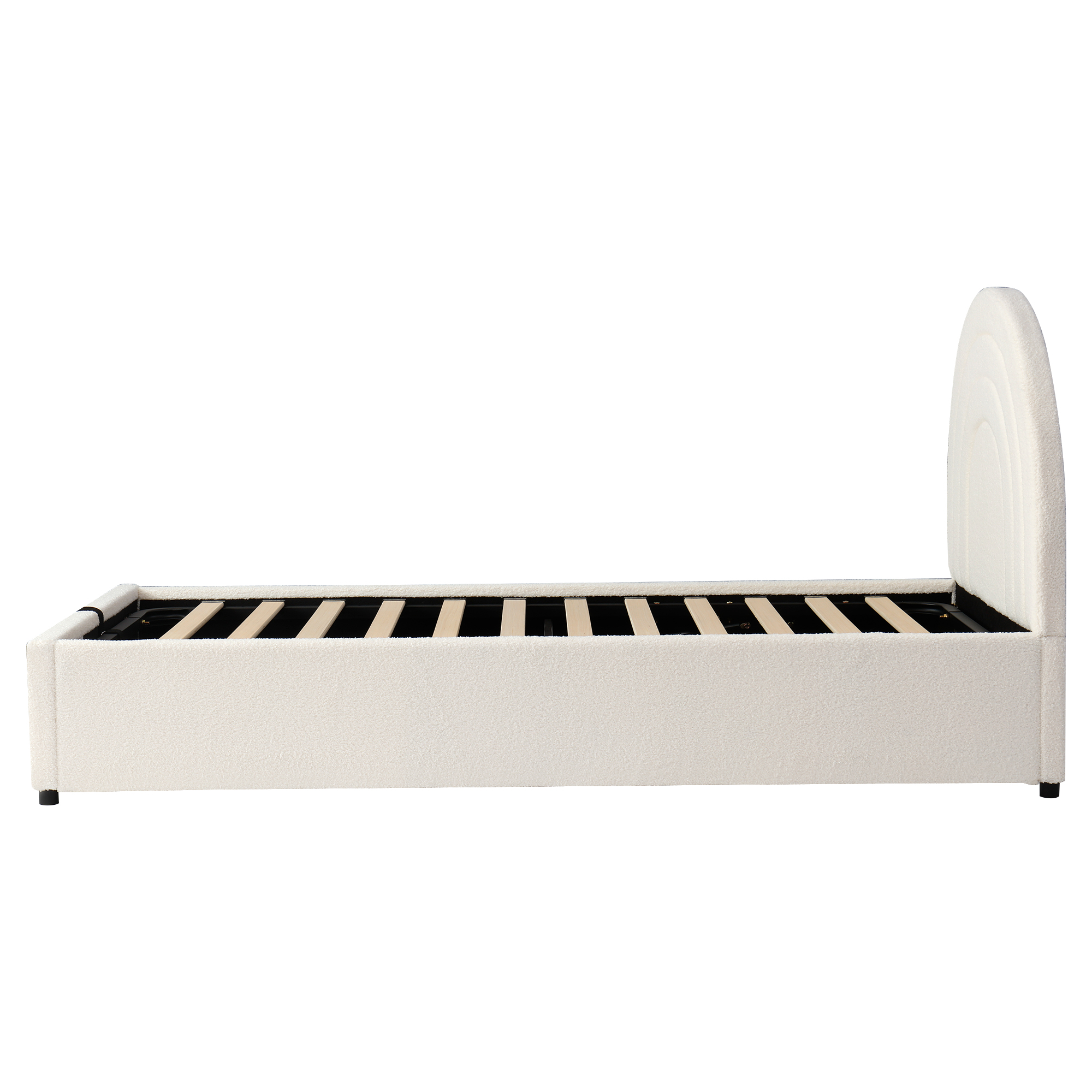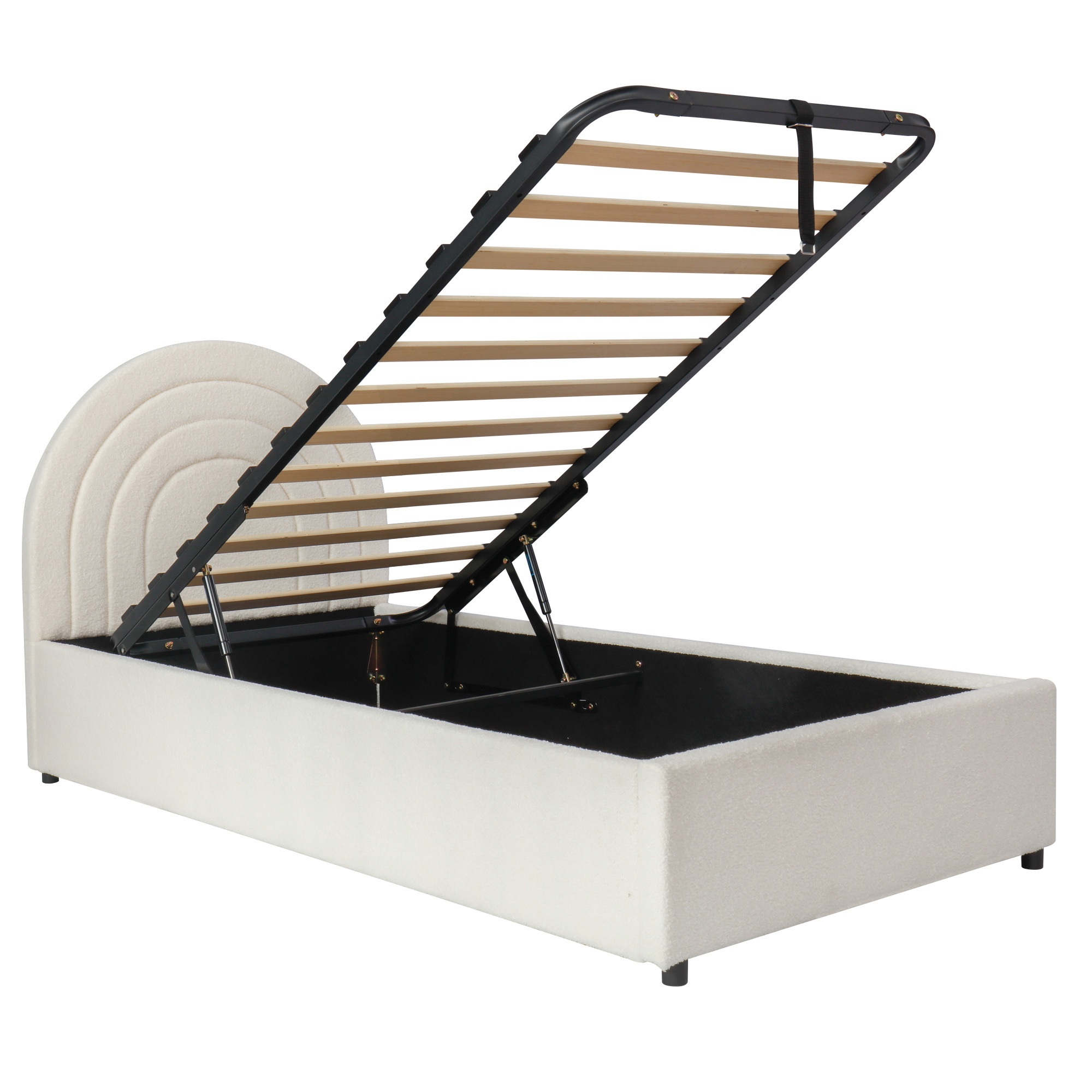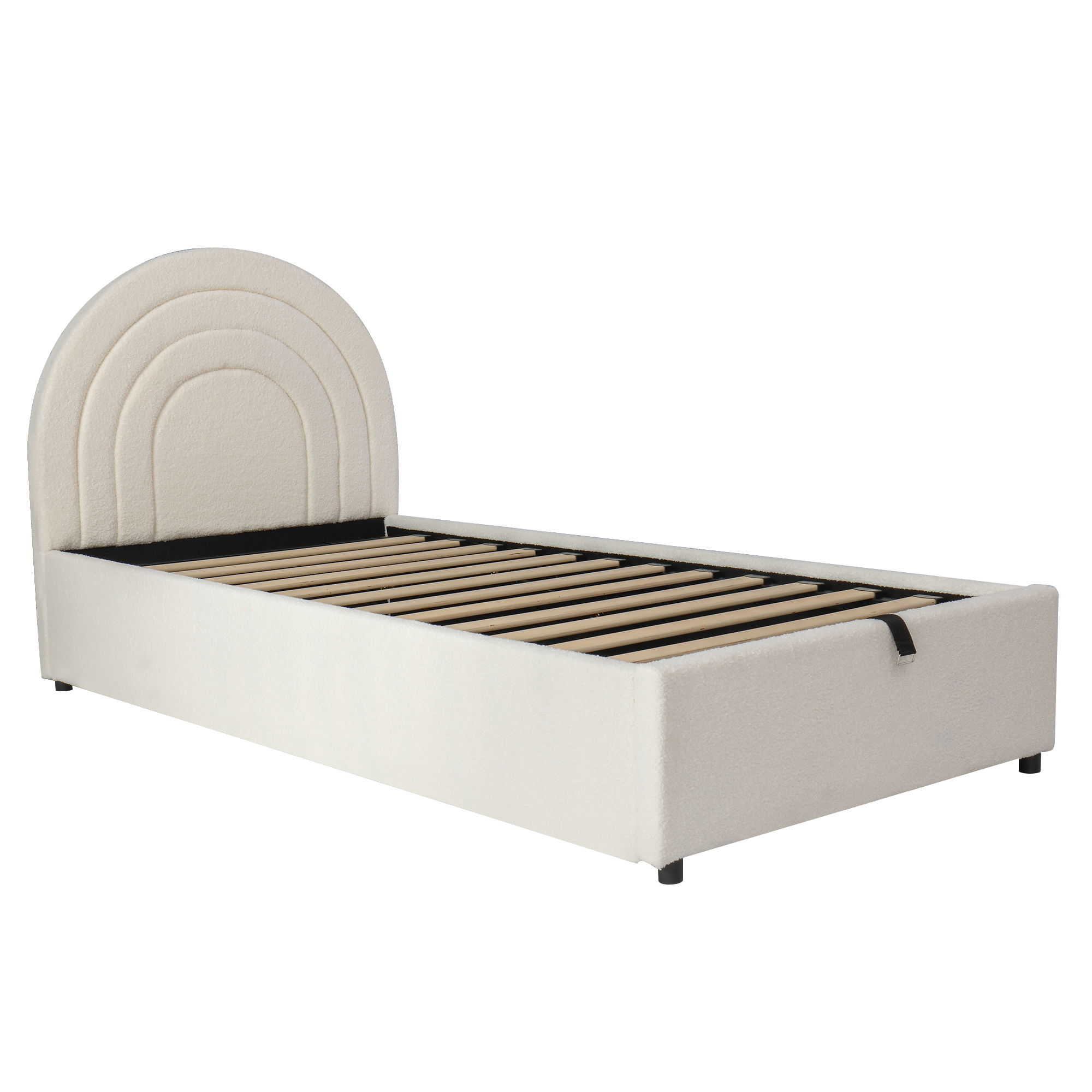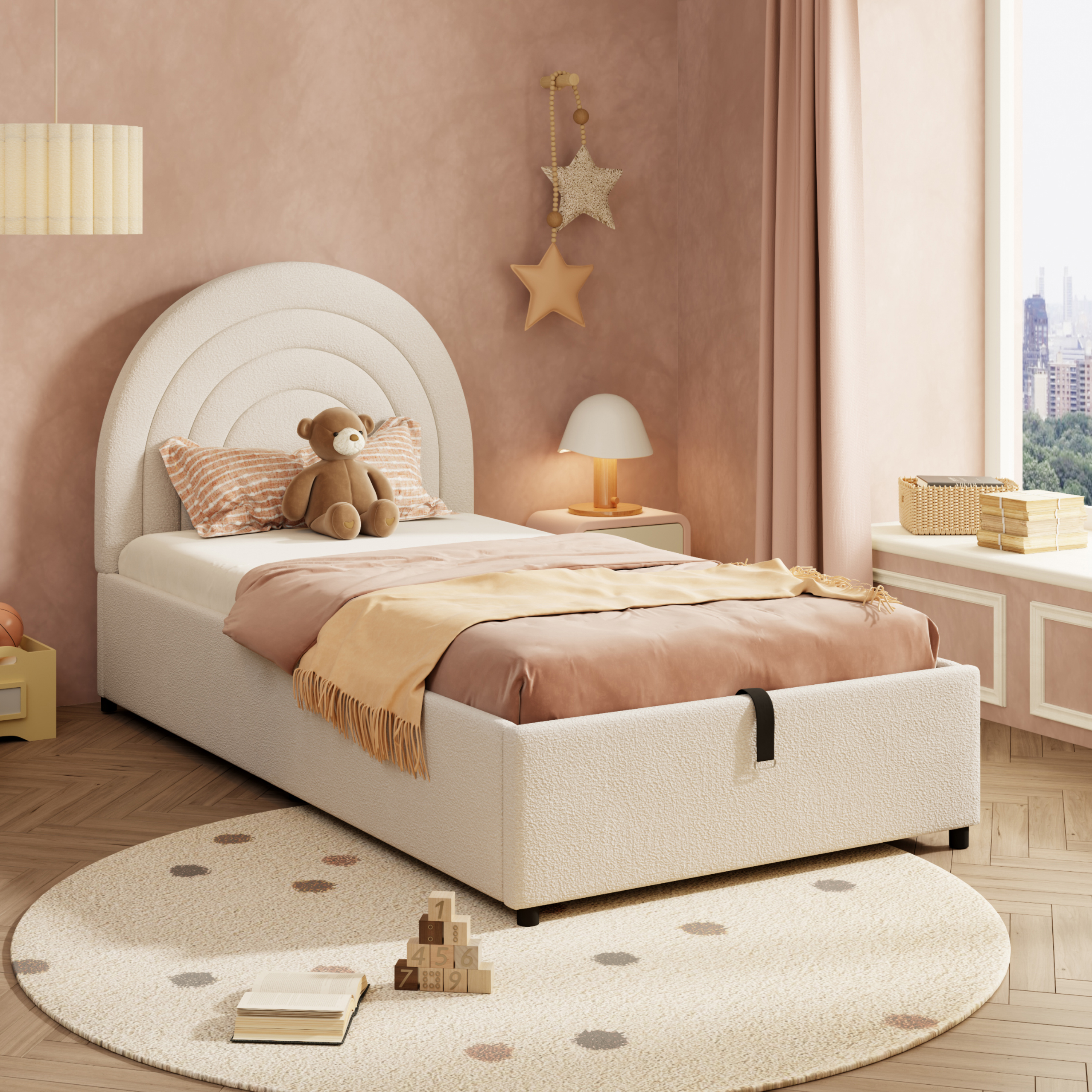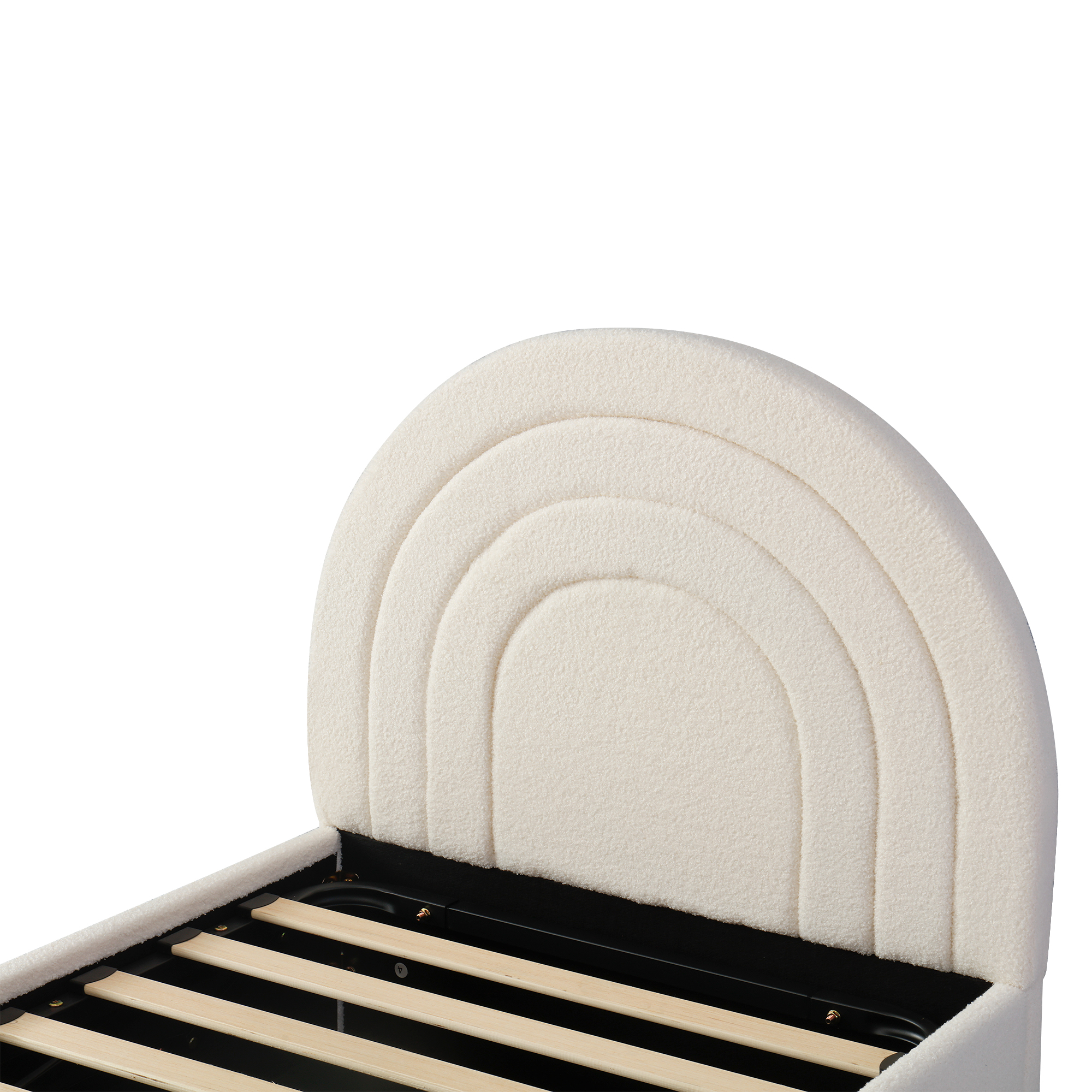 Product Name:Upholstered bed 3ft 90*190, children's bed, single bed with slatted frame and headboard, youth bed, suitable for adults and teenagers, wooden slats, easy to assemble, boucle, beige