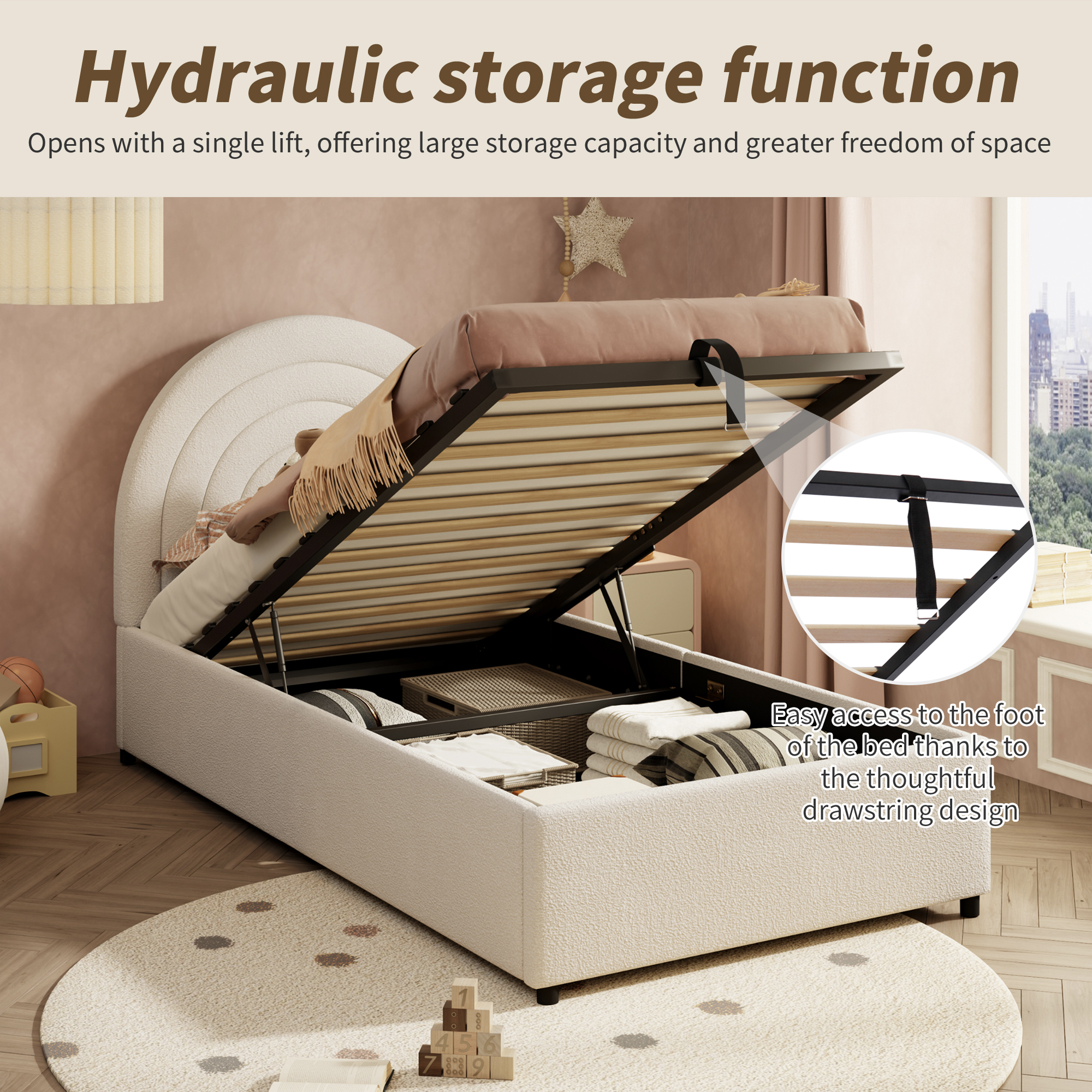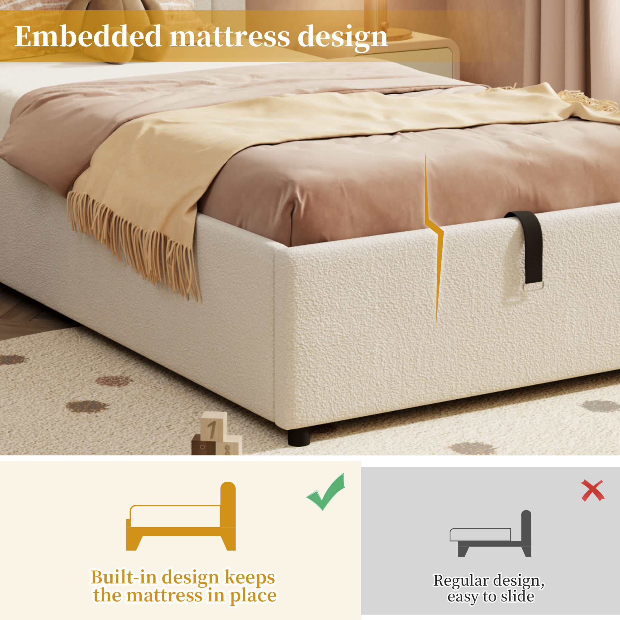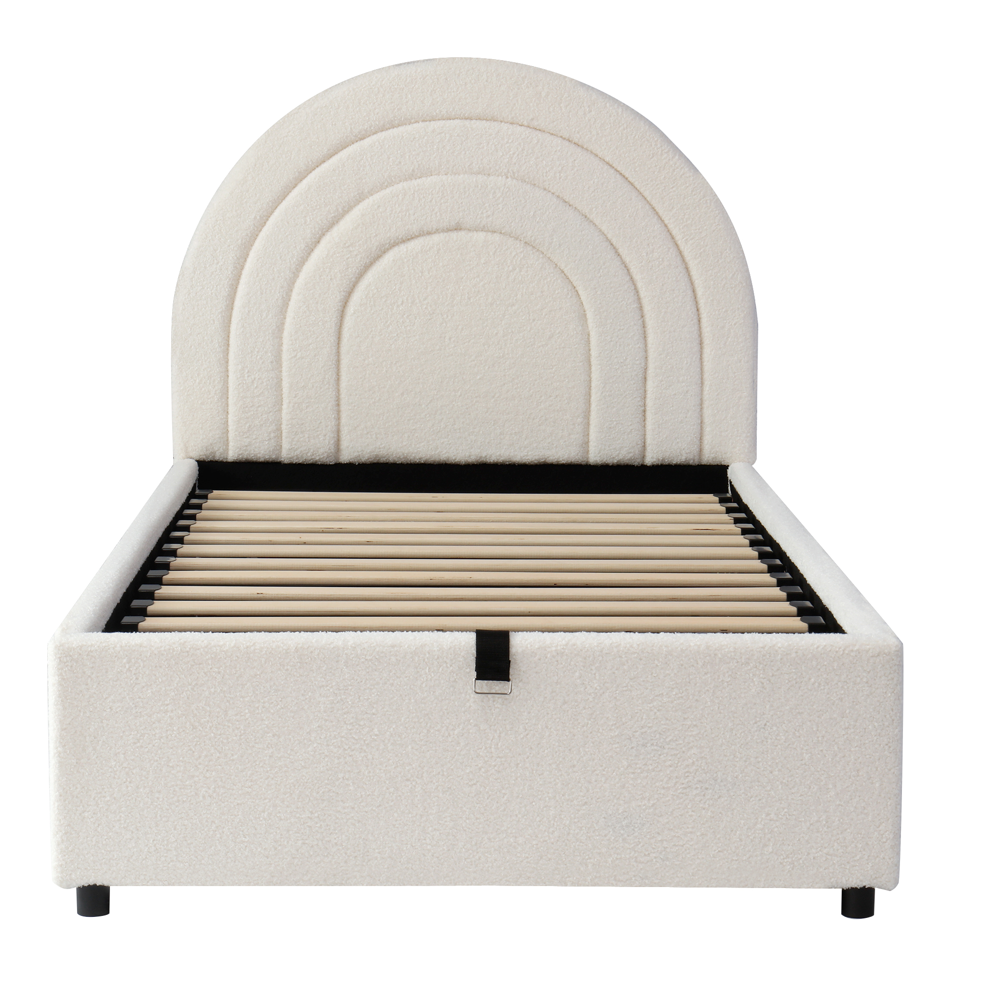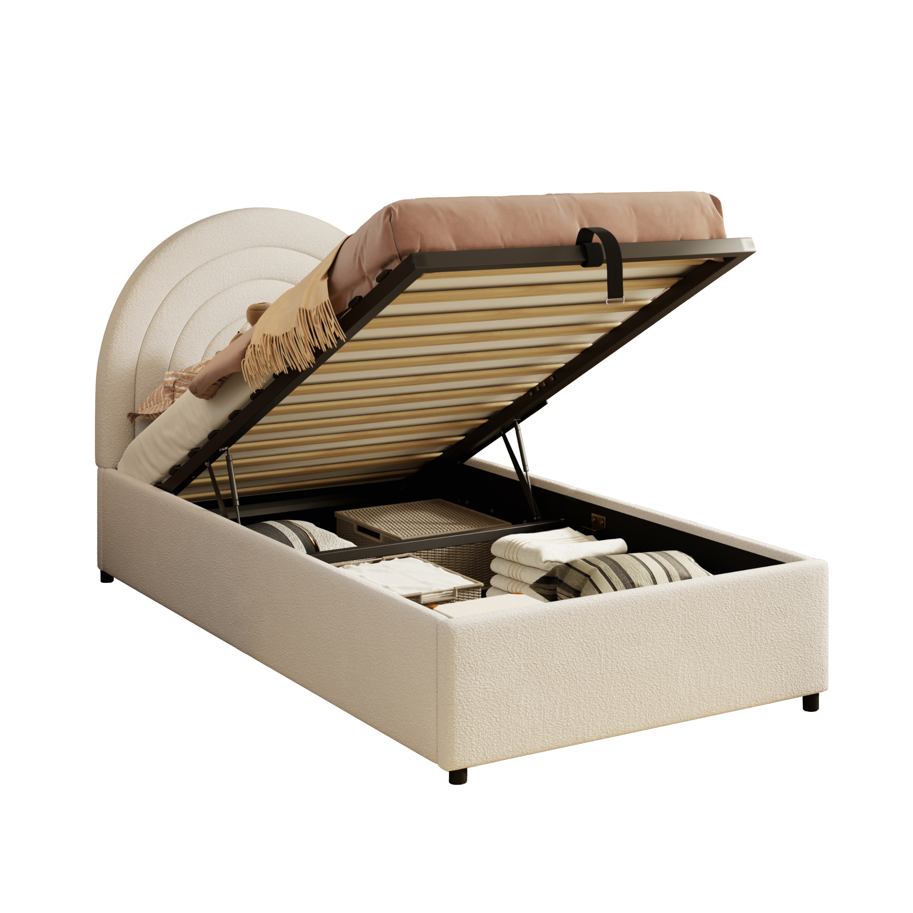 Product Name:Upholstered bed 3ft 90*190, children's bed, single bed with slatted frame and headboard, youth bed, suitable for adults and teenagers, wooden slats, easy to assemble, boucle, beige
