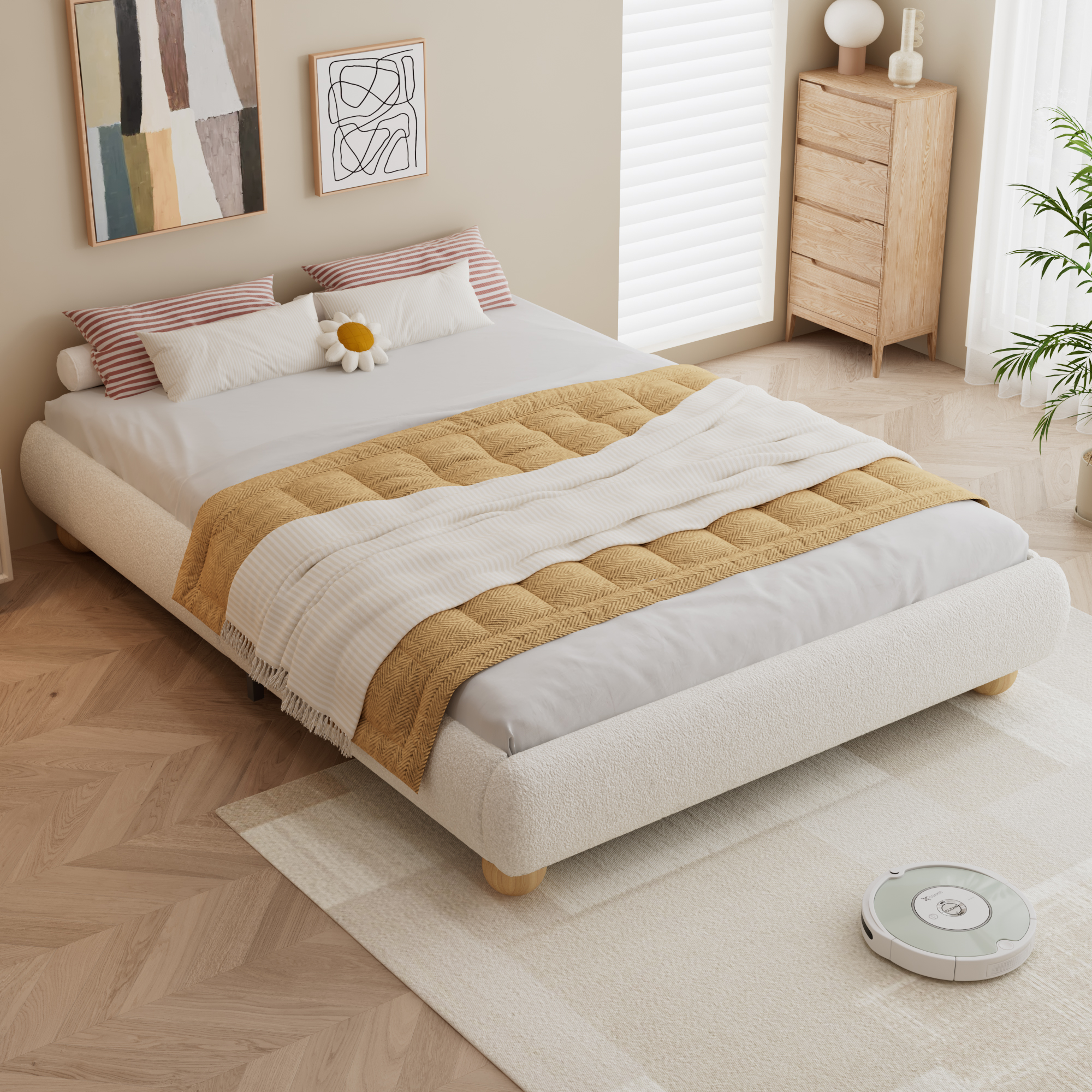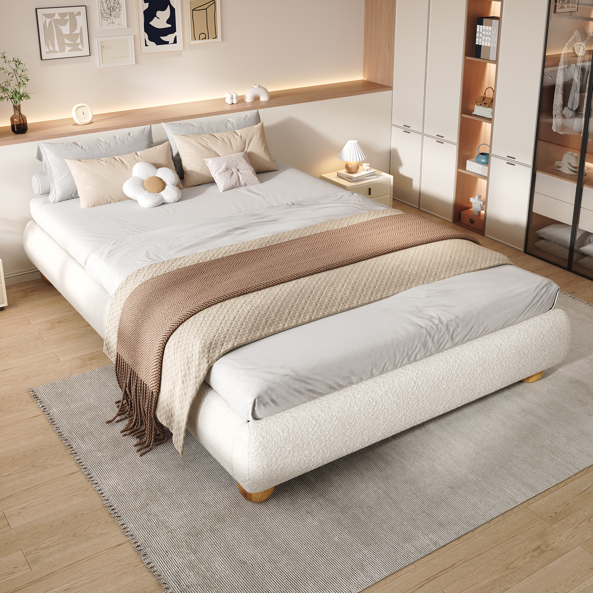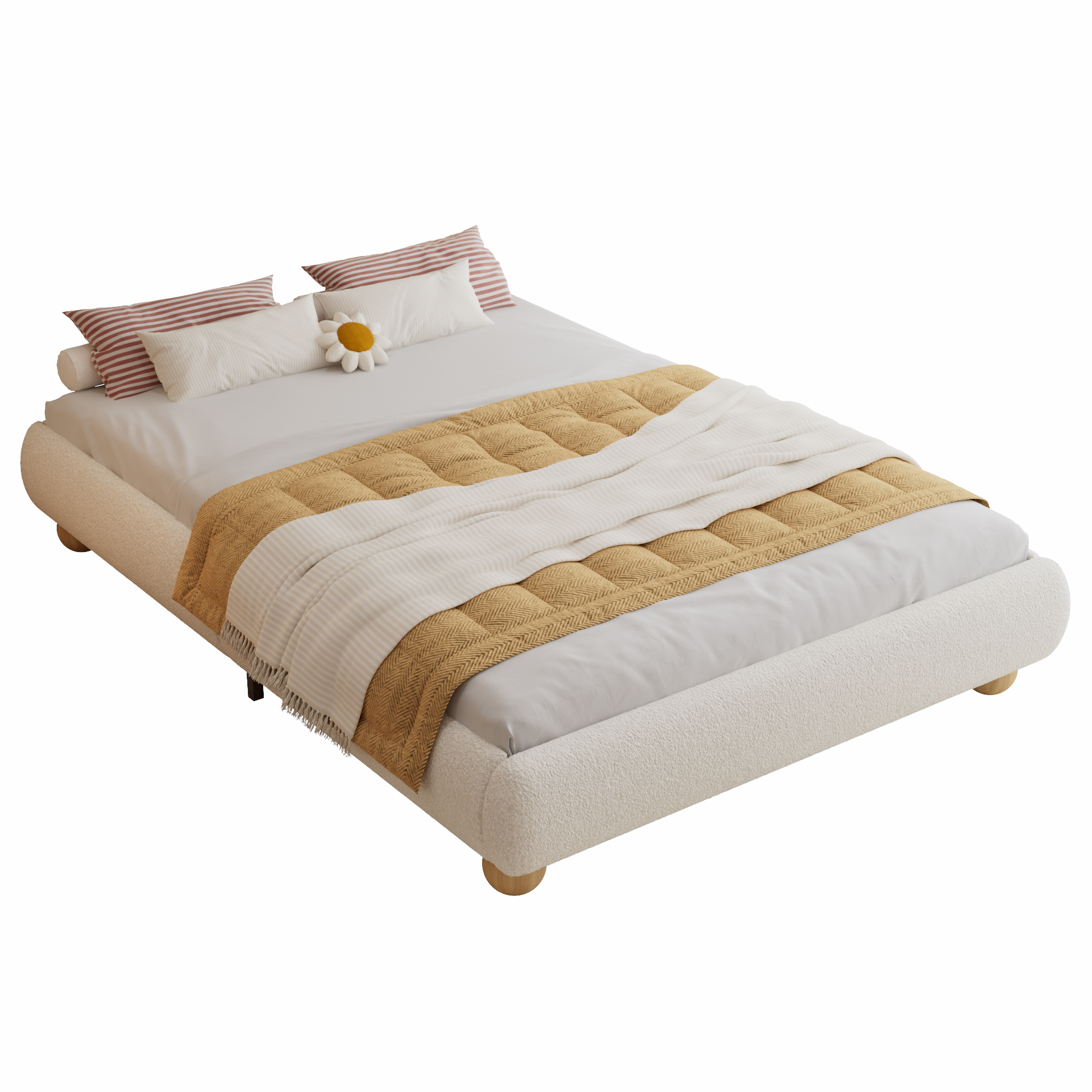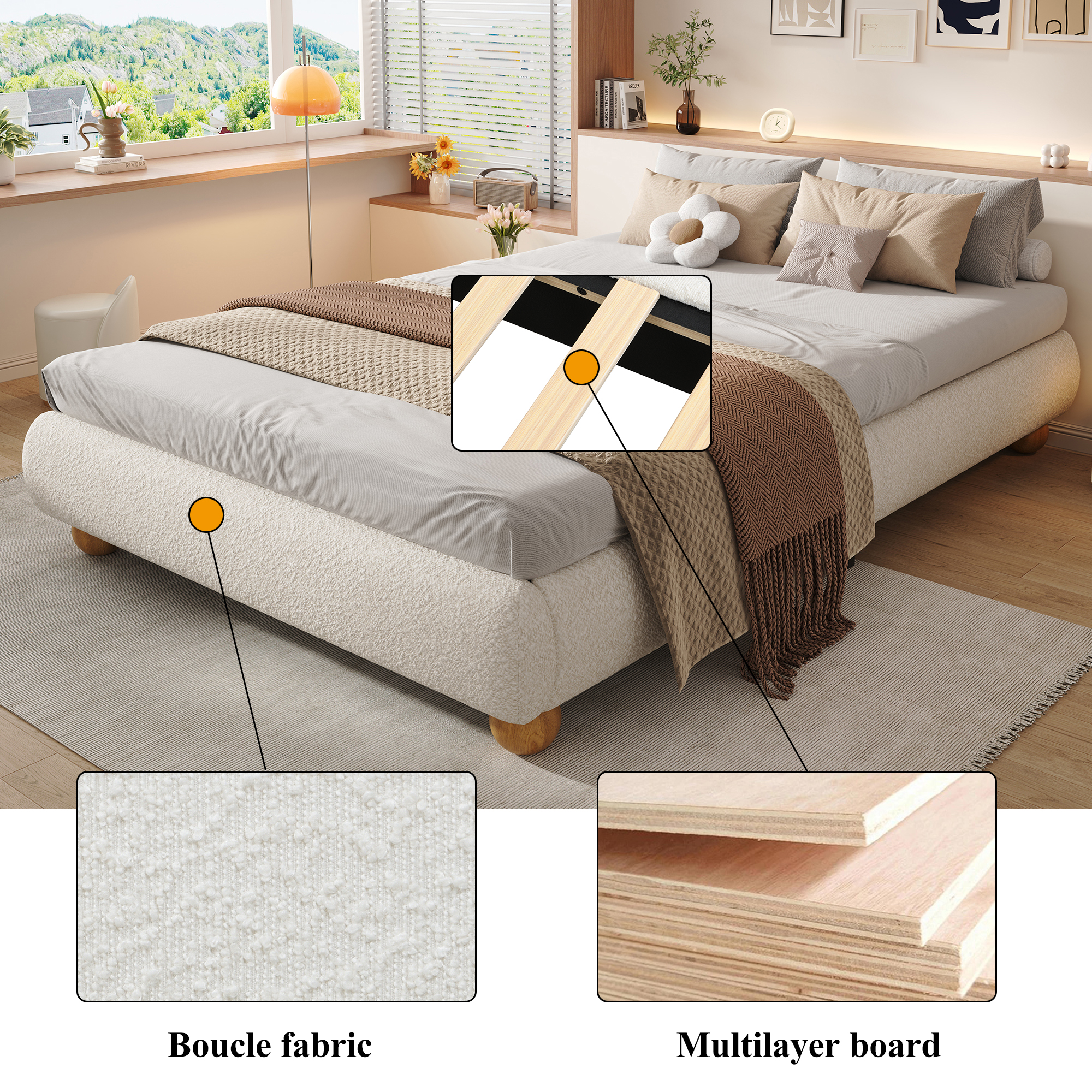 Product Name:Upholstered bed, 4ft6 double bed 135×190cm, Sturdy bed slats, Comfortable soft bed, Boucle + MDF+Plywood, Beige
