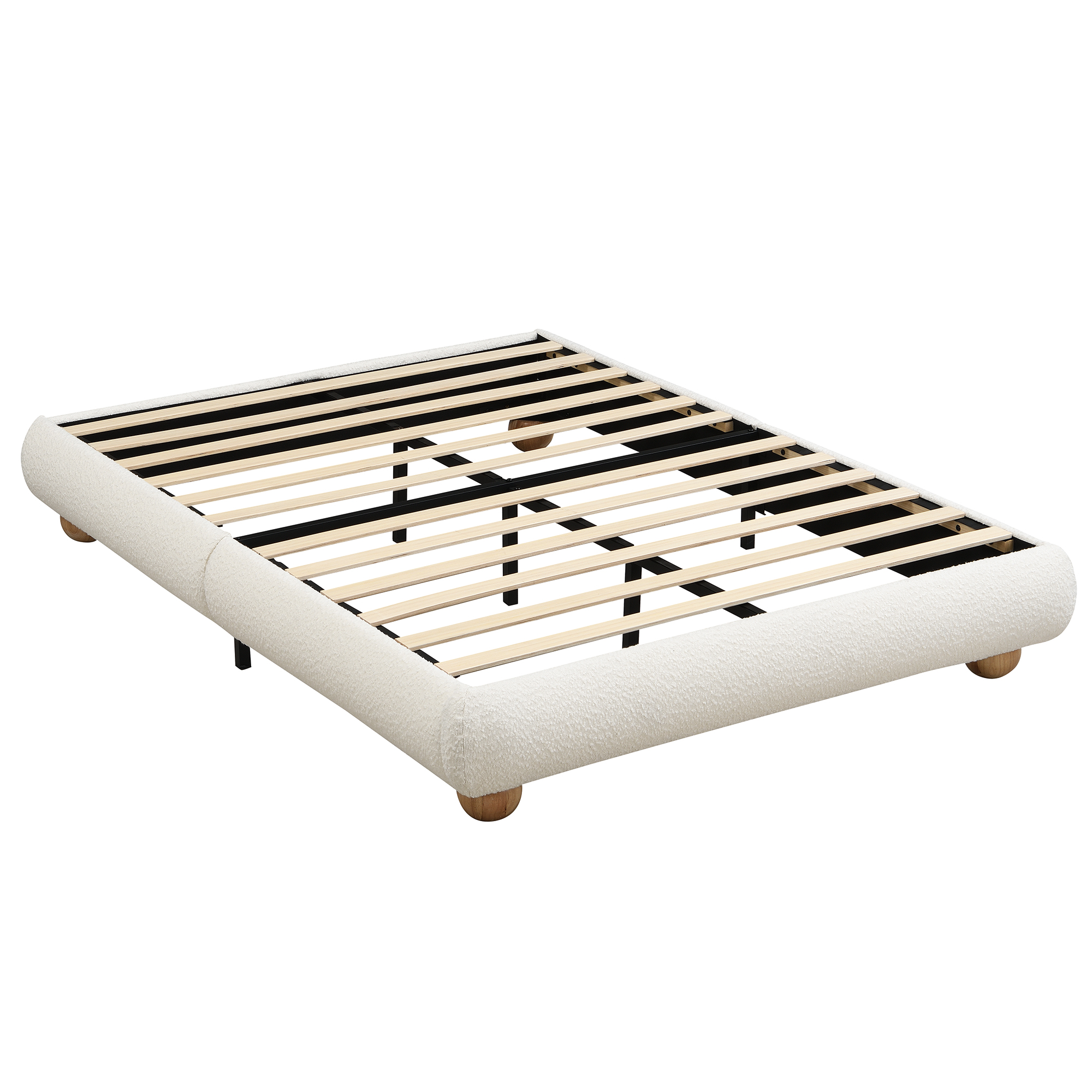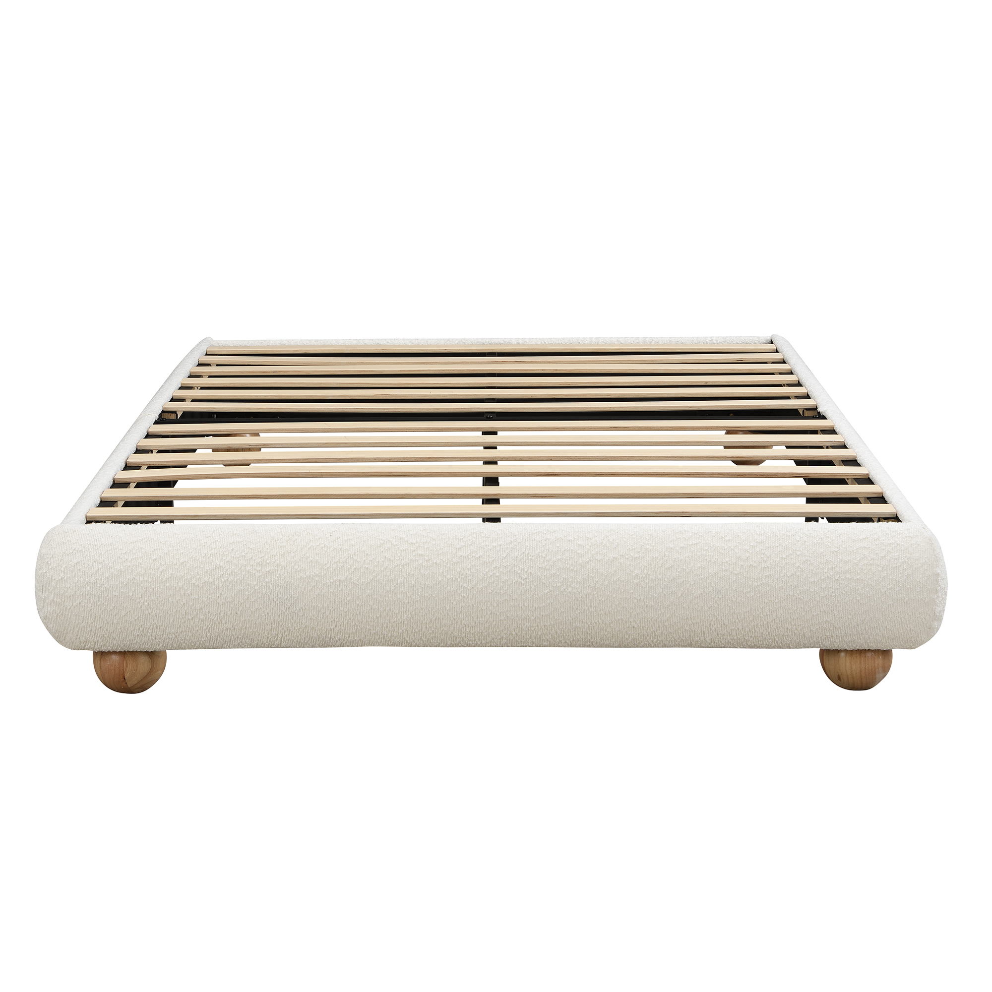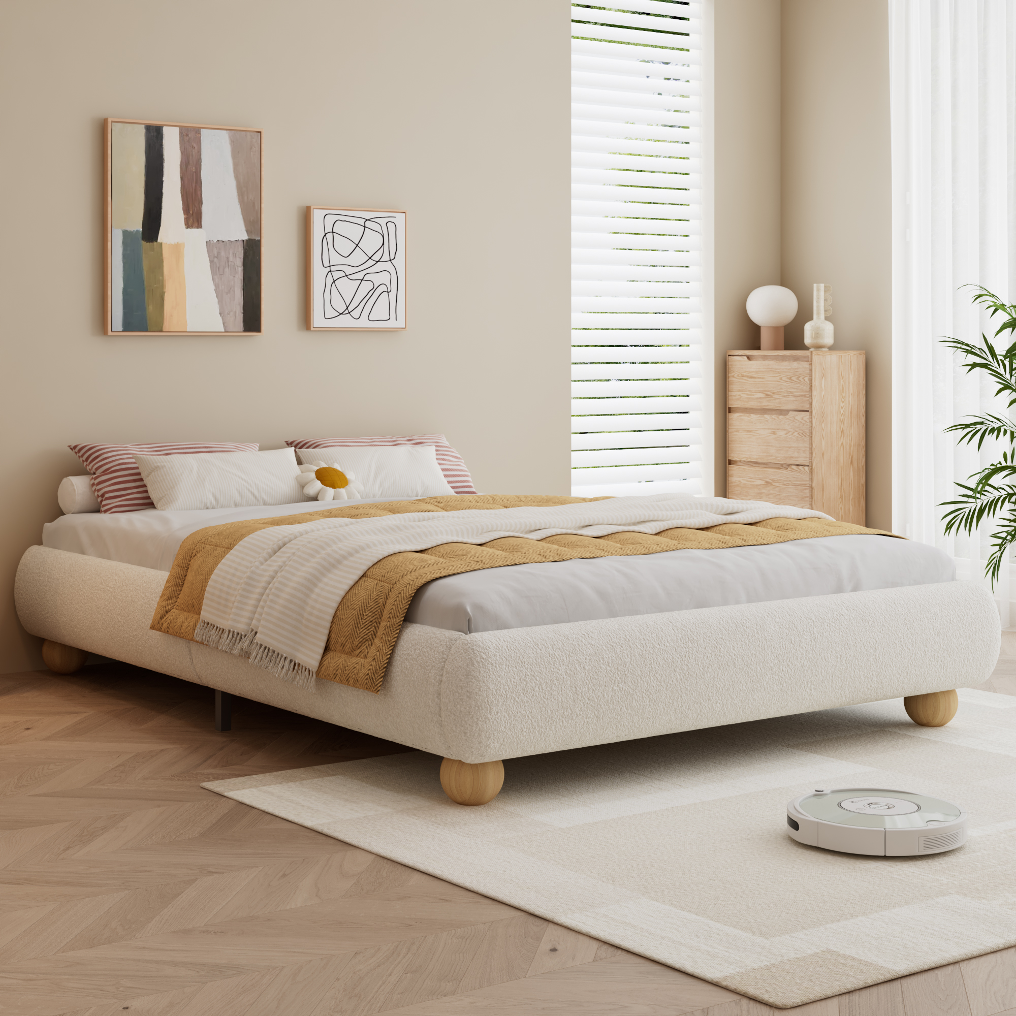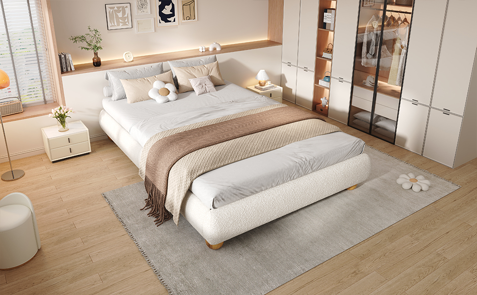 Product Name:Upholstered bed, 4ft6 double bed 135×190cm, Sturdy bed slats, Comfortable soft bed, Boucle + MDF+Plywood, Beige