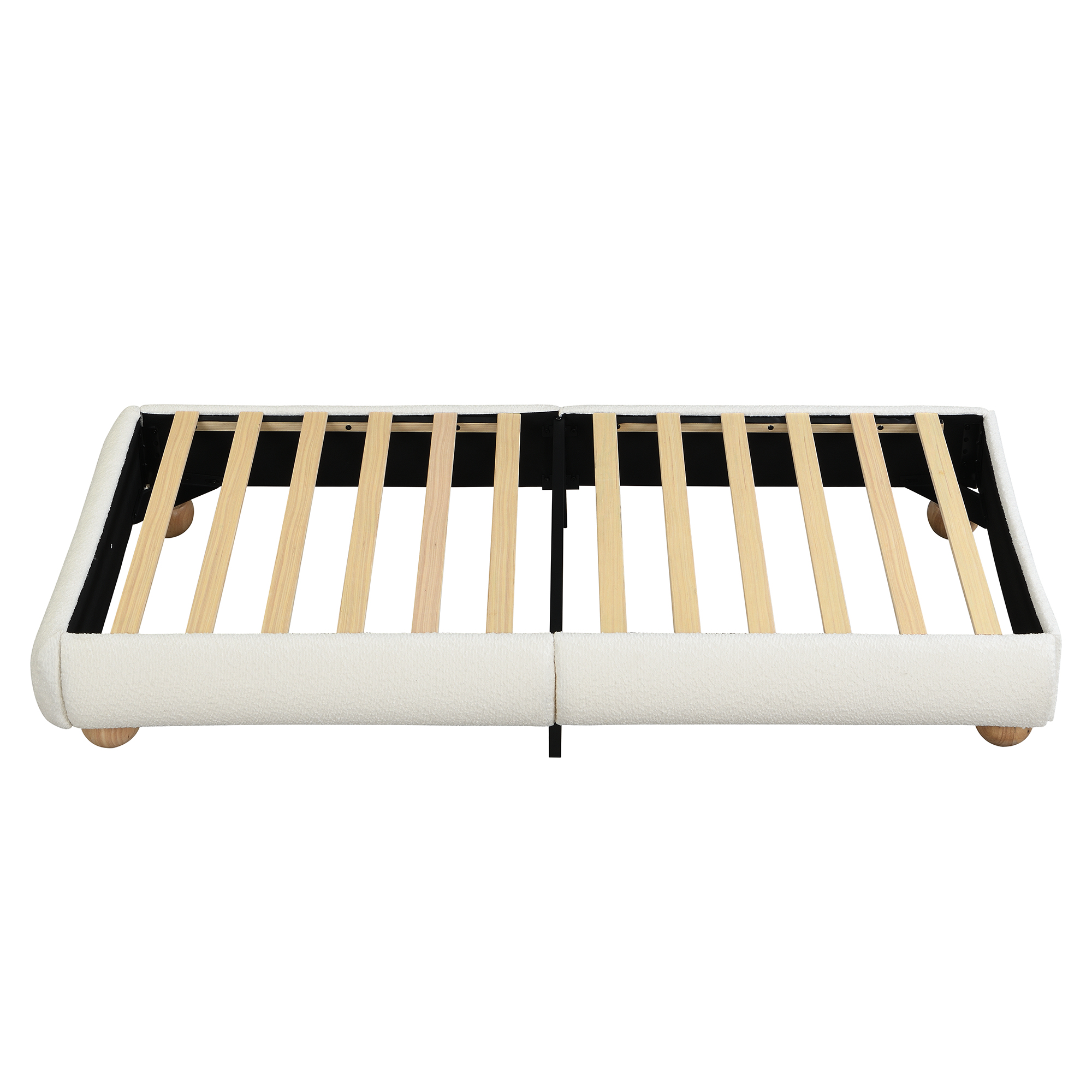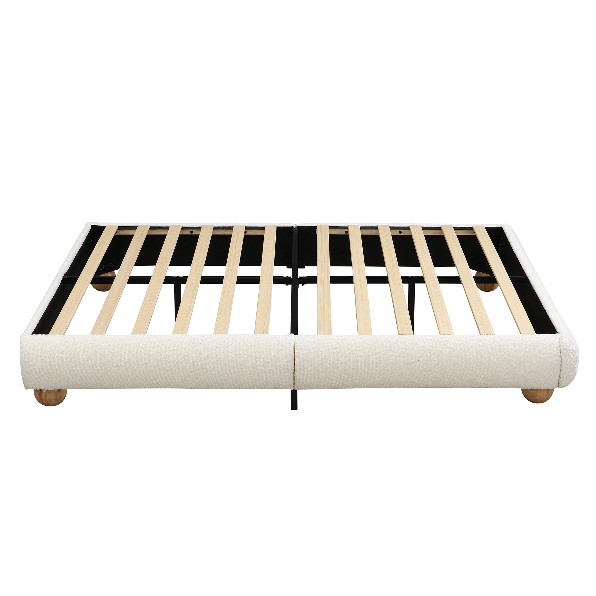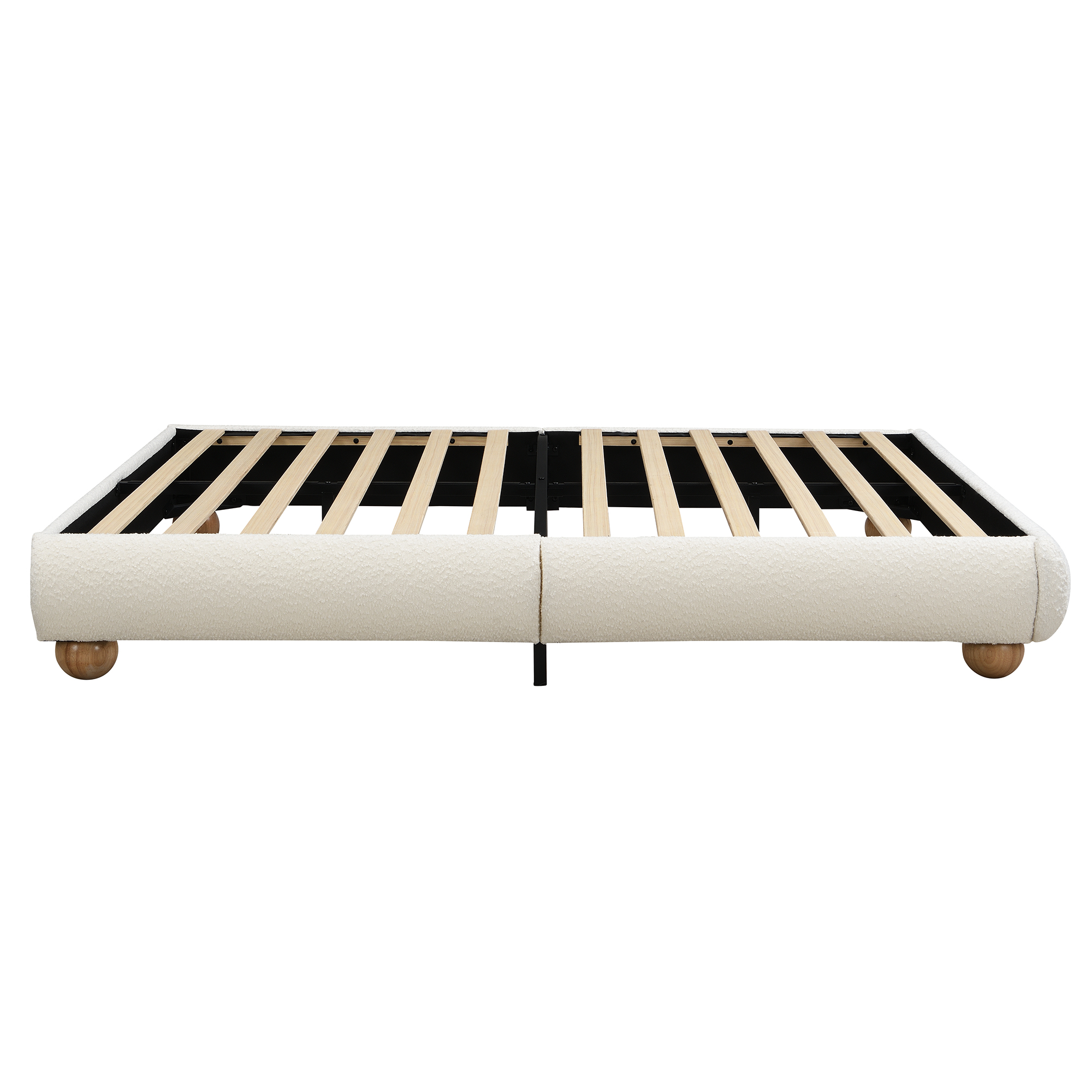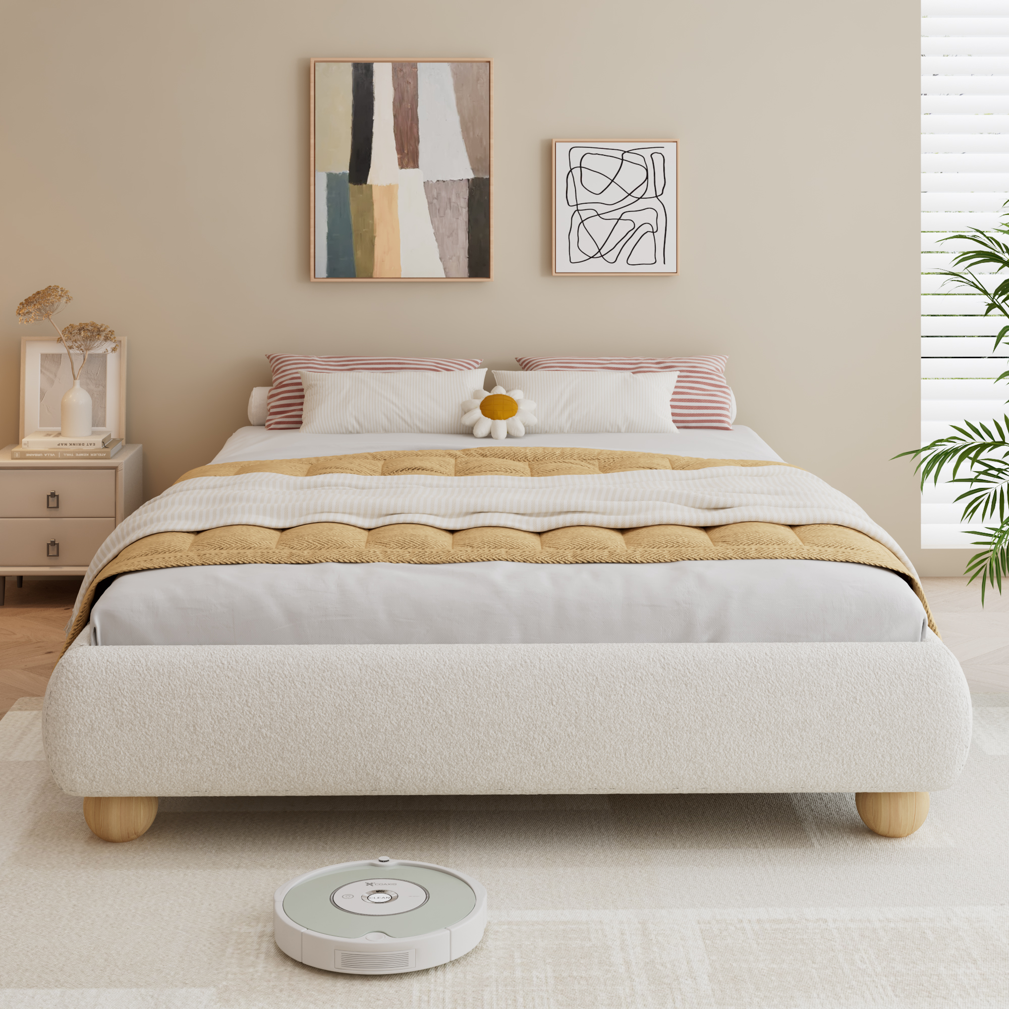 Product Name:Upholstered bed, 4ft6 double bed 135×190cm, Sturdy bed slats, Comfortable soft bed, Boucle + MDF+Plywood, Beige