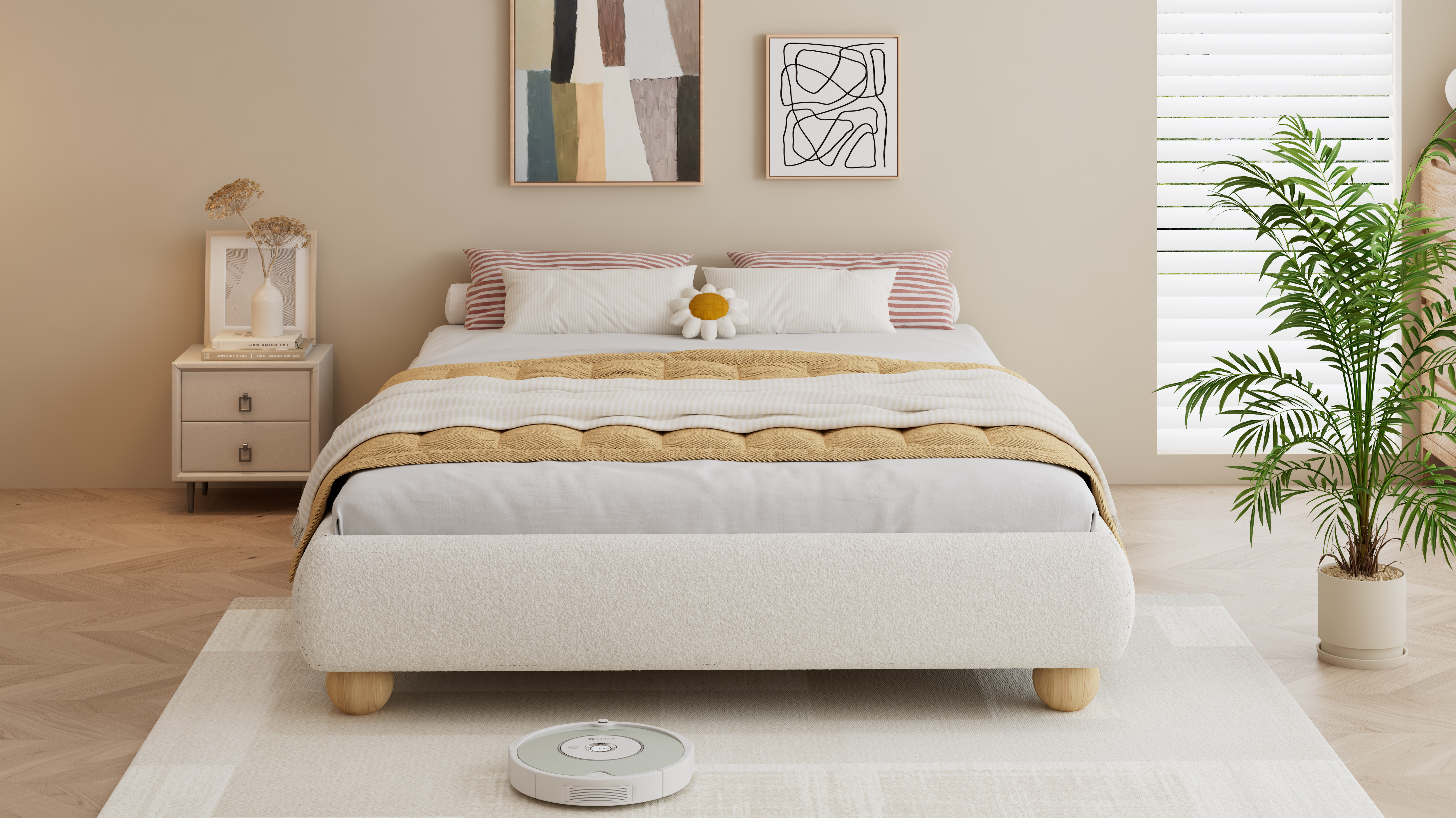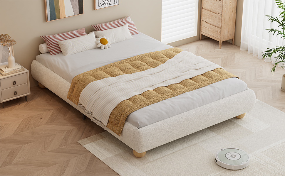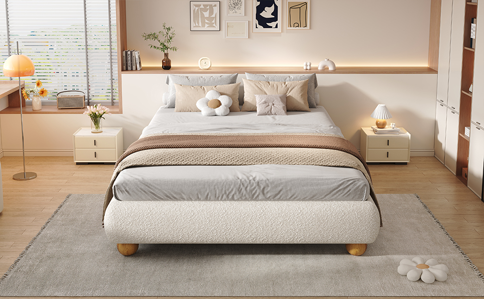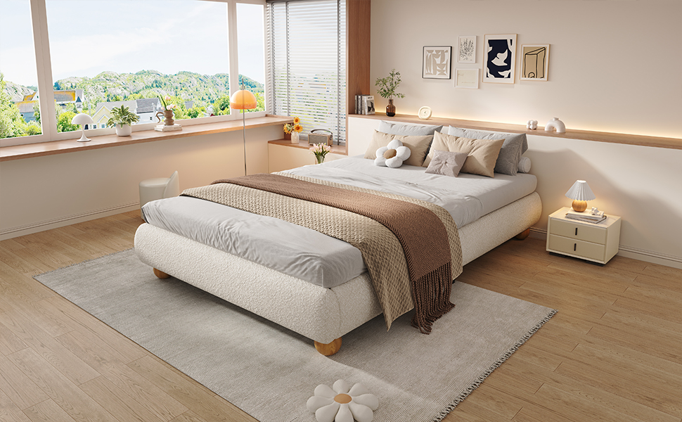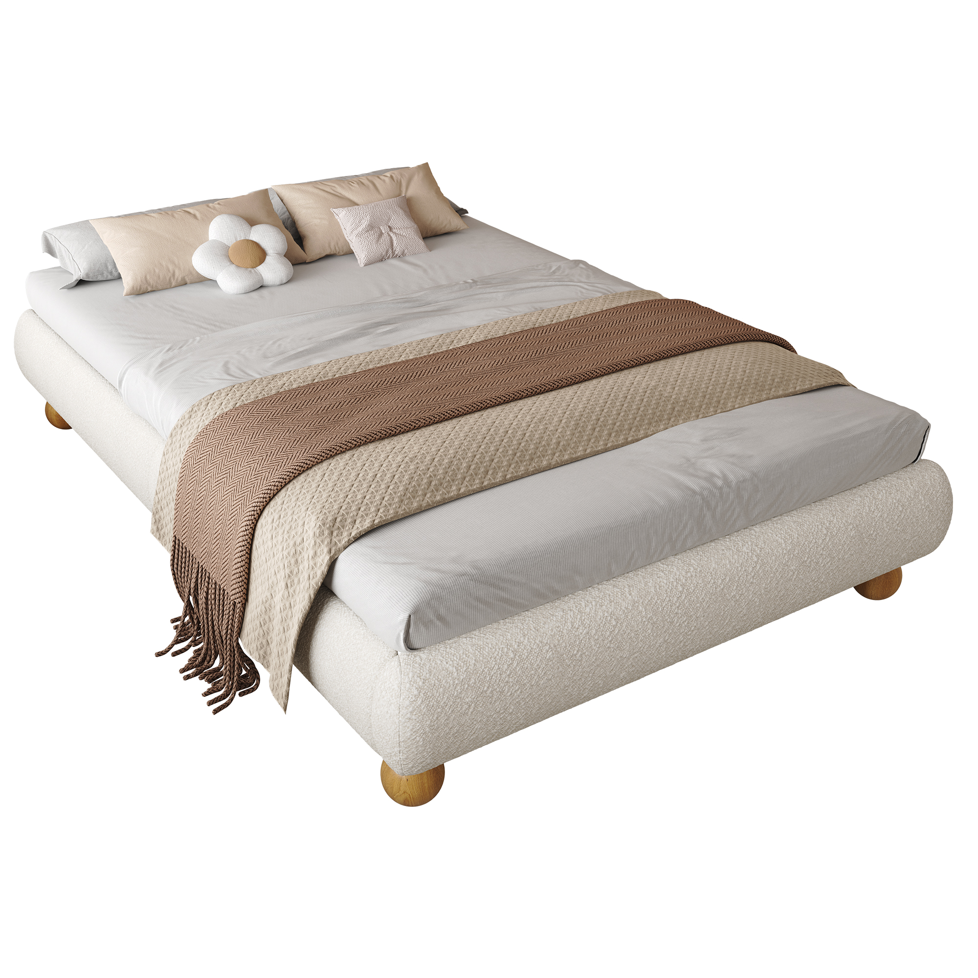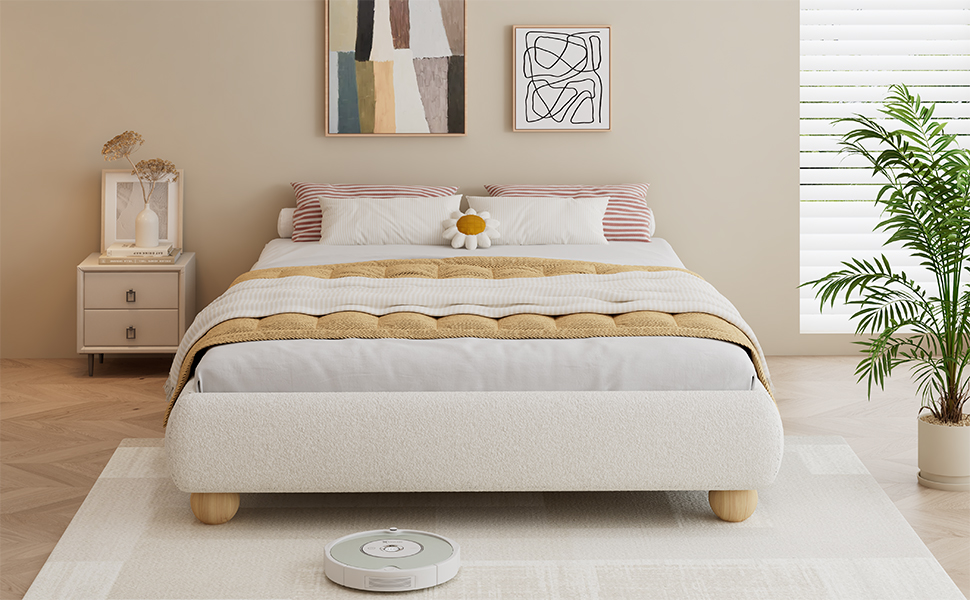 1.Sturdy bed frame 2.Unique circular bed leg design 3.Subtle color palette 4.Complements diverse decor styles 5.Easy to install