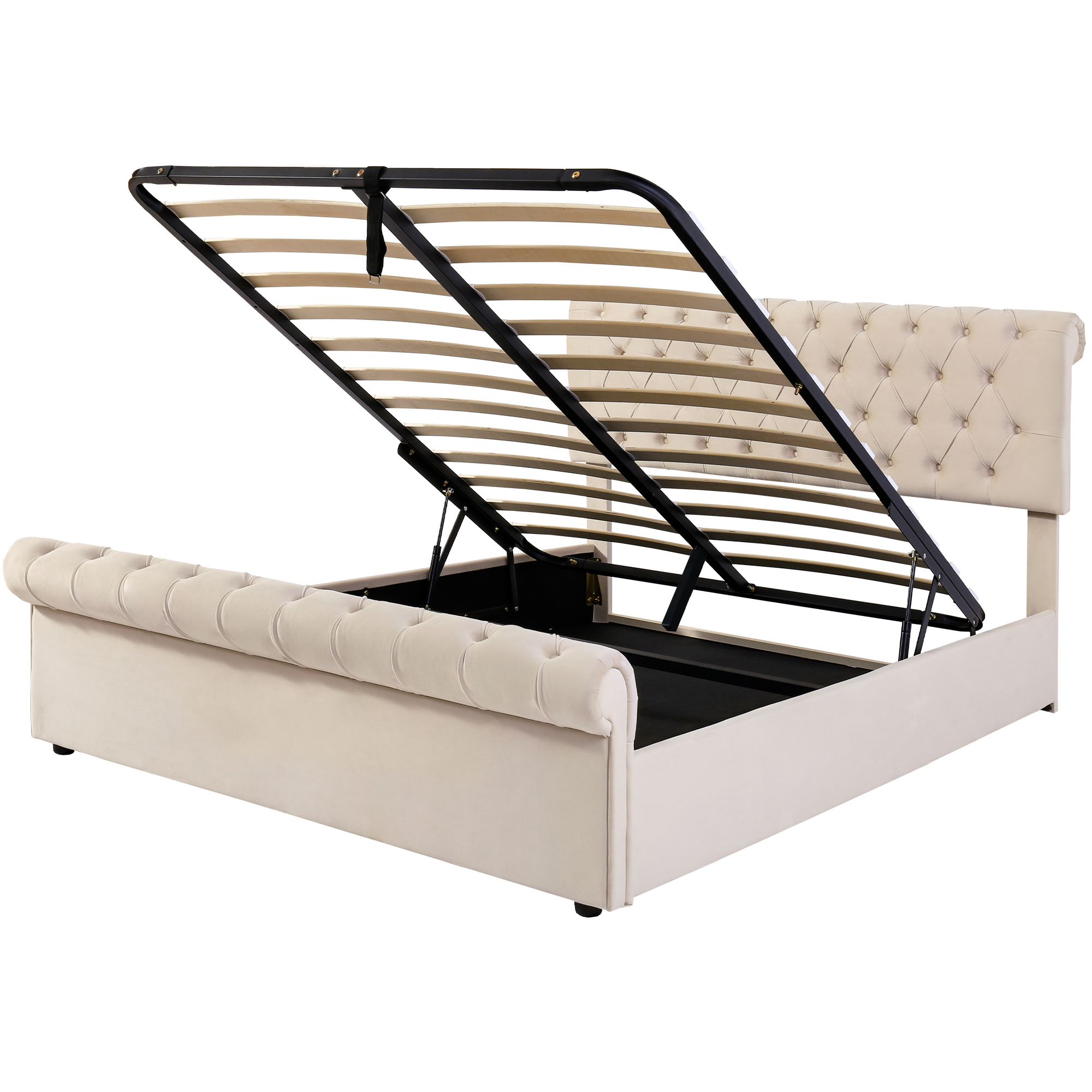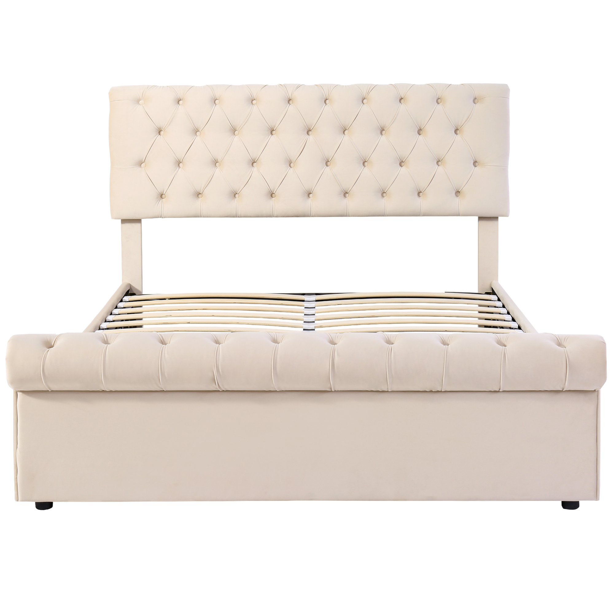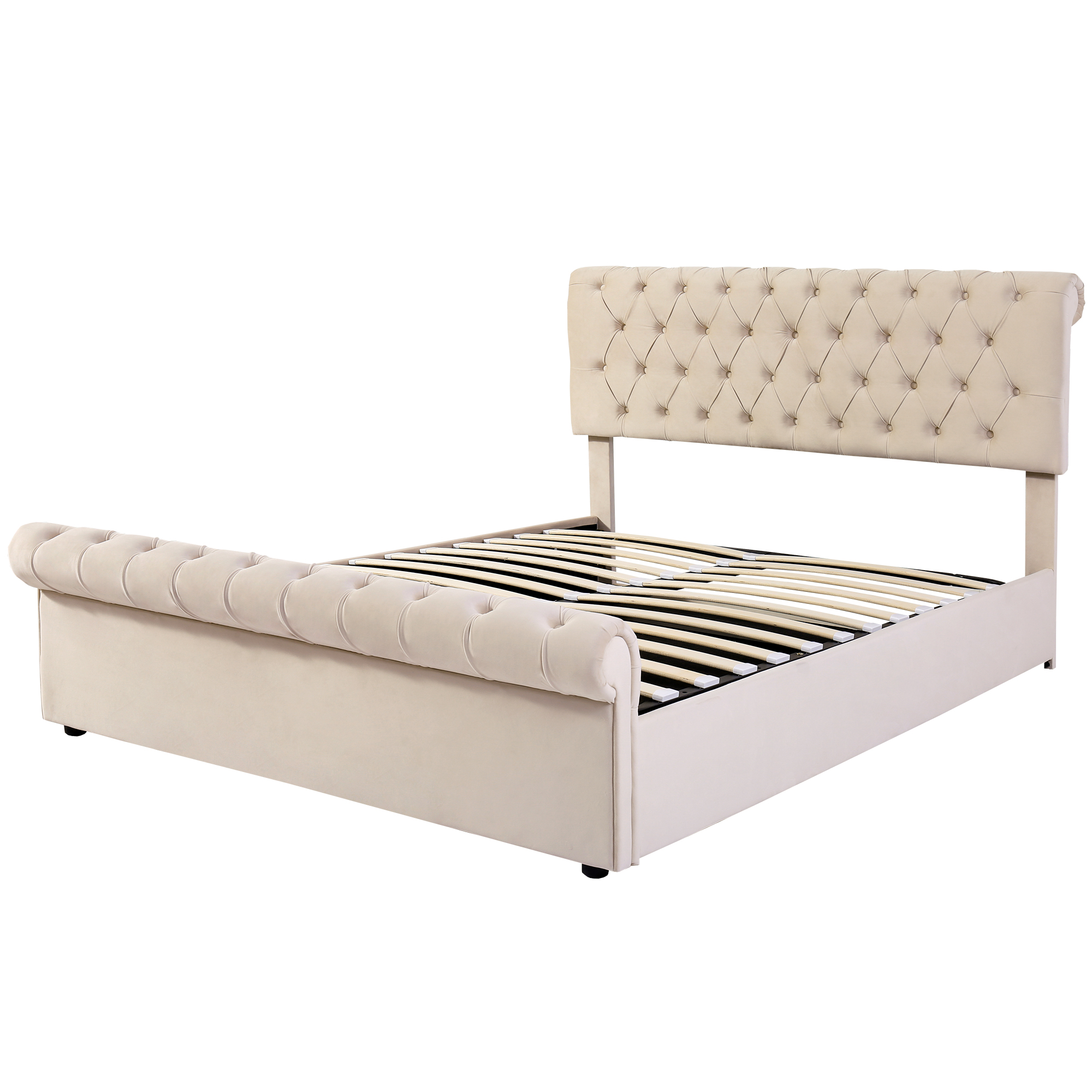 Product Name:Upholstered Bed (5ft,150*200), 5ft King Bed, Luxurious Velvet Button-Tufted Sleigh Bed Storage, functional bed with slatted frame and Storage, Beige