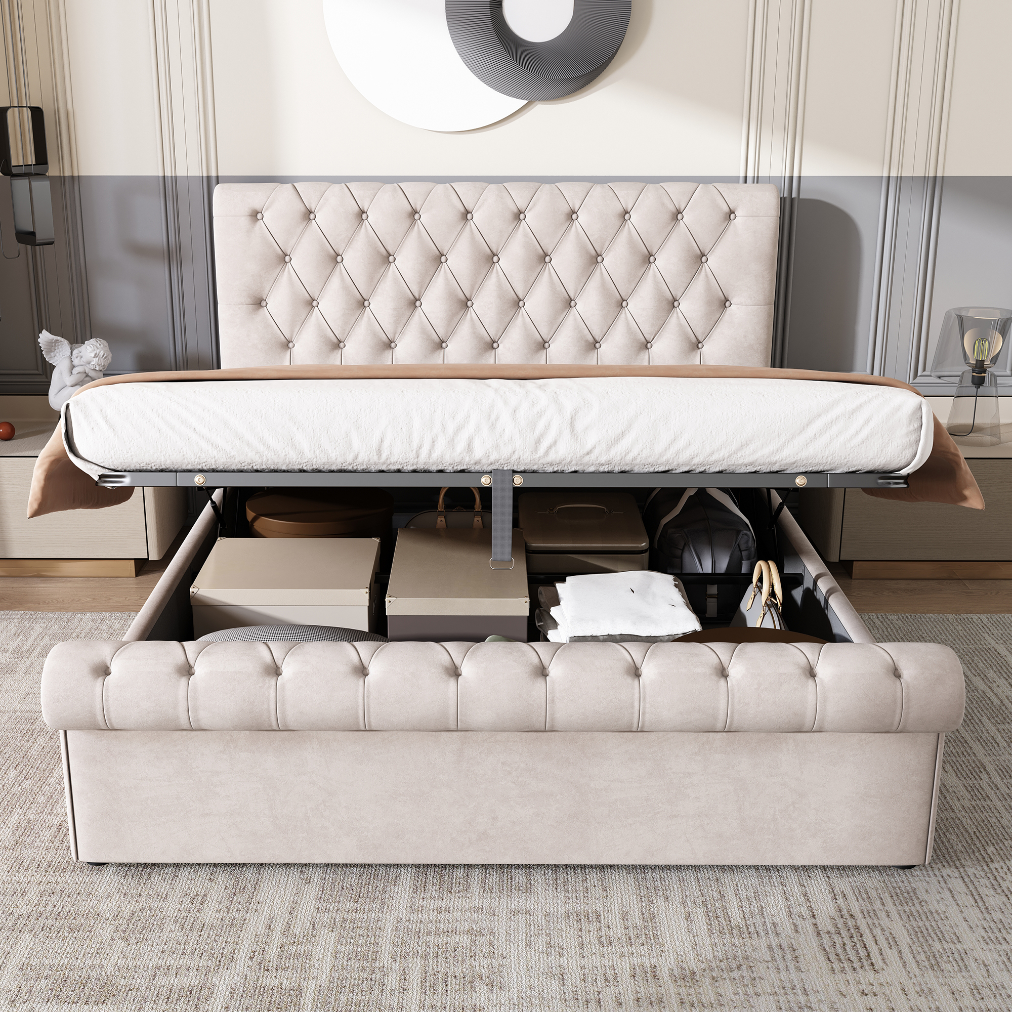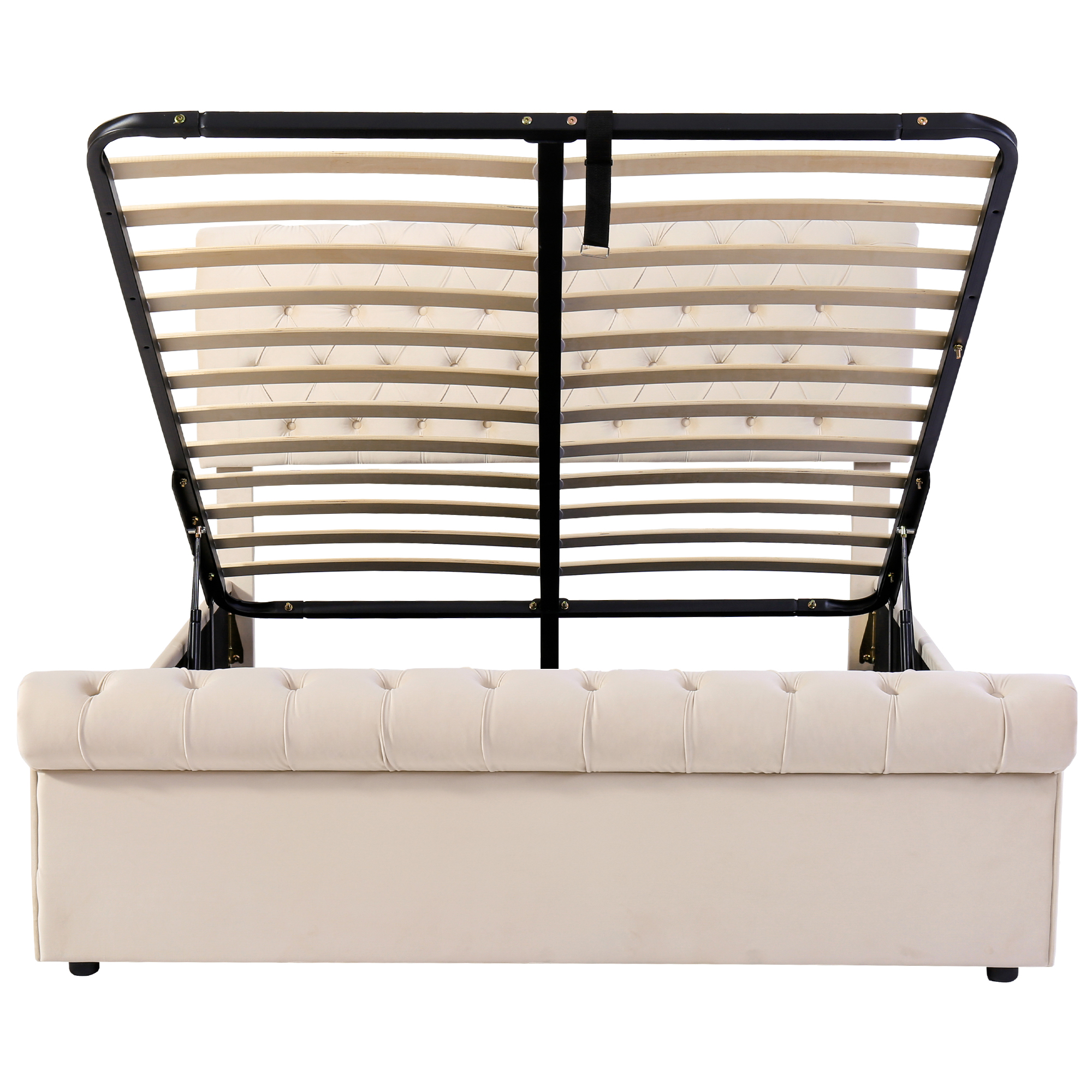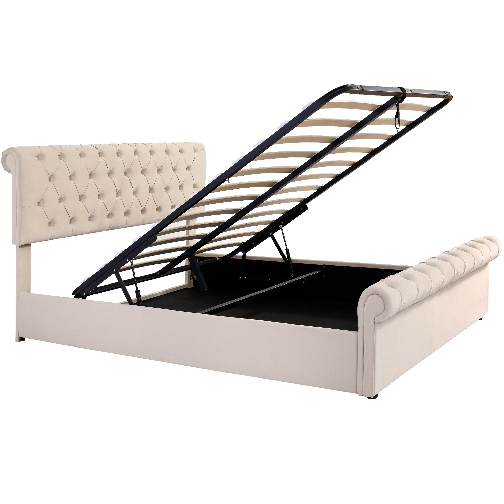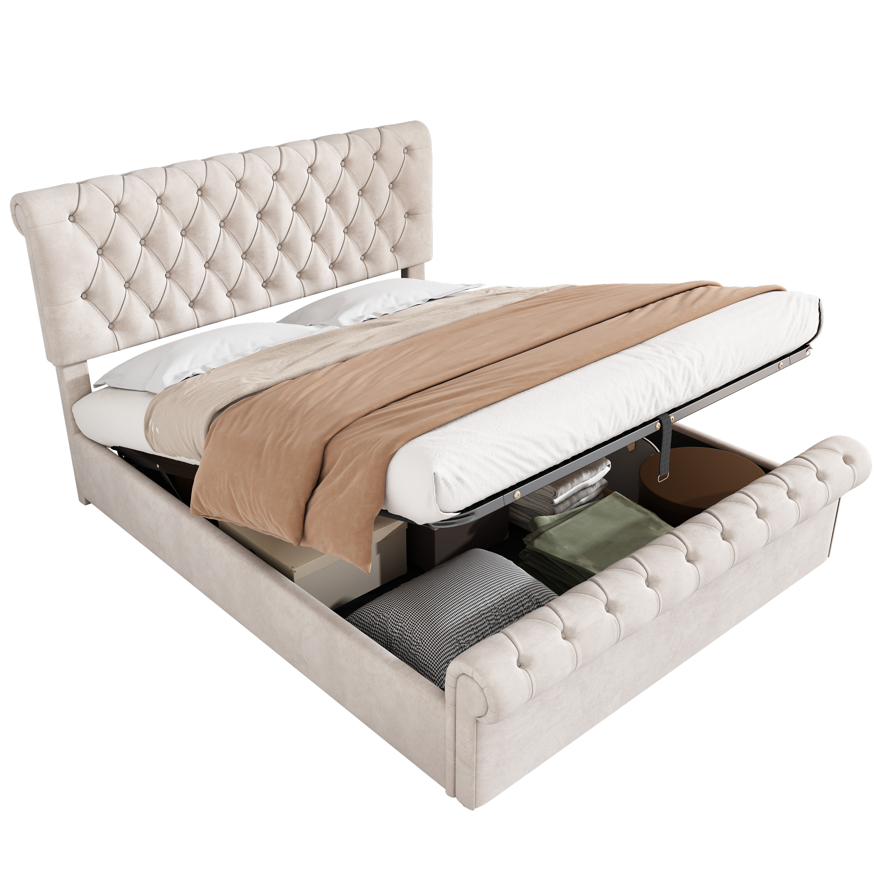 Product Name:Upholstered Bed (5ft,150*200), 5ft King Bed, Luxurious Velvet Button-Tufted Sleigh Bed Storage, functional bed with slatted frame and Storage, Beige