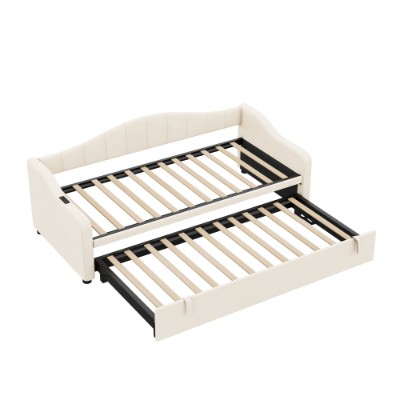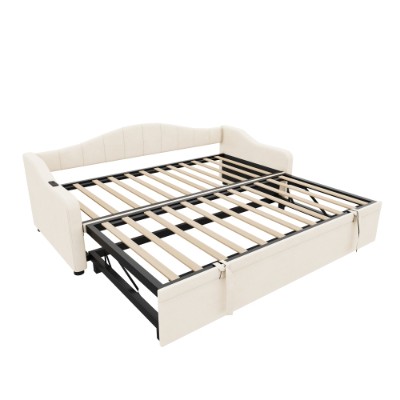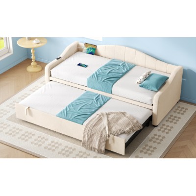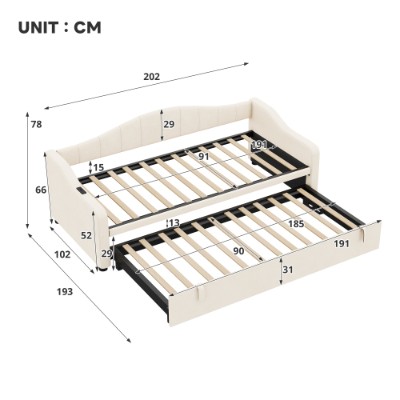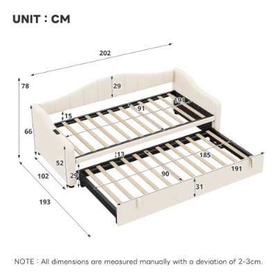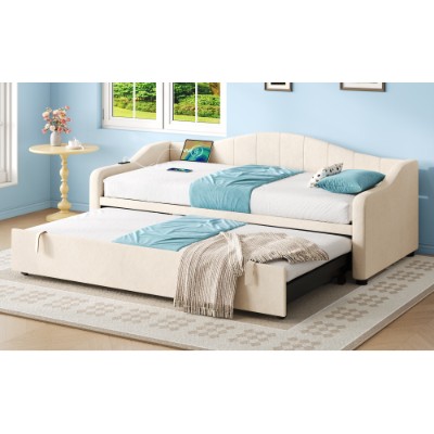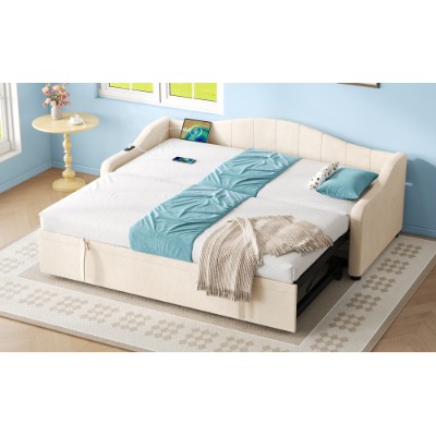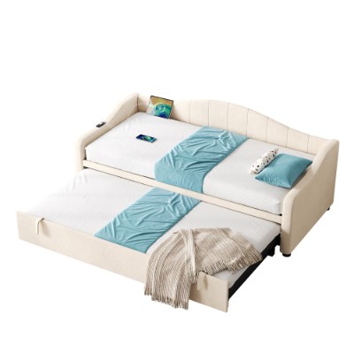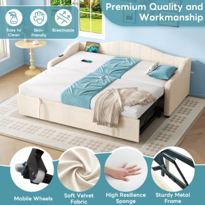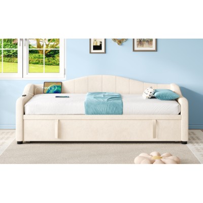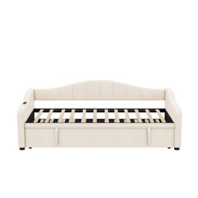 Product Name:Upholstered Bed 90x190cm, Daybed, Sofa Bed with Charging Station, 3ft Single Velvet Bed with USB and Type - C Ports, Pull out Trundle Bed for Living Room/ Bedroom/ Study Room, Beige (No Mattress)