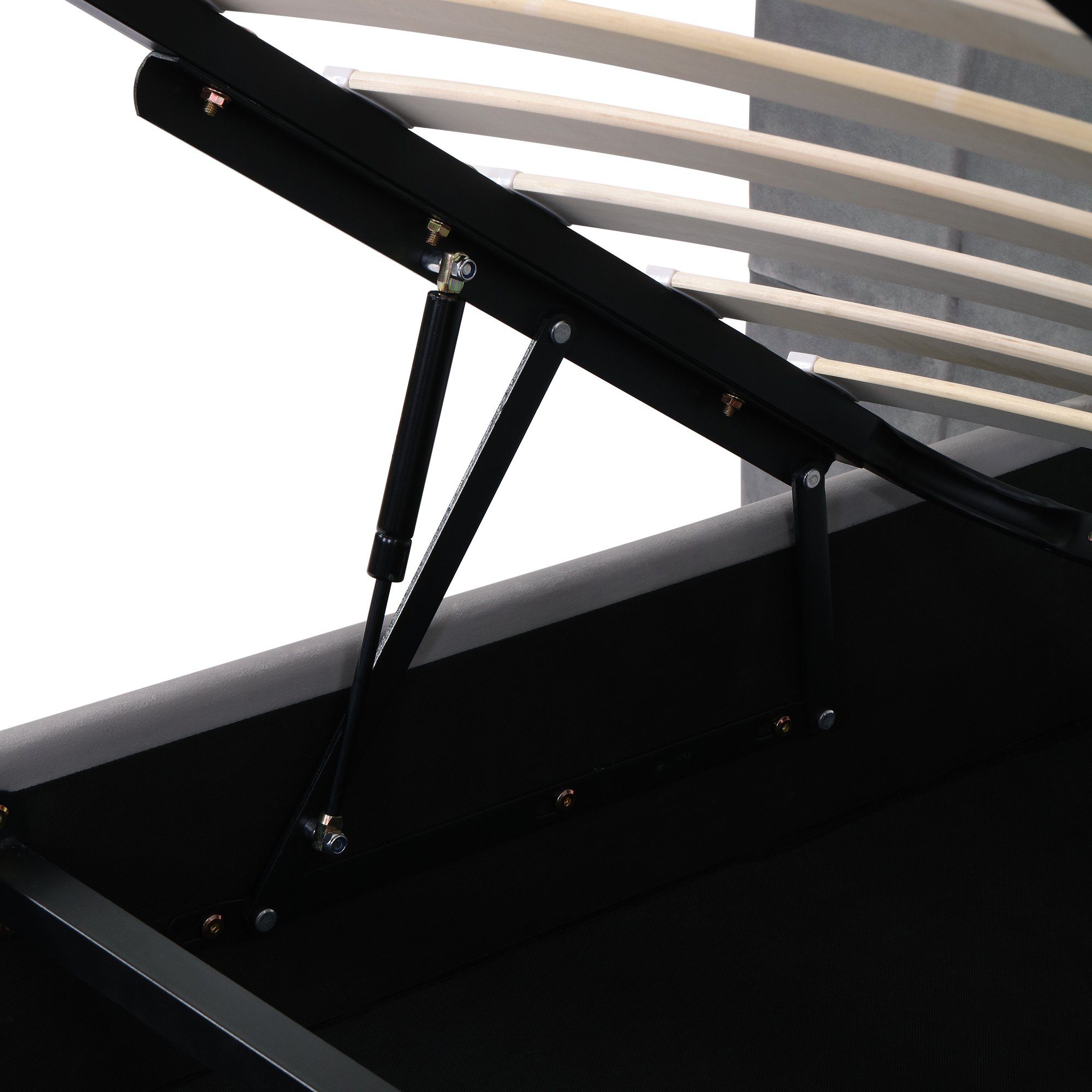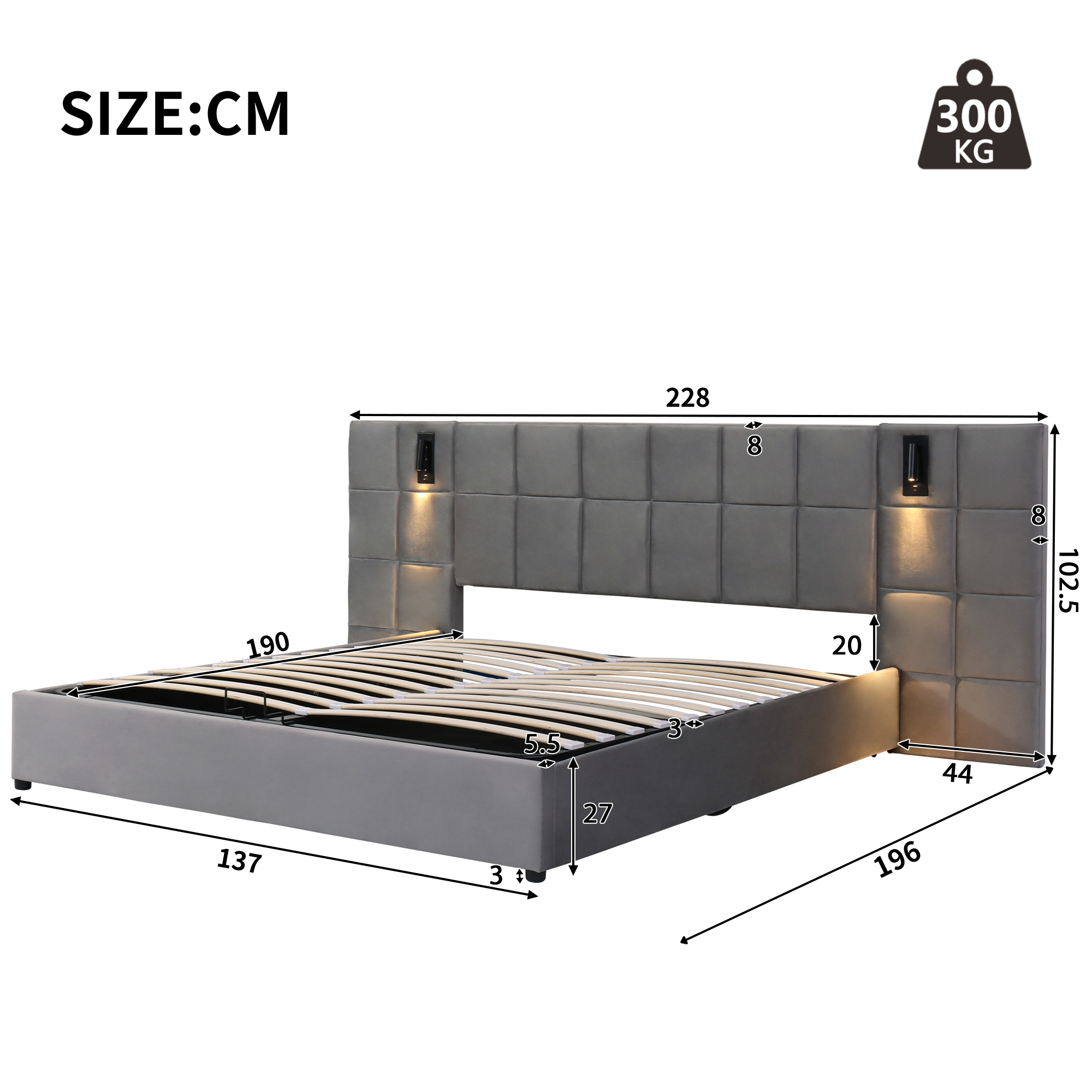 Product Name:Upholstered bed, Double Bed-4ft6(135*190cm), hydraulic storage bed with directional lamp and USB charging, wide headboard, Without bedside tables and mattress, velvet, grey(old sku:5320601AAG)