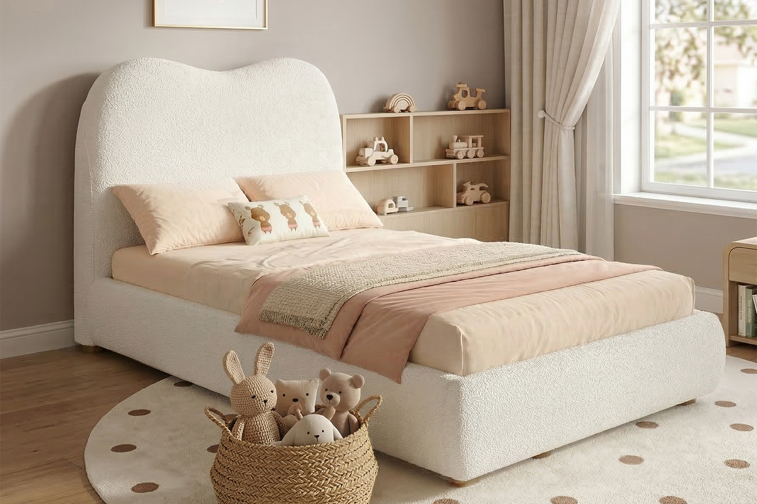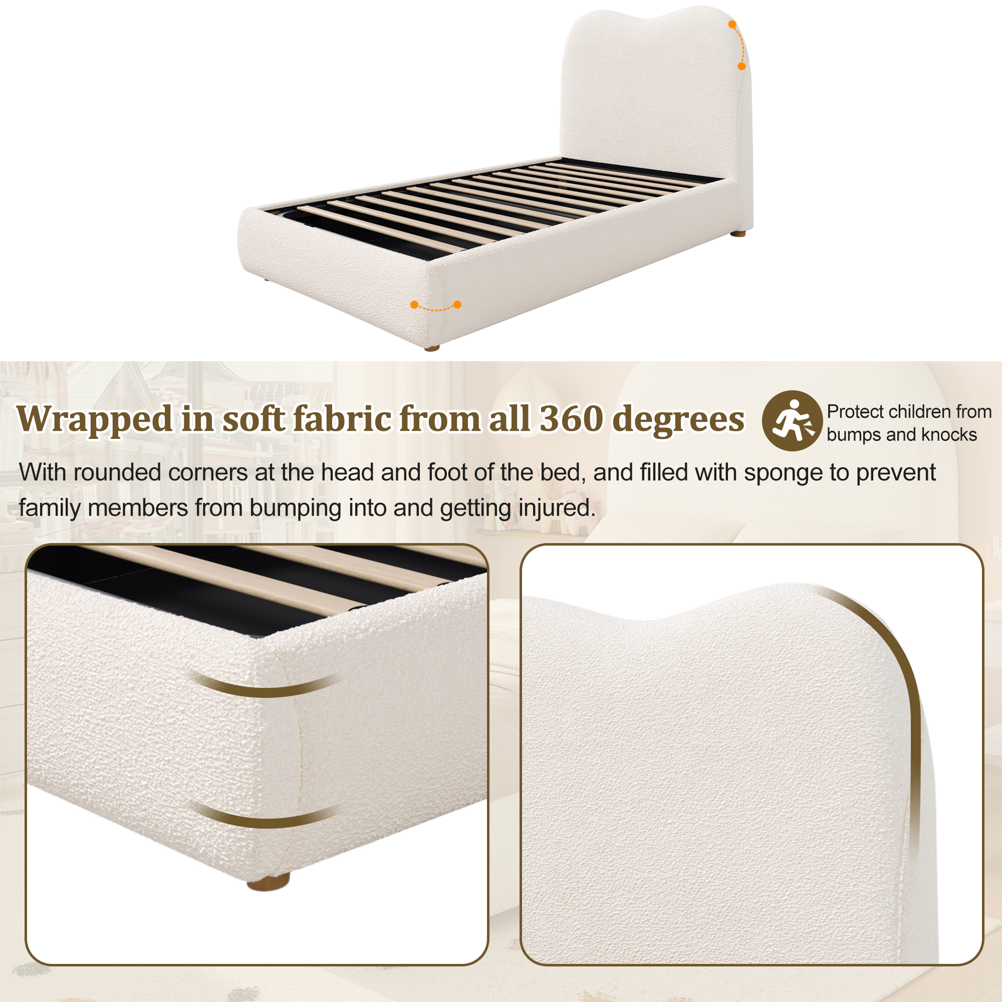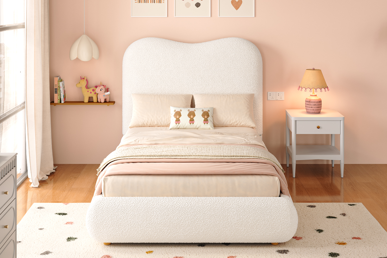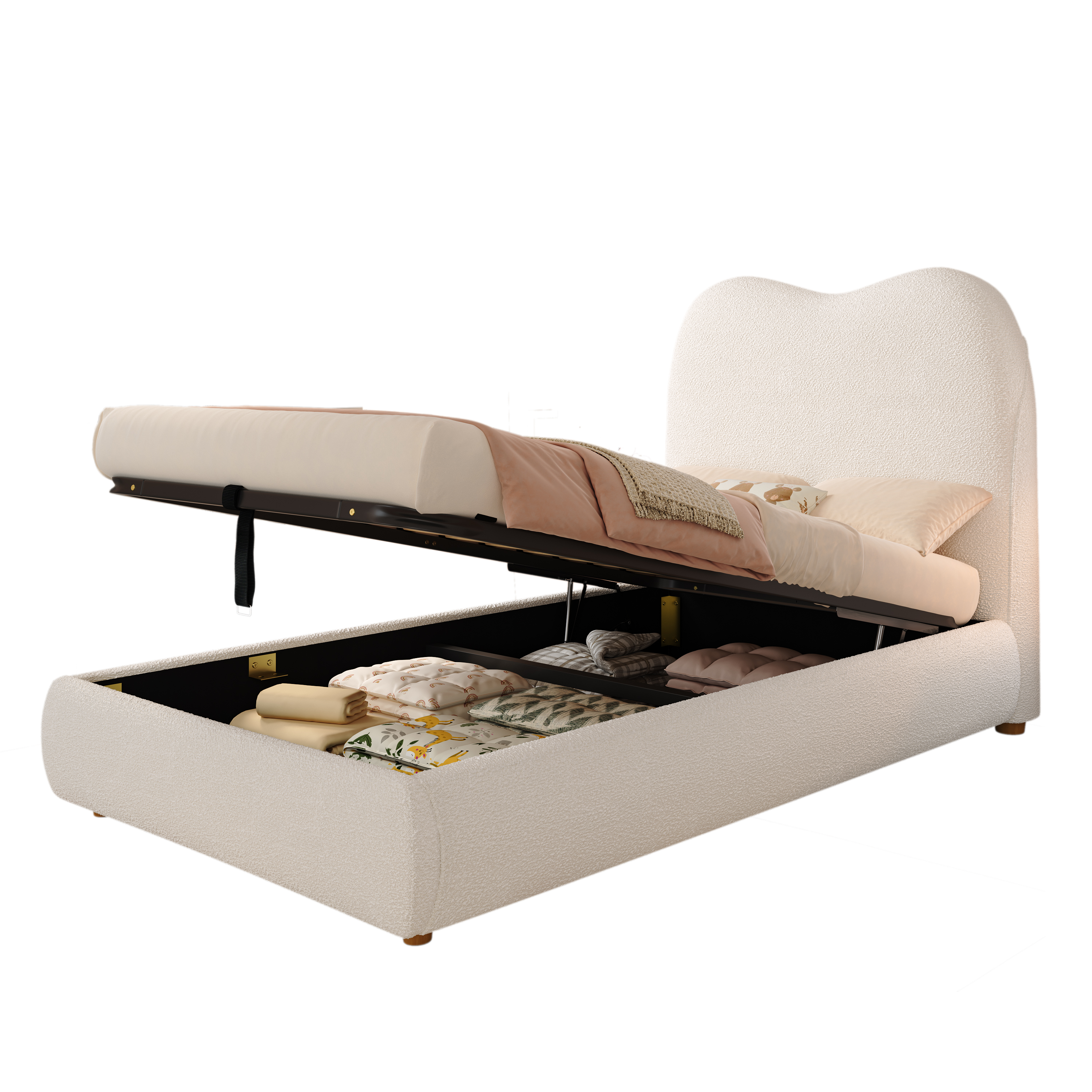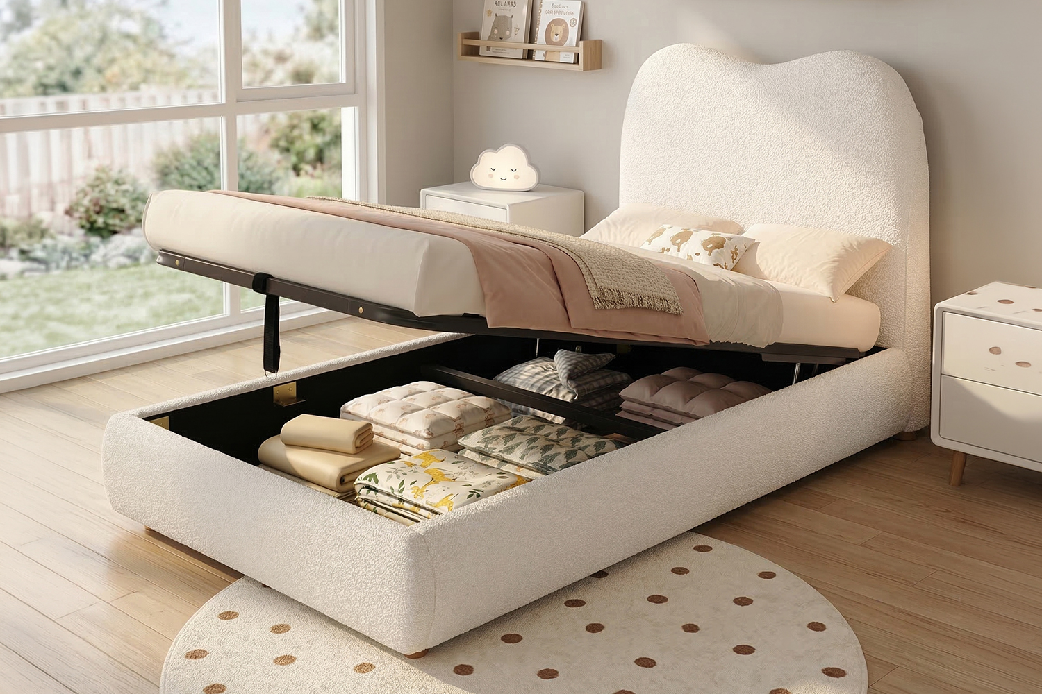 Product Name:Upholstered bed, single bed, children's bed, 3ft-90 x 190cm, hydraulic bed, bed with headboard and large storage space, upholstered headboard, beige bouclé