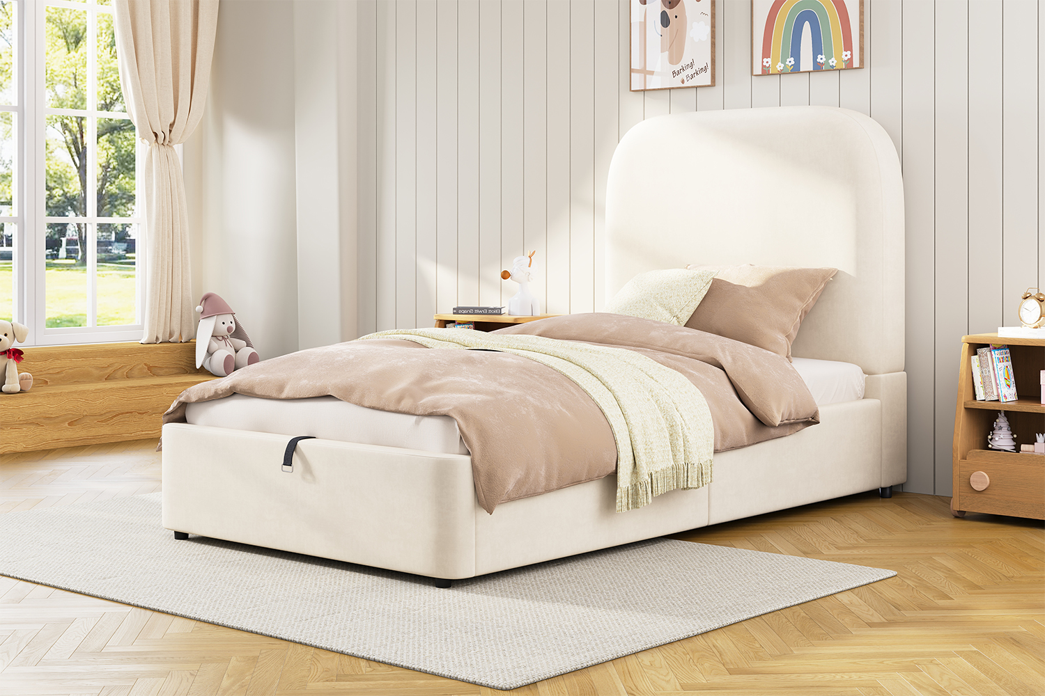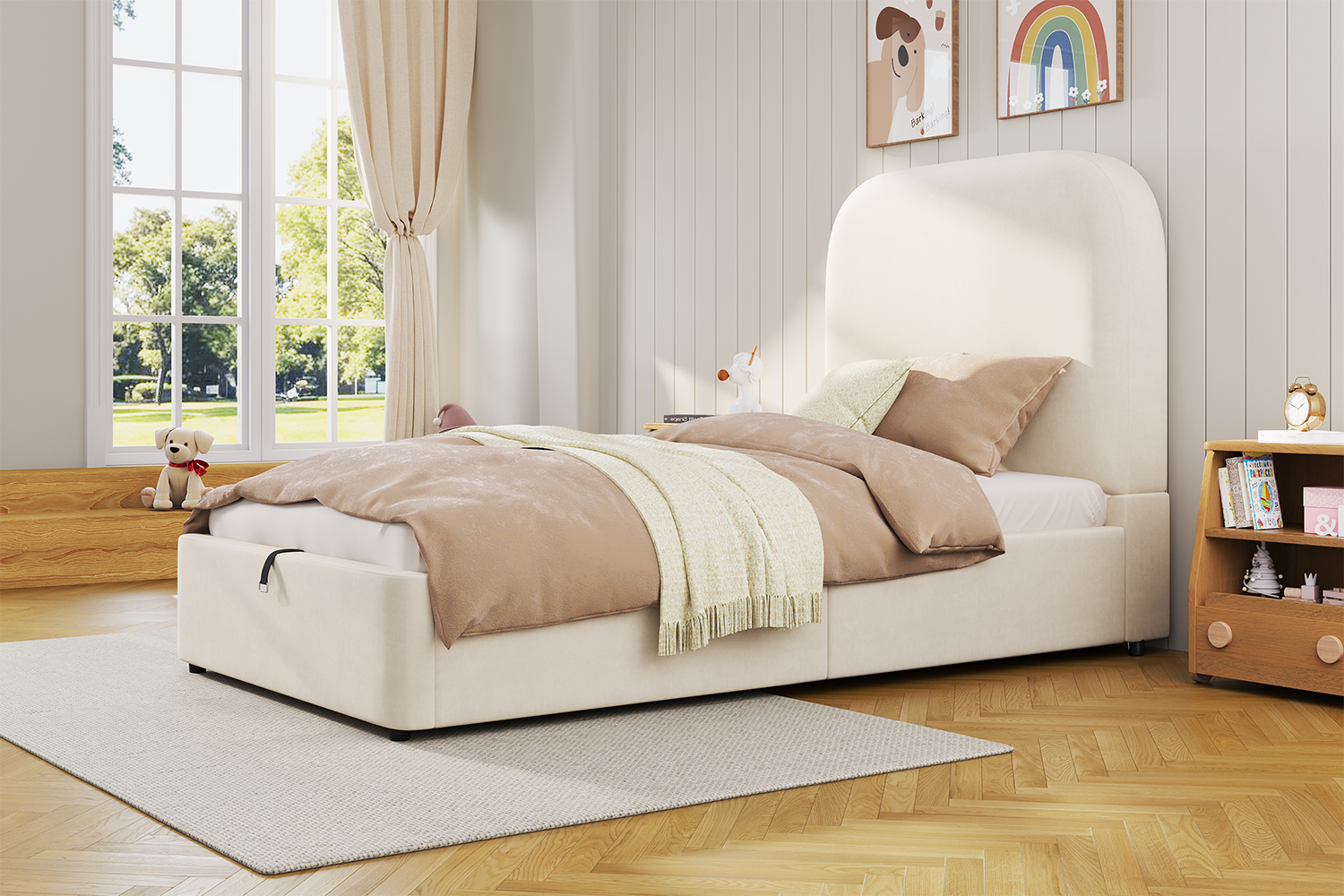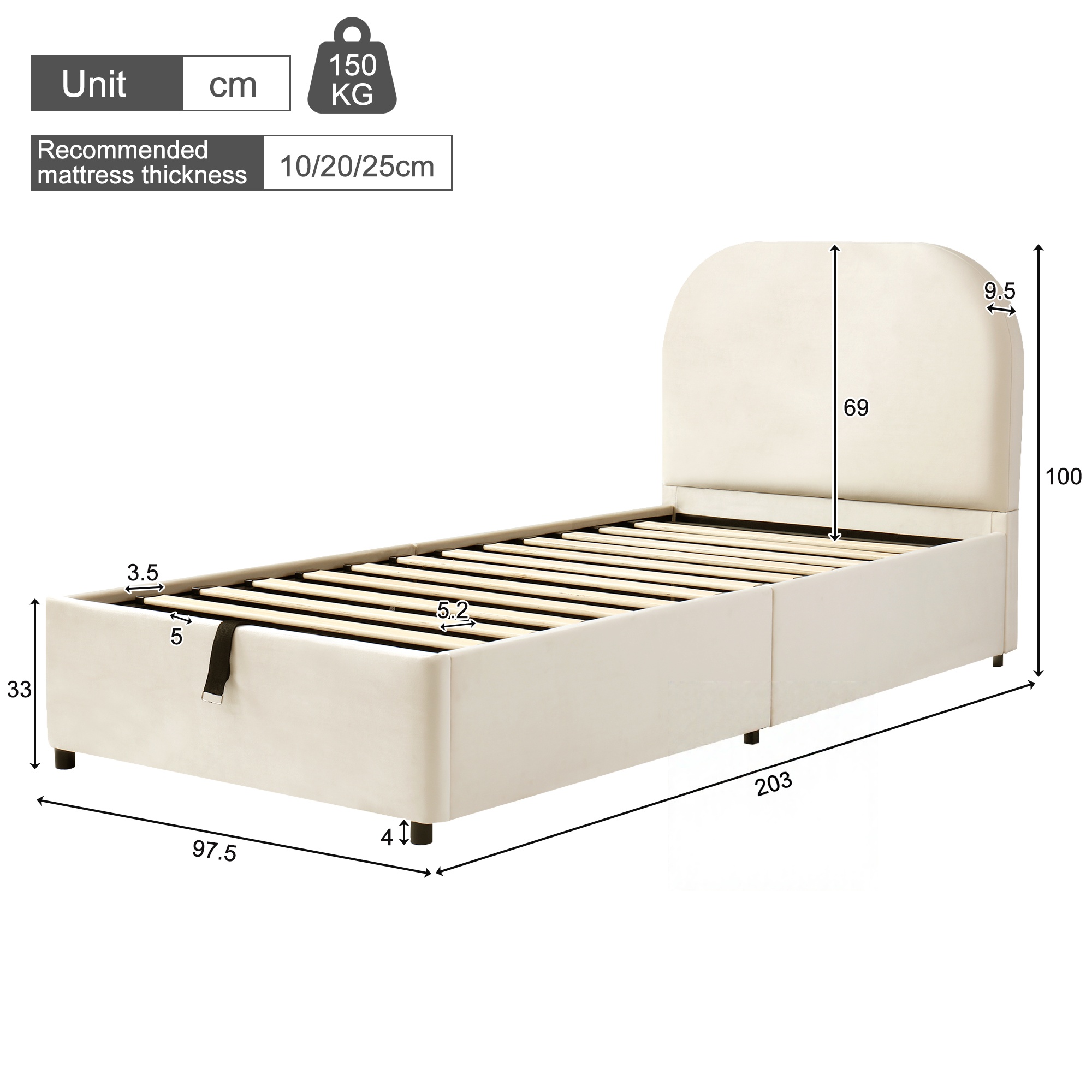 Product Name:Upholstered bed, single bed, children's bed, 3ft-90 x 190cm, hydraulic bed, bed with headboard and large storage space, upholstered headboard, velvet, beige
