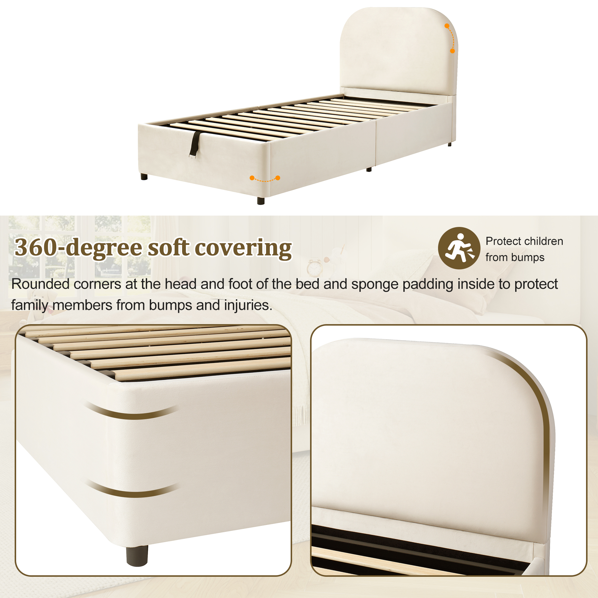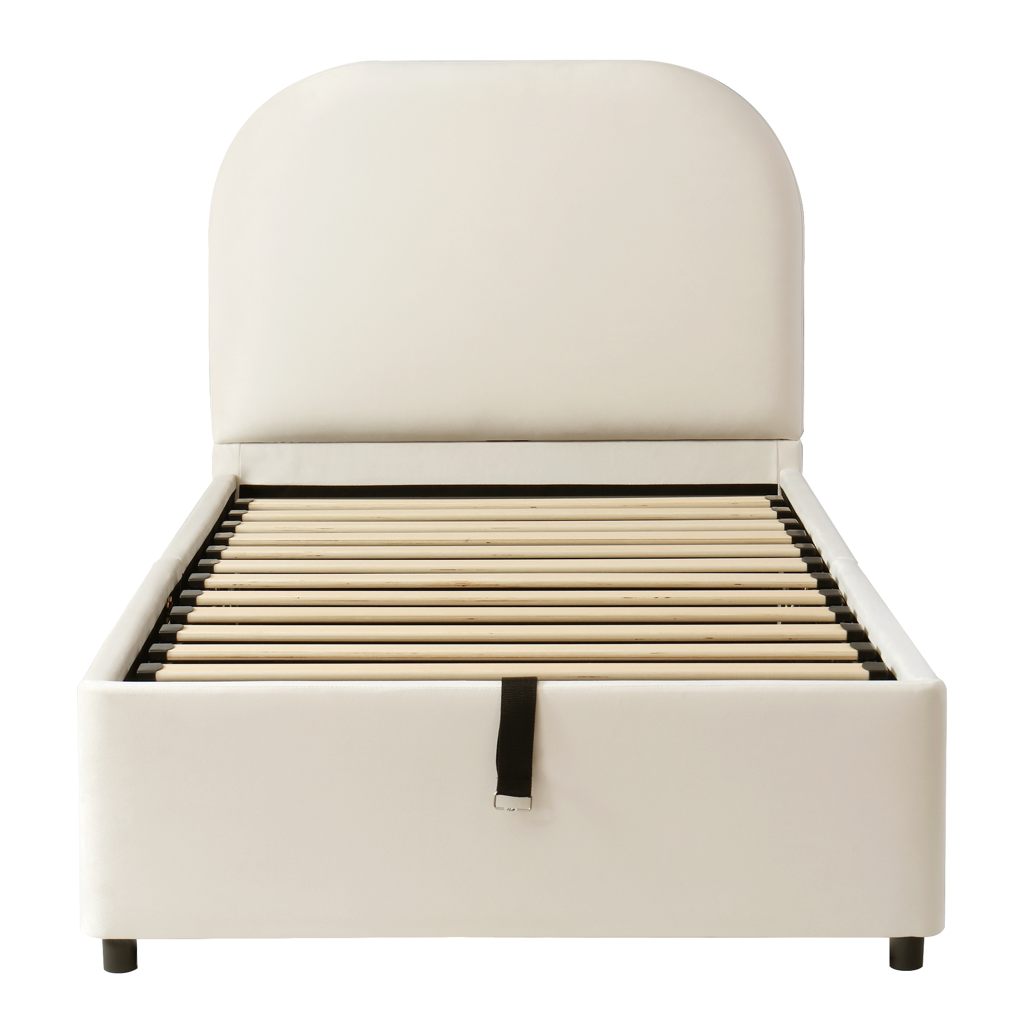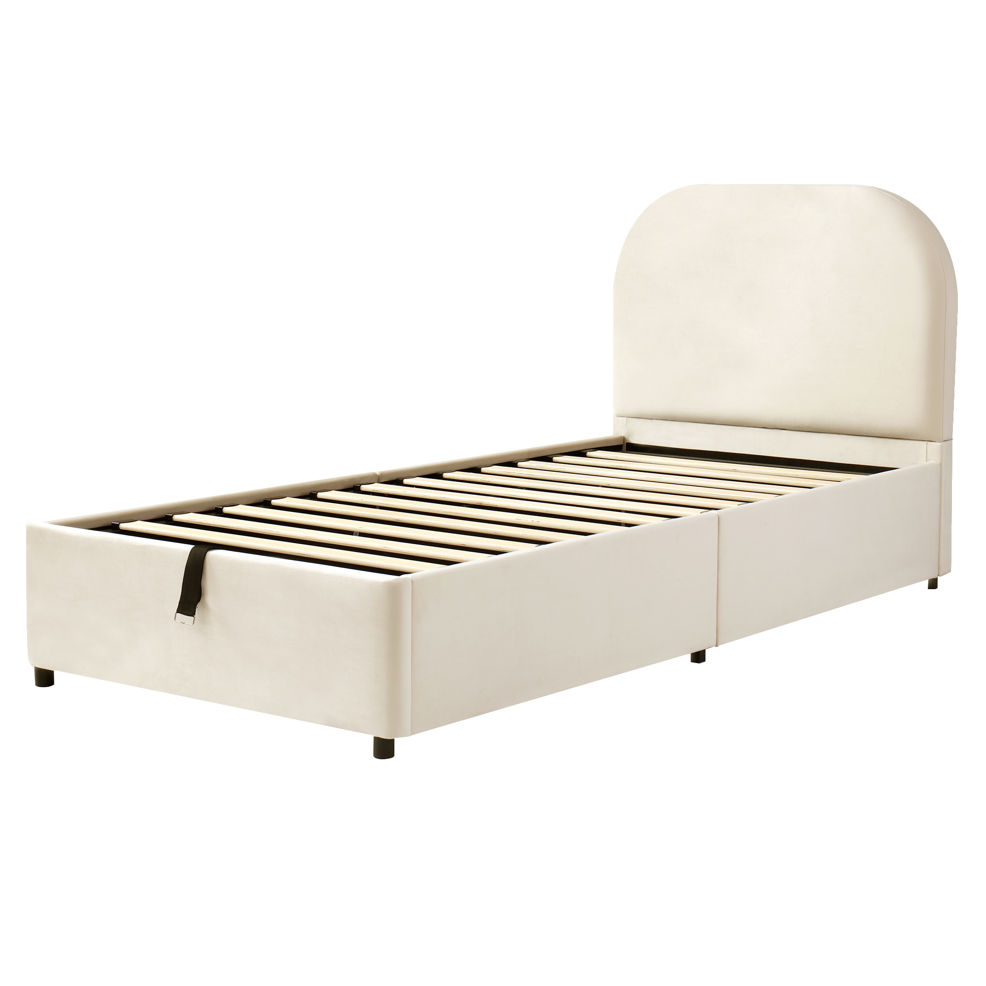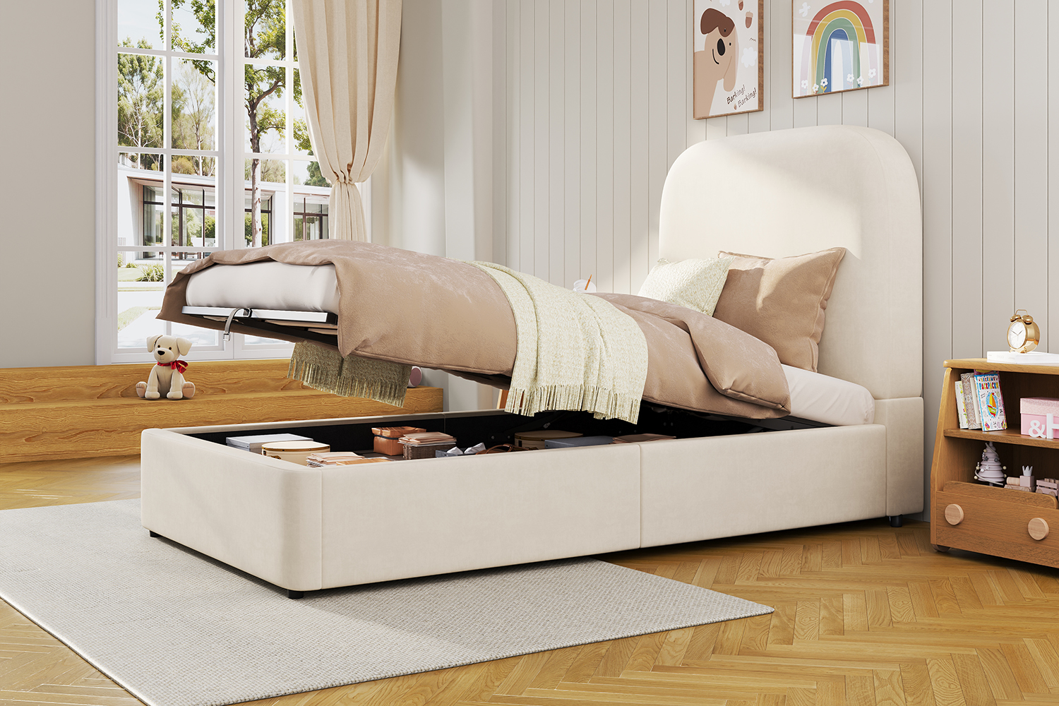 Product Name:Upholstered bed, single bed, children's bed, 3ft-90 x 190cm, hydraulic bed, bed with headboard and large storage space, upholstered headboard, velvet, beige