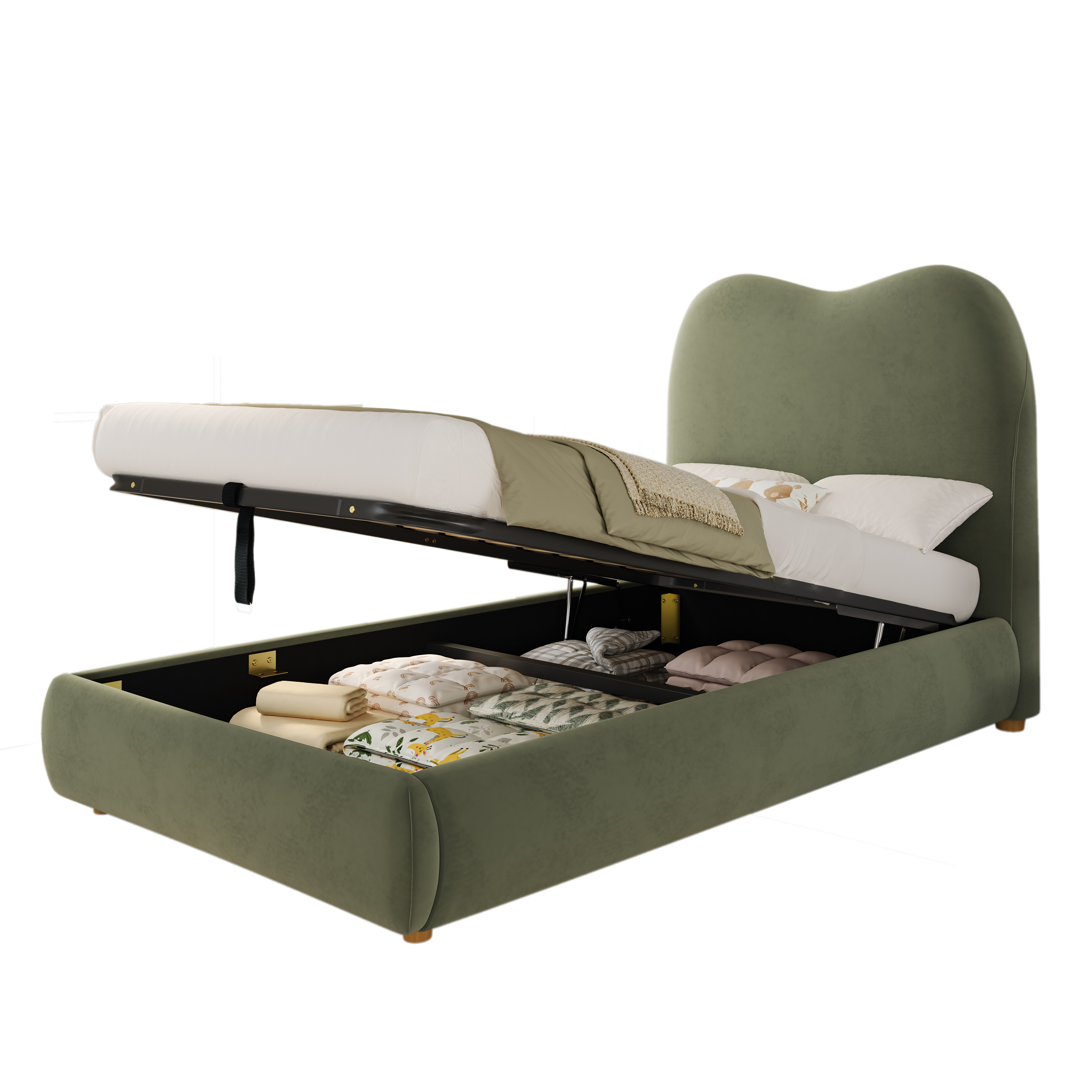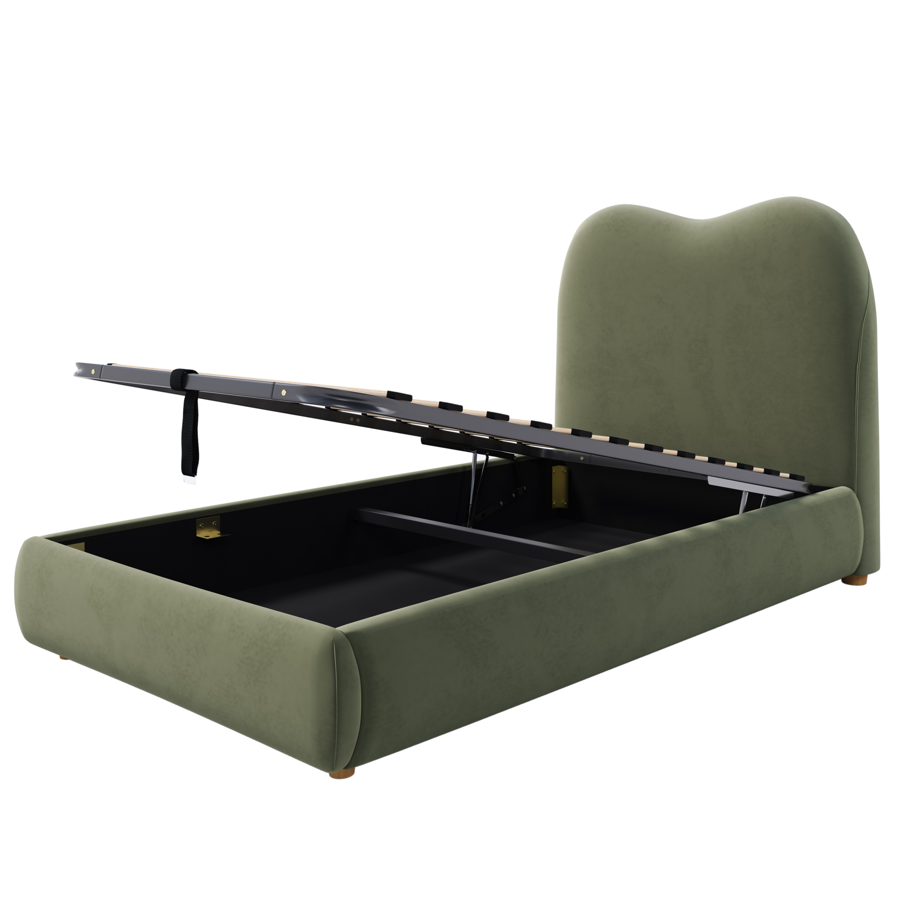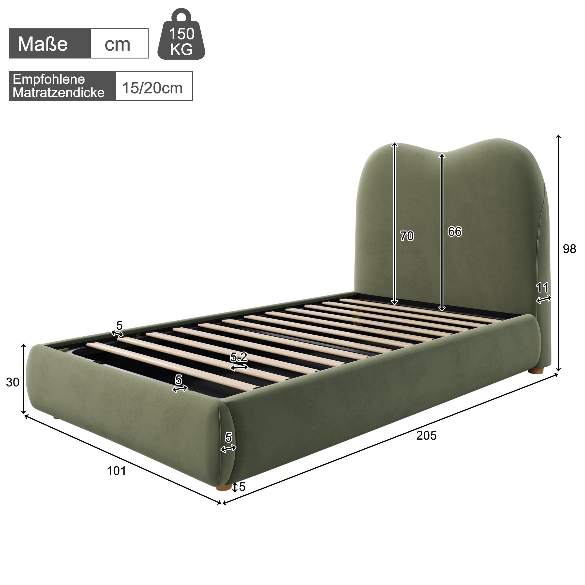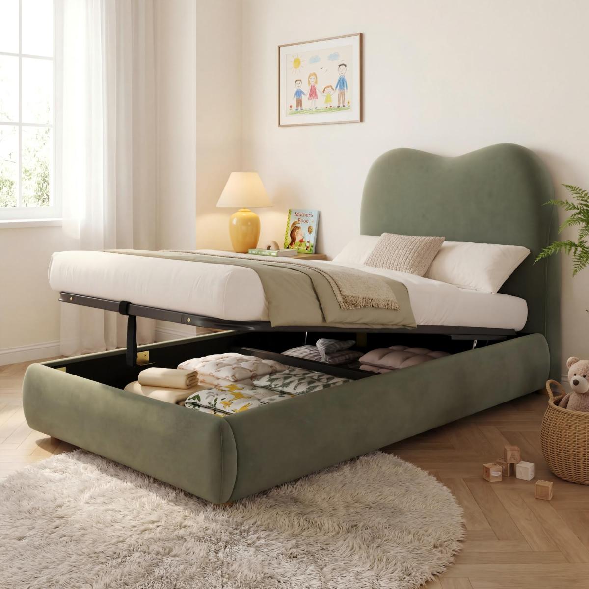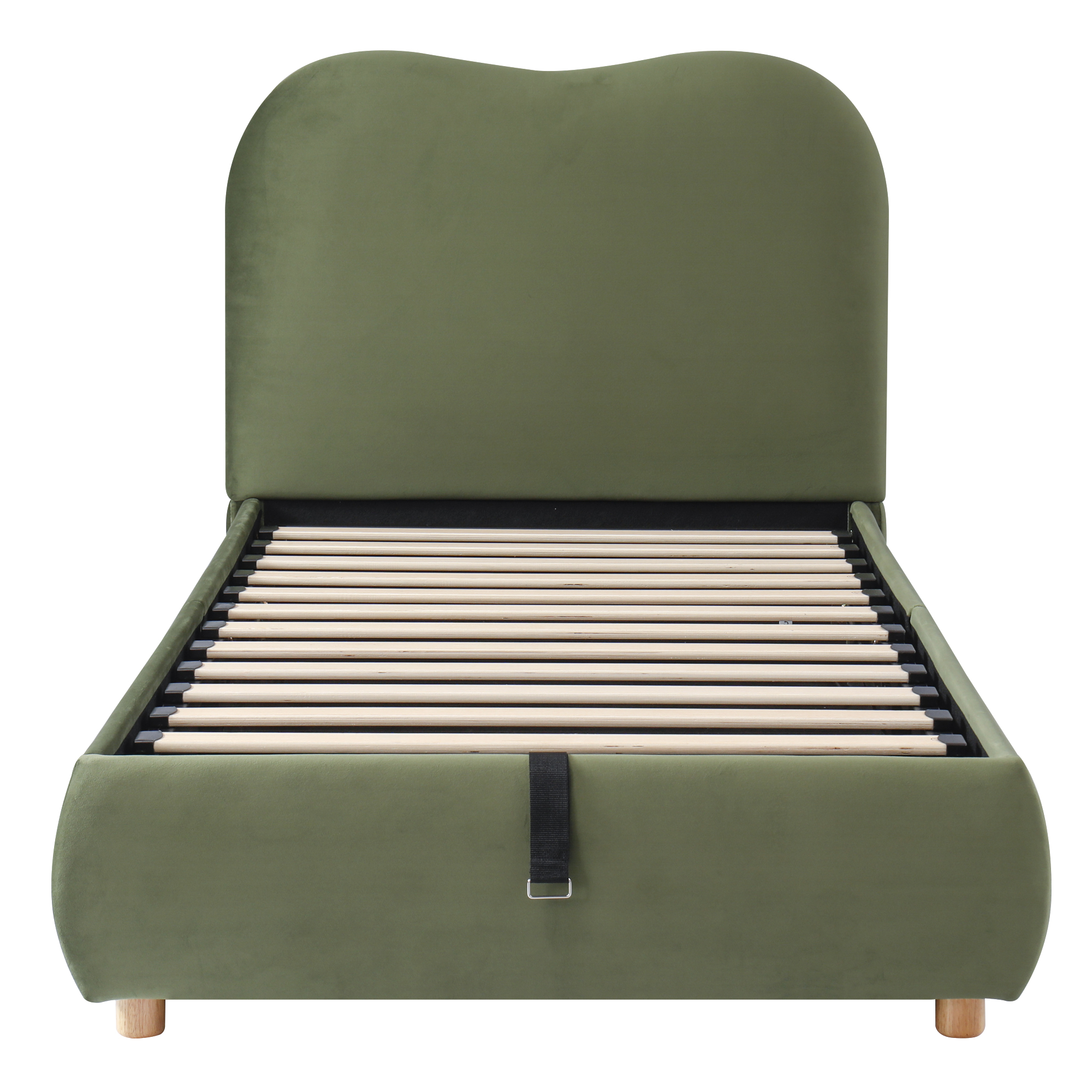 Product Name:Upholstered bed, single bed, children's bed, 3ft-90 x 190cm, hydraulic bed, bed with headboard and large storage space, upholstered headboard, velvet, green