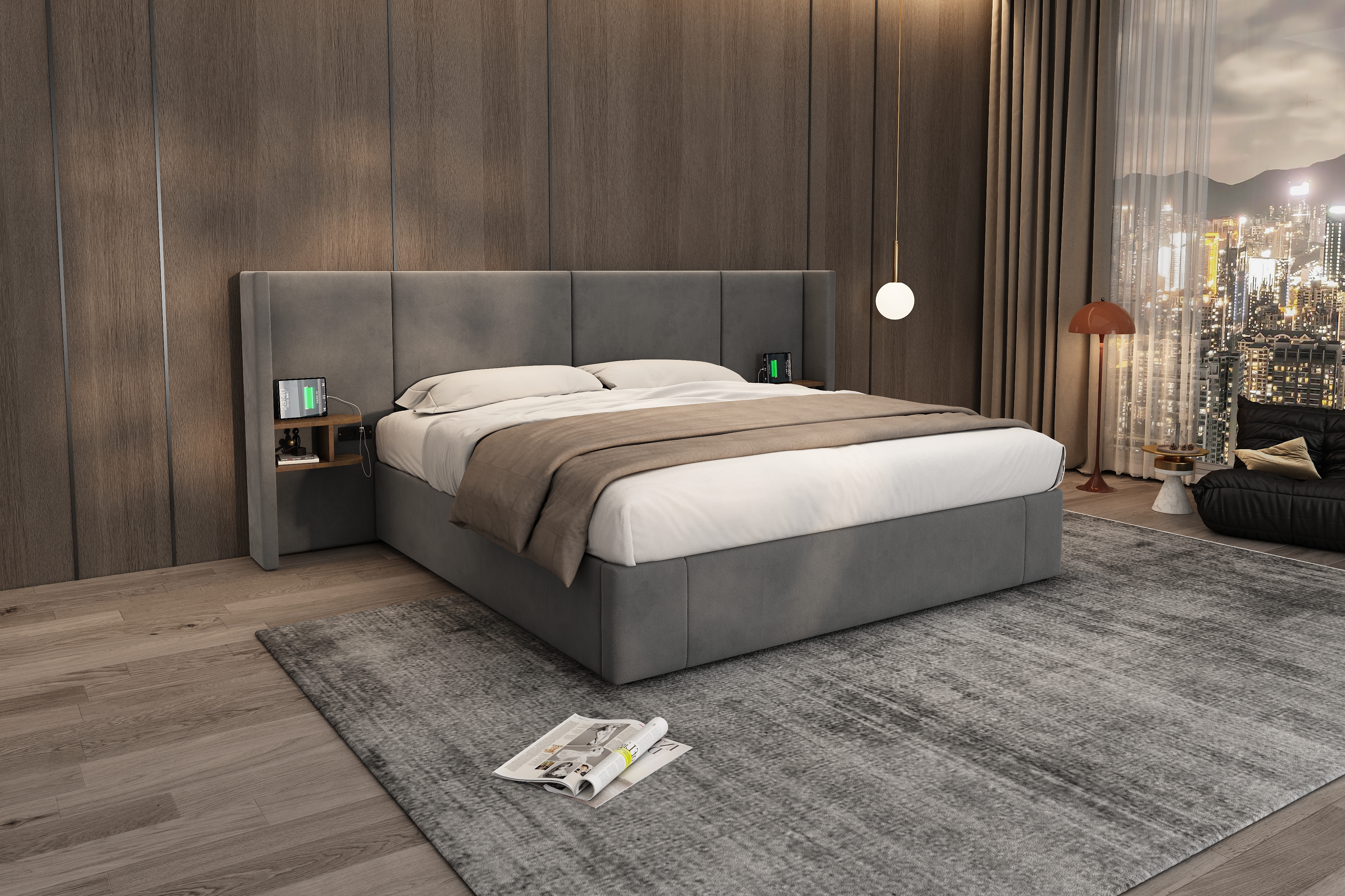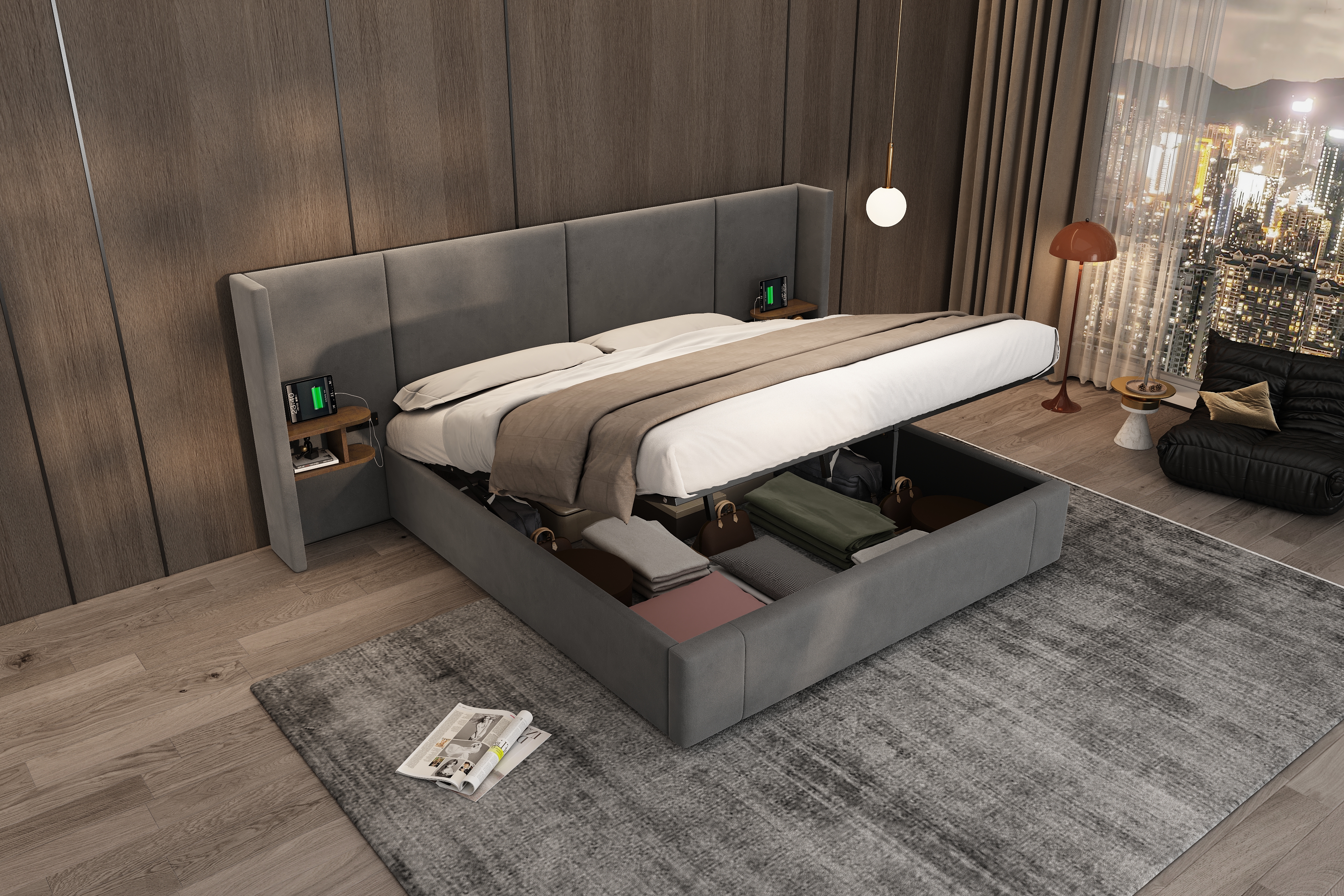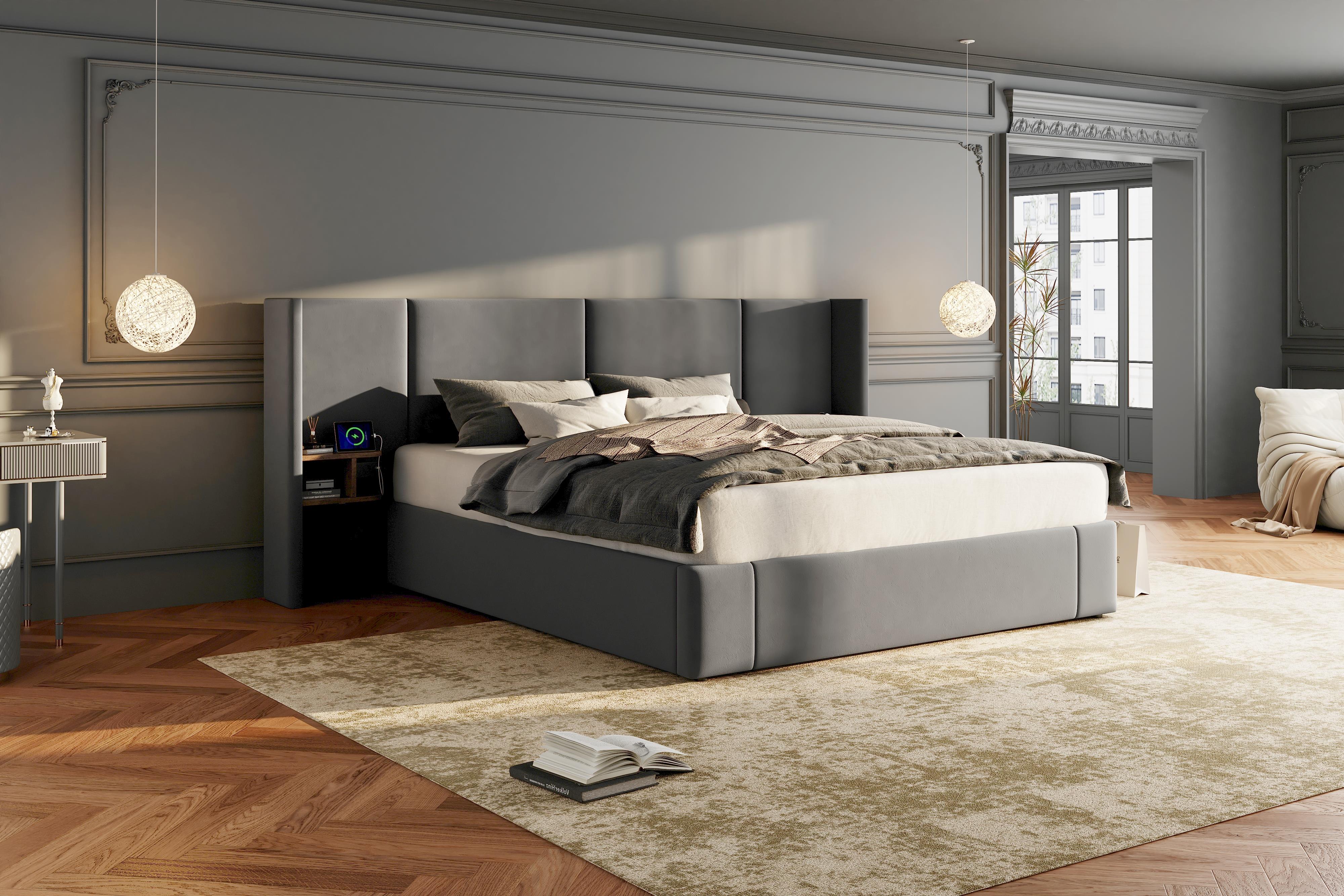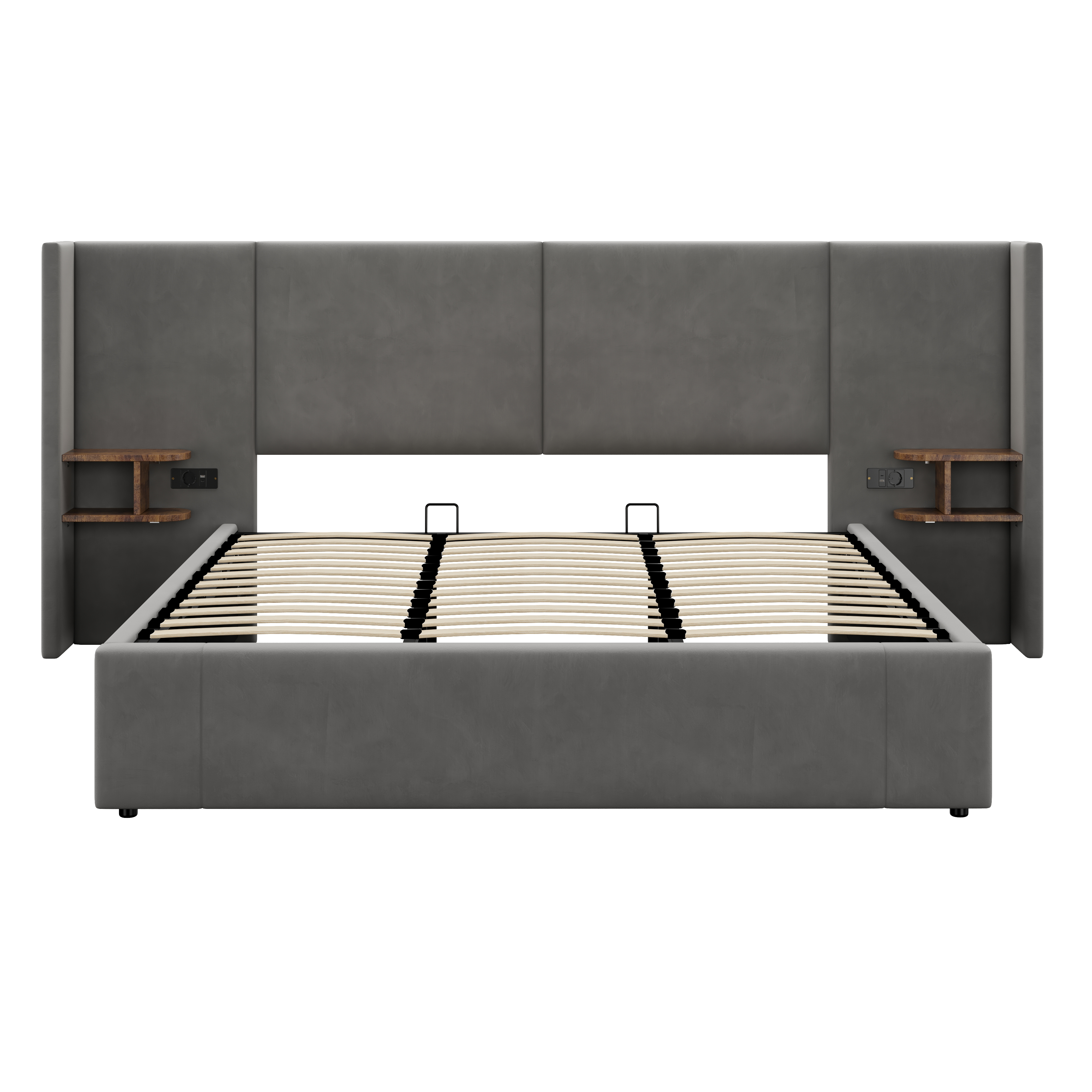 Product Name:Upholstered bed, Super King Size Bed-6ft(180*200cm),Velvet Ottoman Lift Up Super King Size Bed Frame, hydraulic wide-ear bed with USB connection, with sockets, with two bedside tables,No mattre,grey