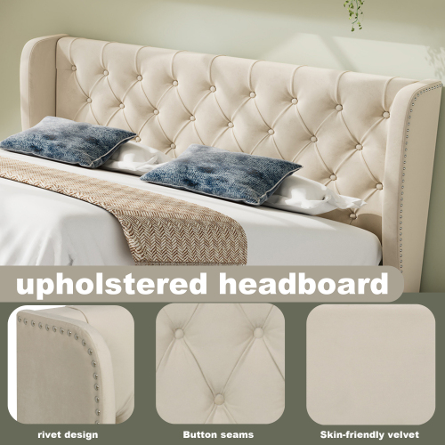 - Timeless design: The upholstered bed has a classic yet modern design thanks to the upholstered look; The thick headboard gives you stable and comfortable back support while reading or watching TV.