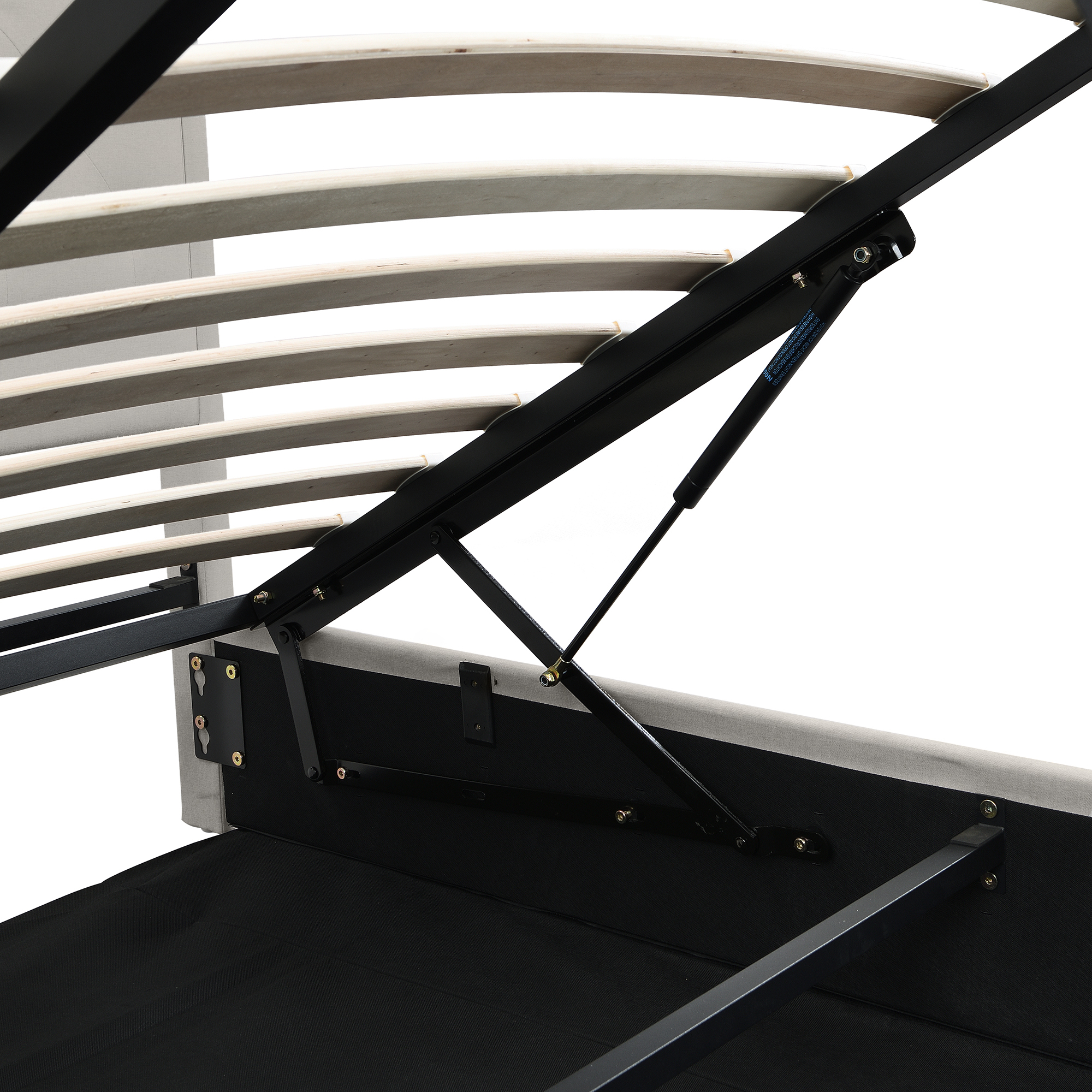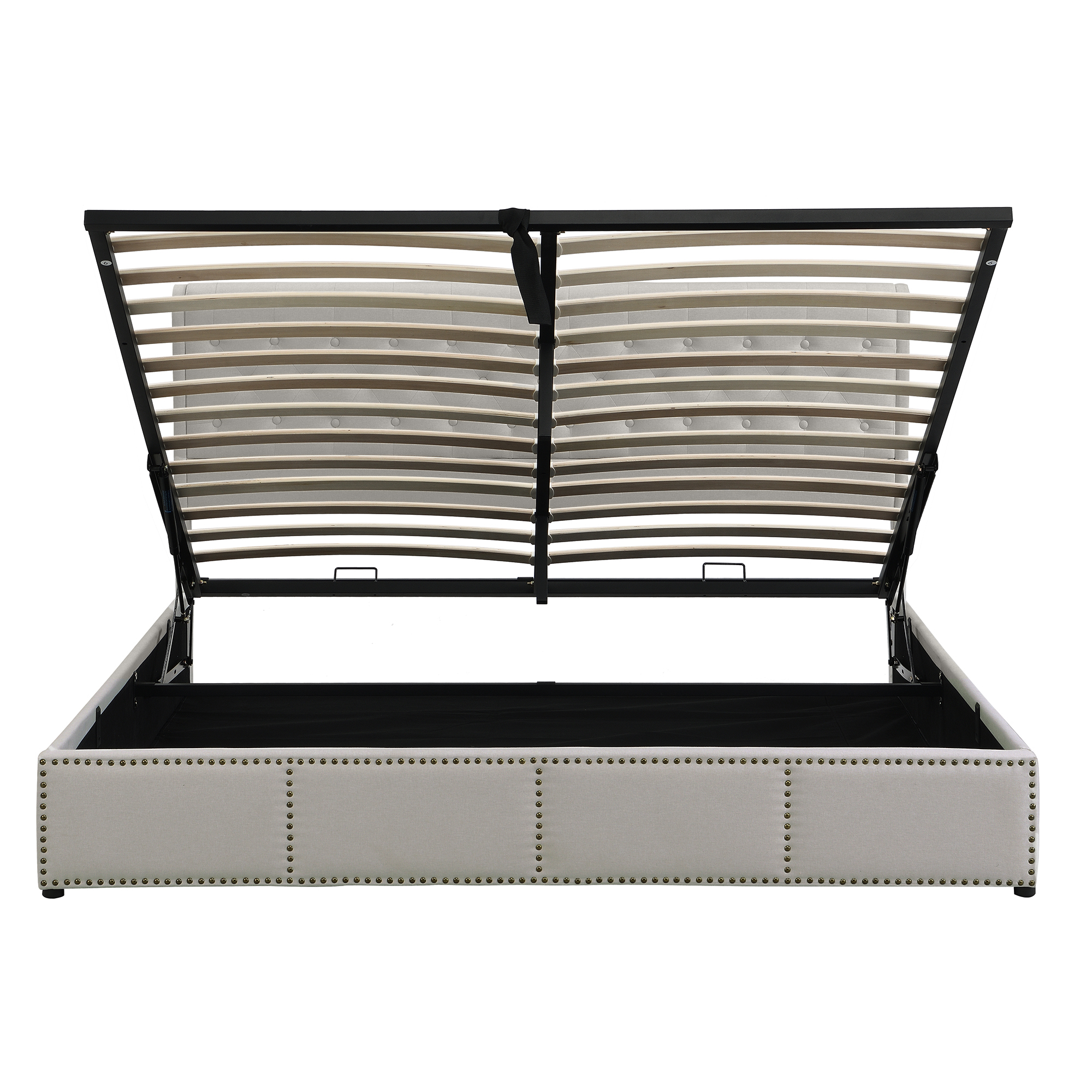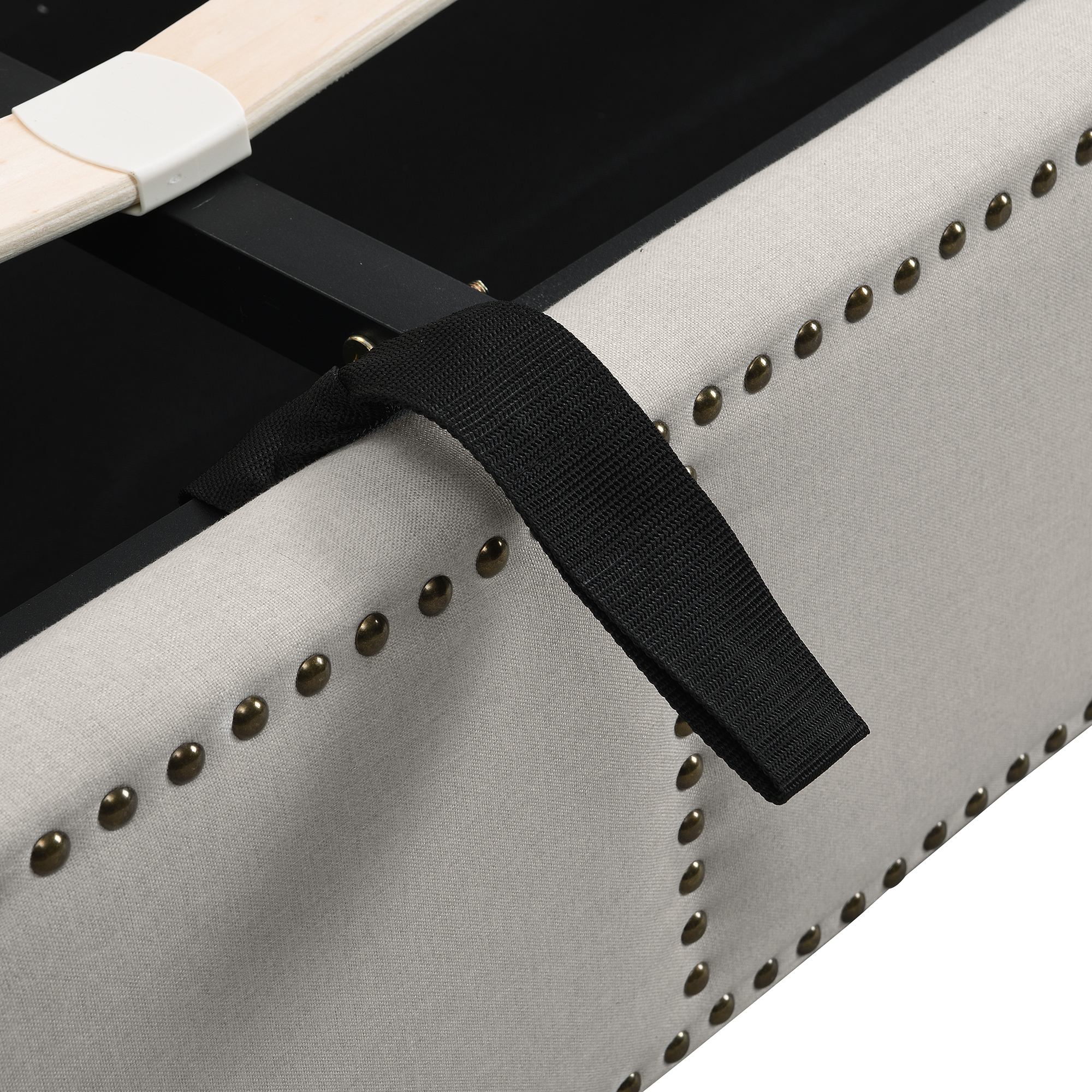 Product Name:Upholstered bed,Super King Size Bed-6ft(180*200cm),with hydraulic lever, functional storage bed, rivet decoration, without mattress, linen, light grey