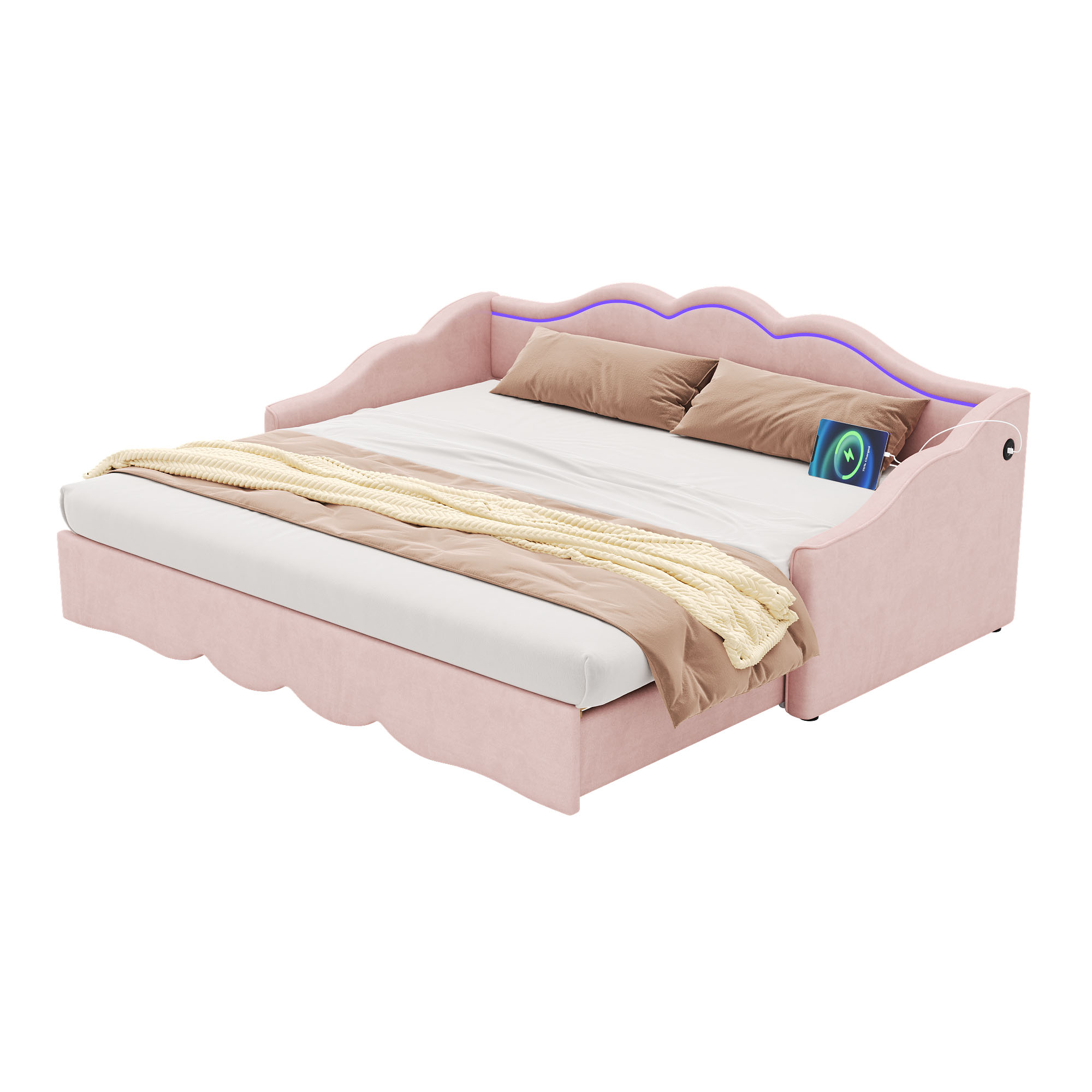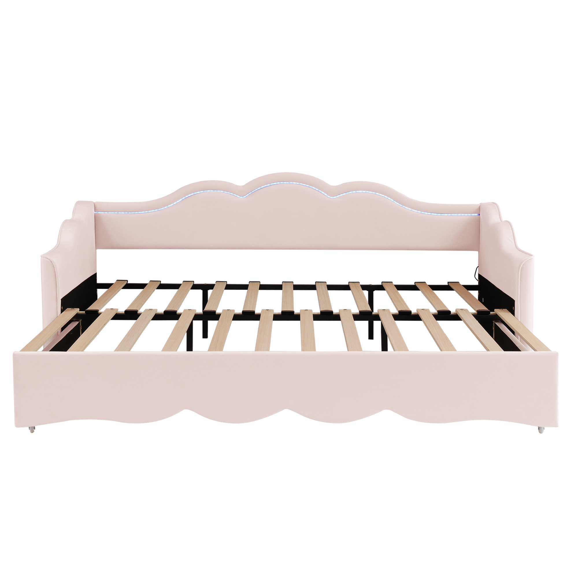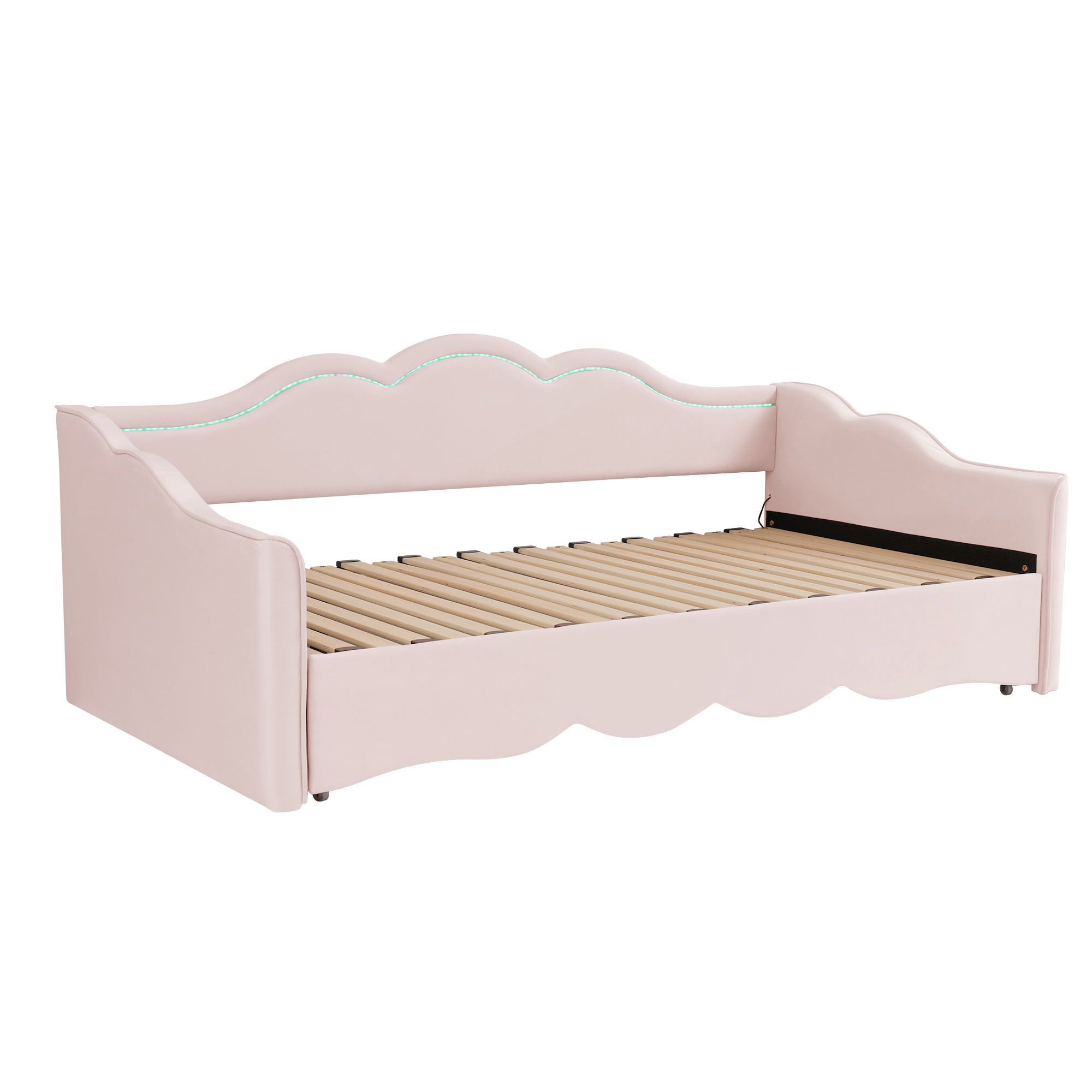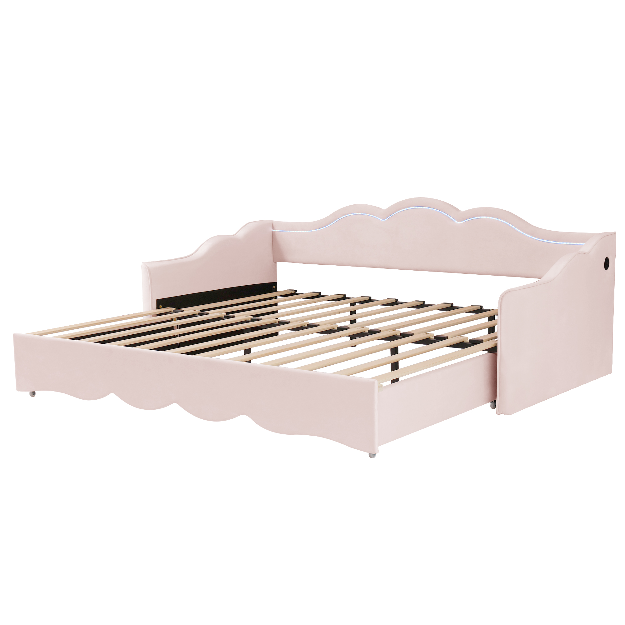 Product Name:Upholstered Daybed, Sofa Bed, 90x190 cm, Extendable to 180 cm, with LED Lighting and USB Port, pink Velvet