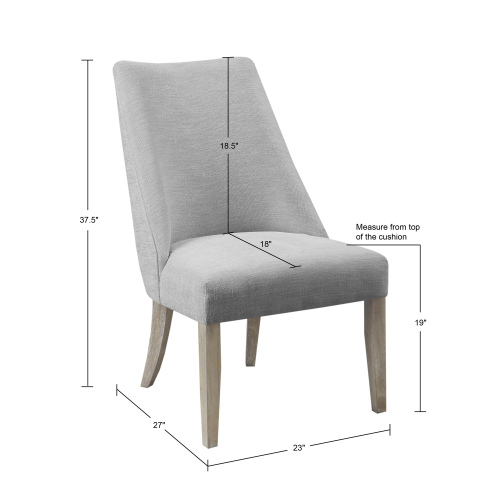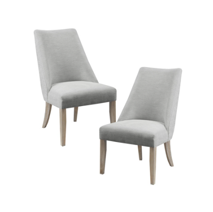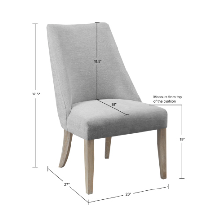 Complete your dining room decor with the Martha Stewart winfield cining chair set of 2. Each dining chair is upholstered and features a reclaimed finish on the solid wood legs, for a charming farmhouse look. With a sleek and clean design, this 2 piece dining chair set adds the perfect touch to complement your dining space. Leg assembly required and tools are included.