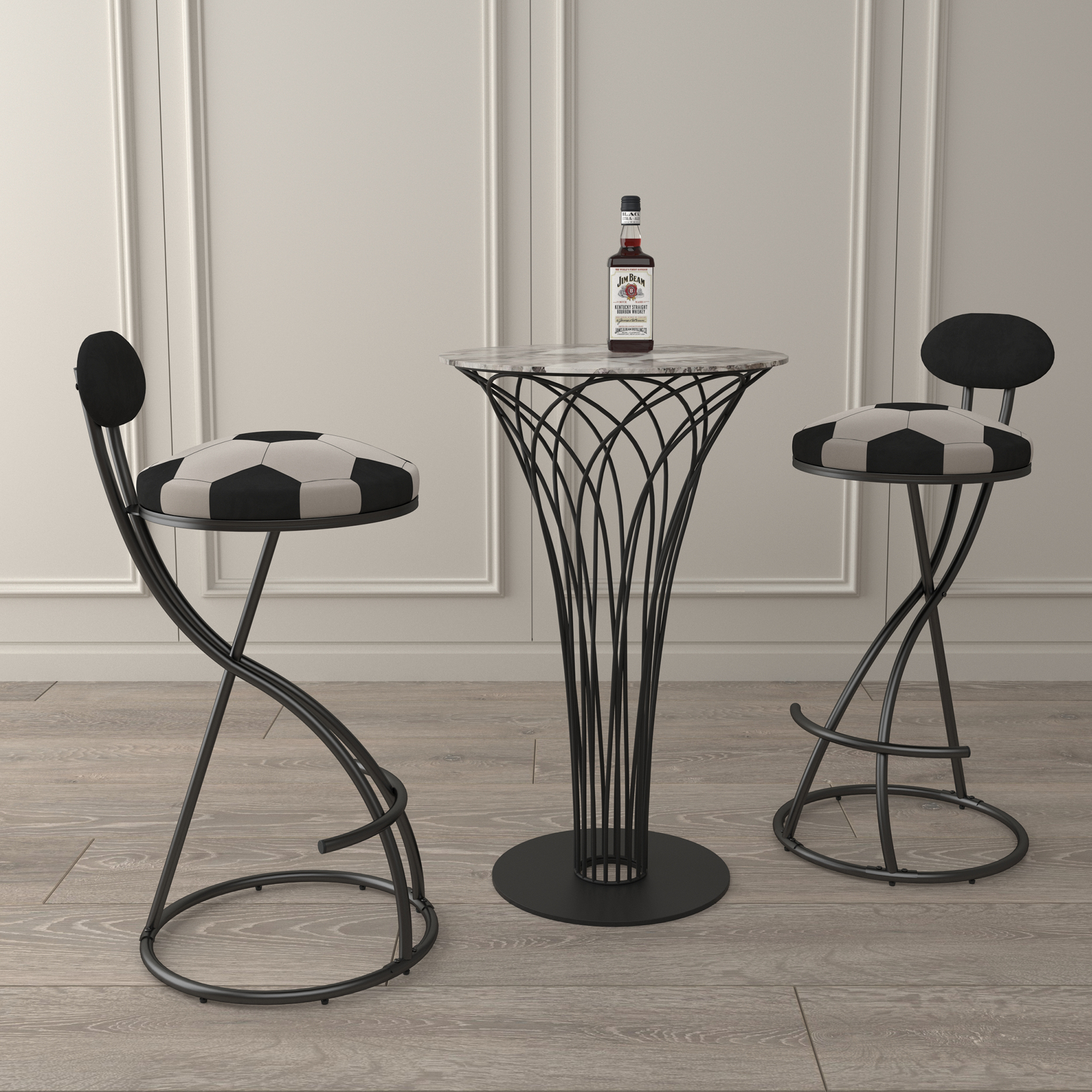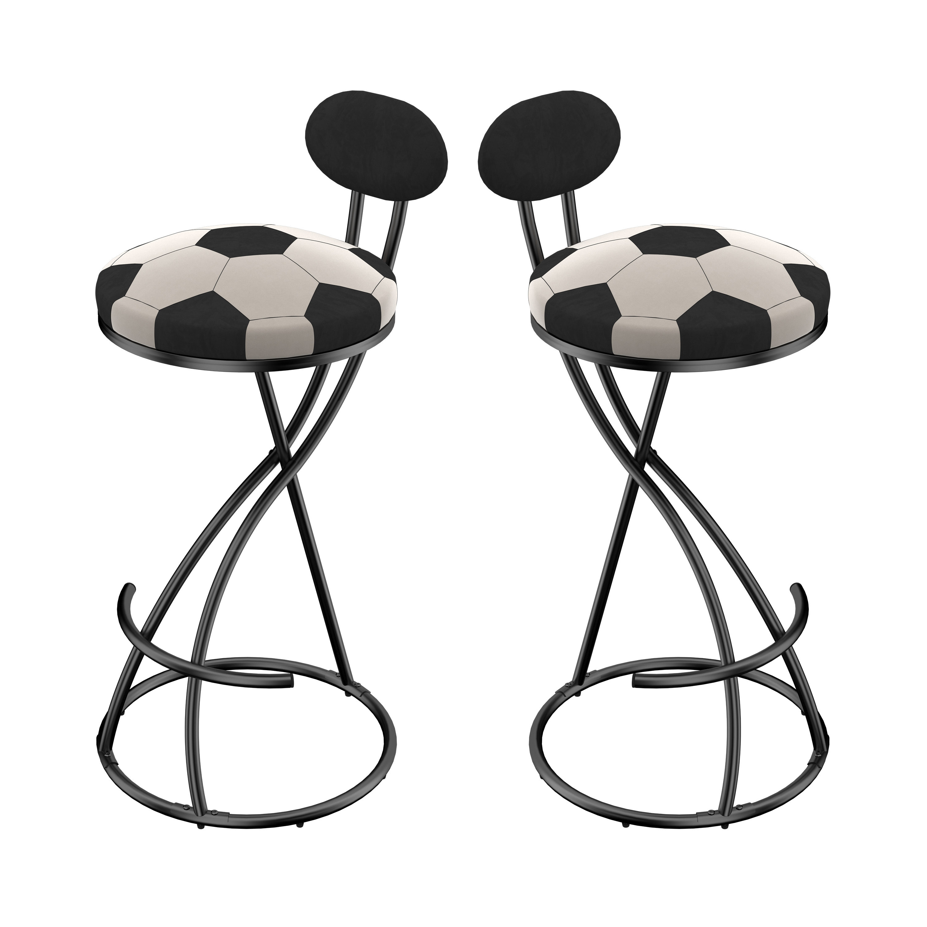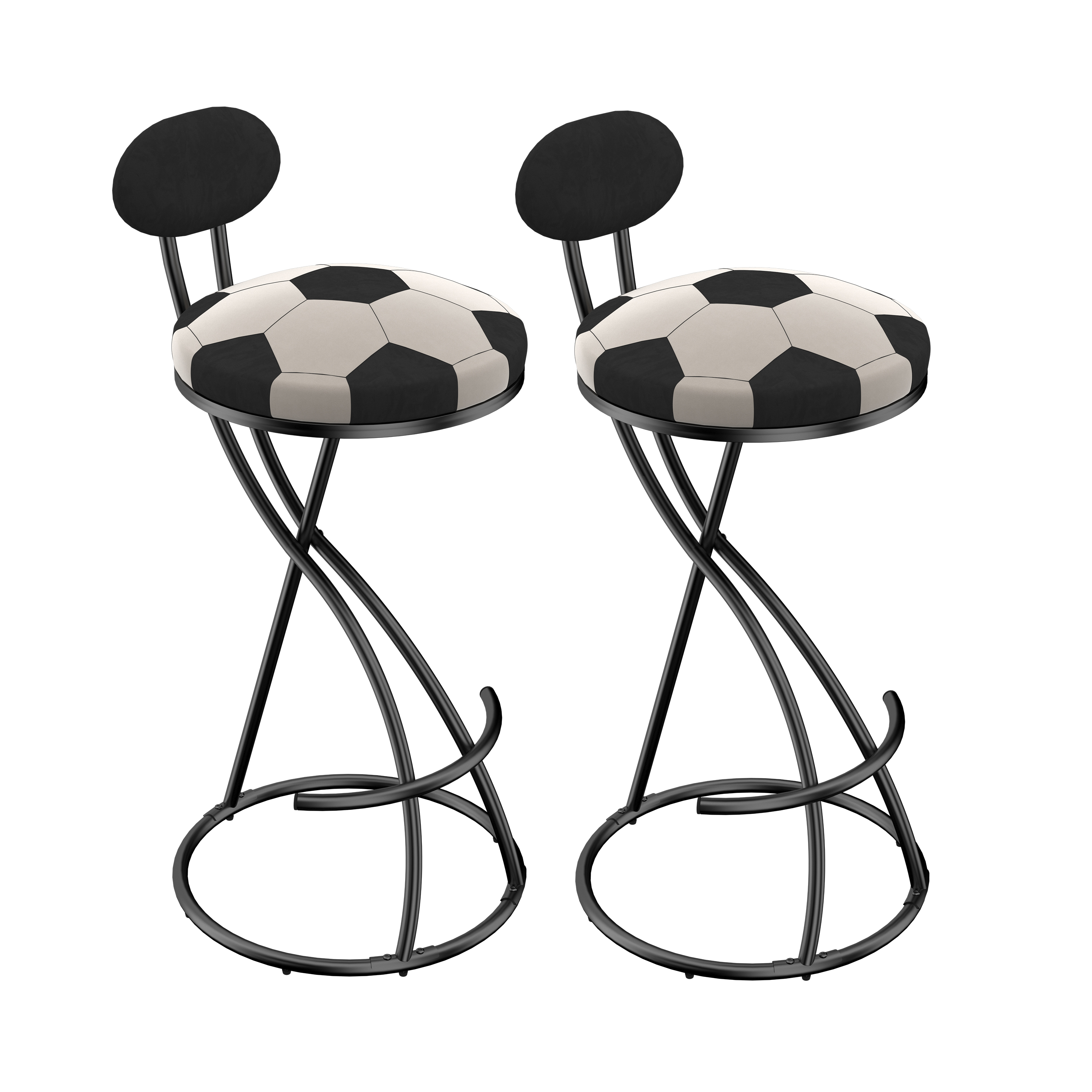 Product Name:Upholstered S-shaped Barstools Set of 2 Velvet Counter Bar Stools Football Print Round Dining Stool for Kitchen & Living Room (Black Frame & Black Back)
