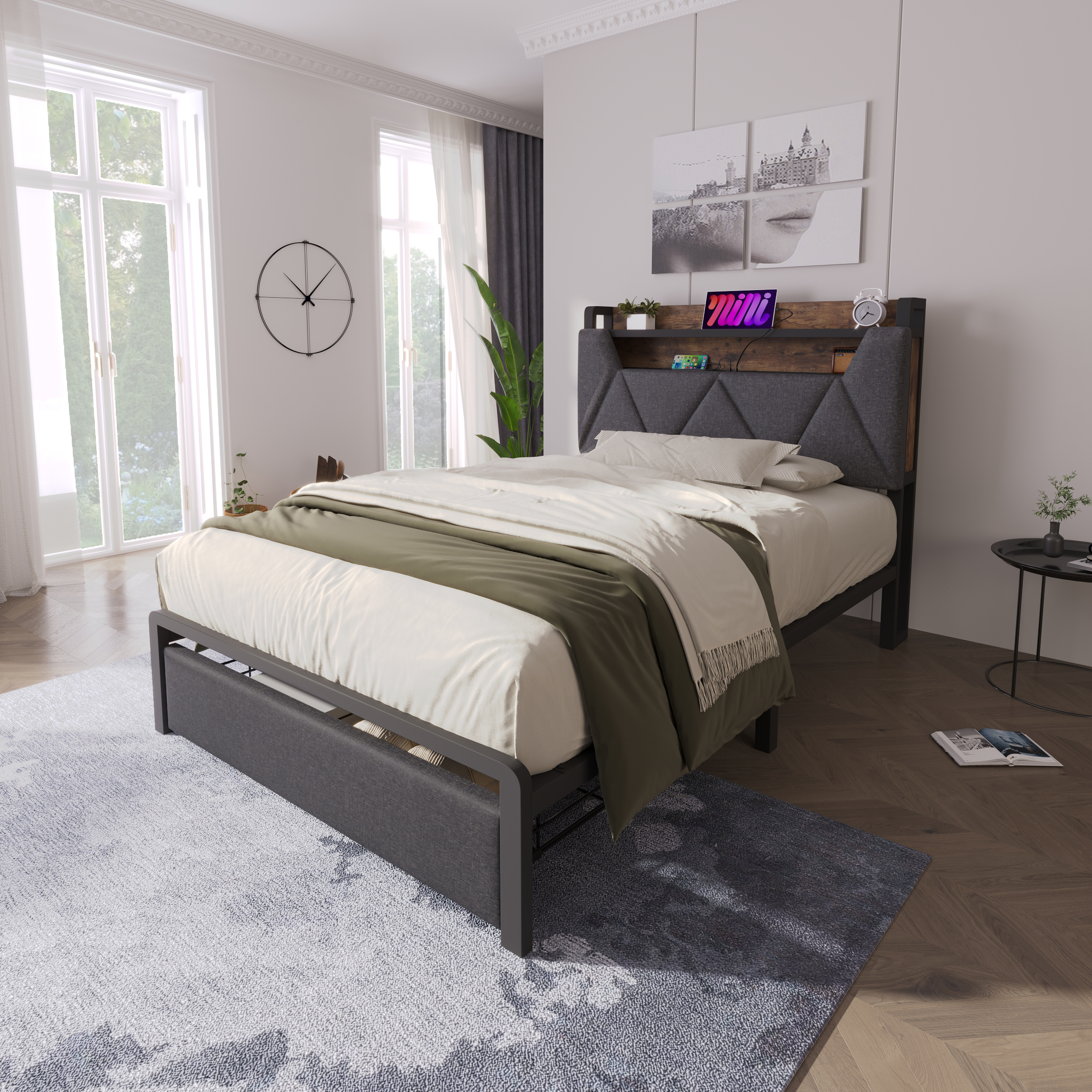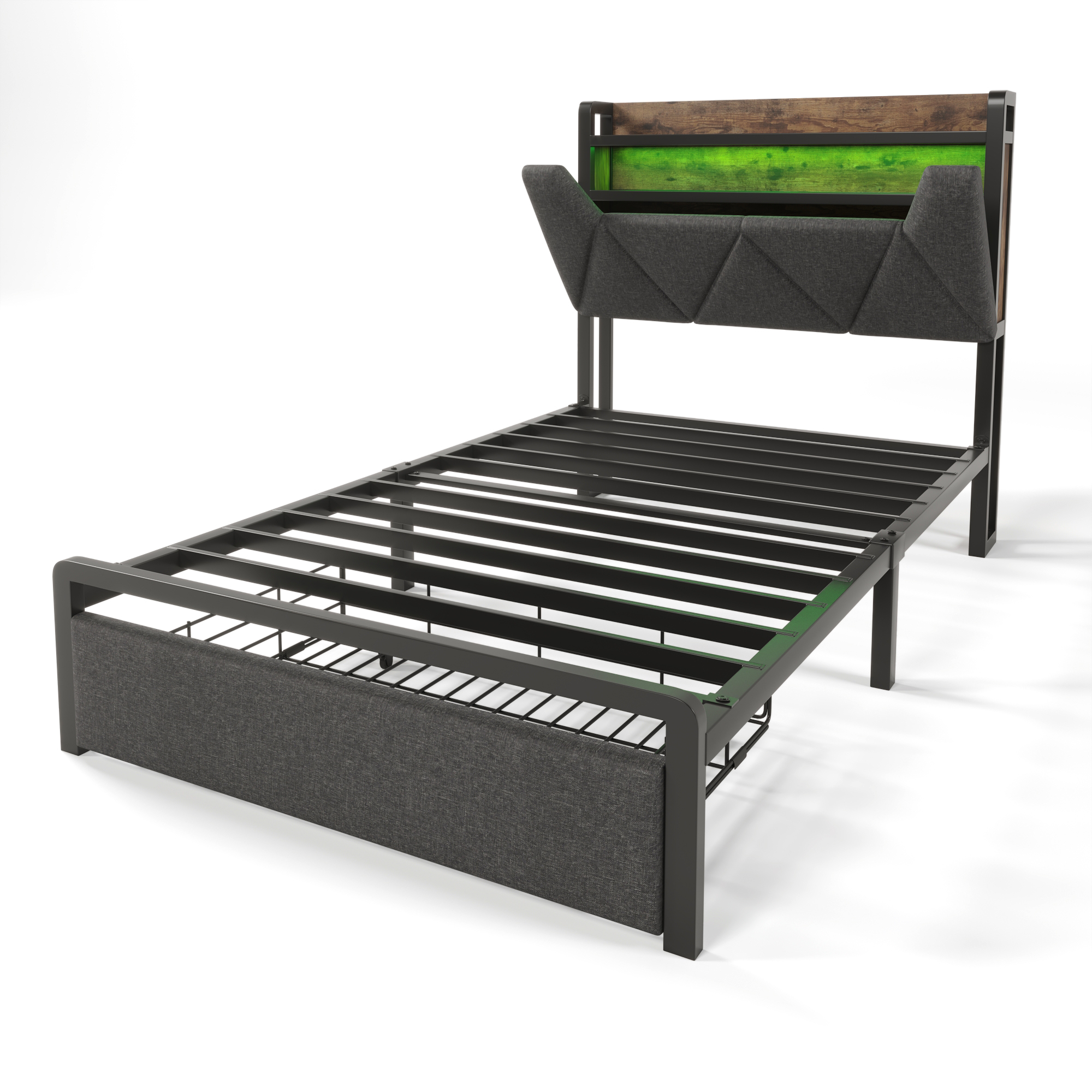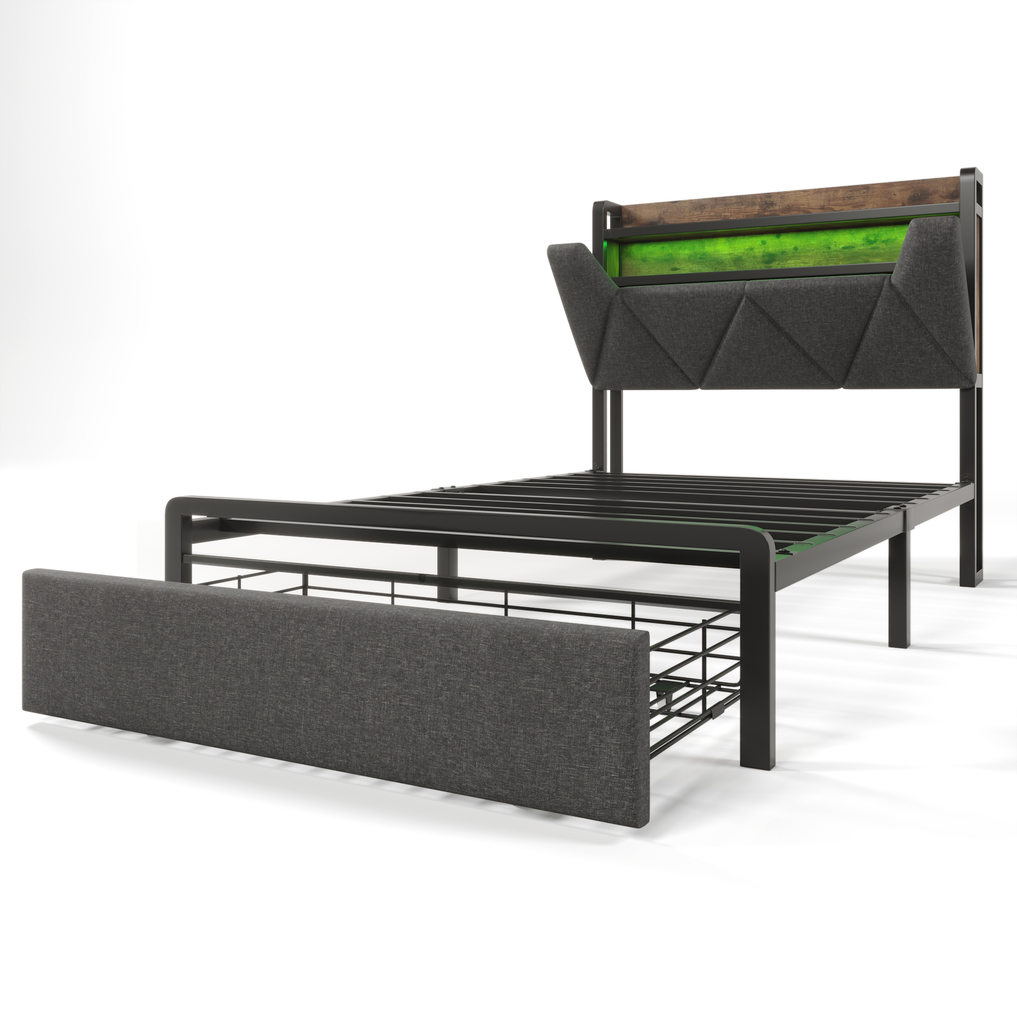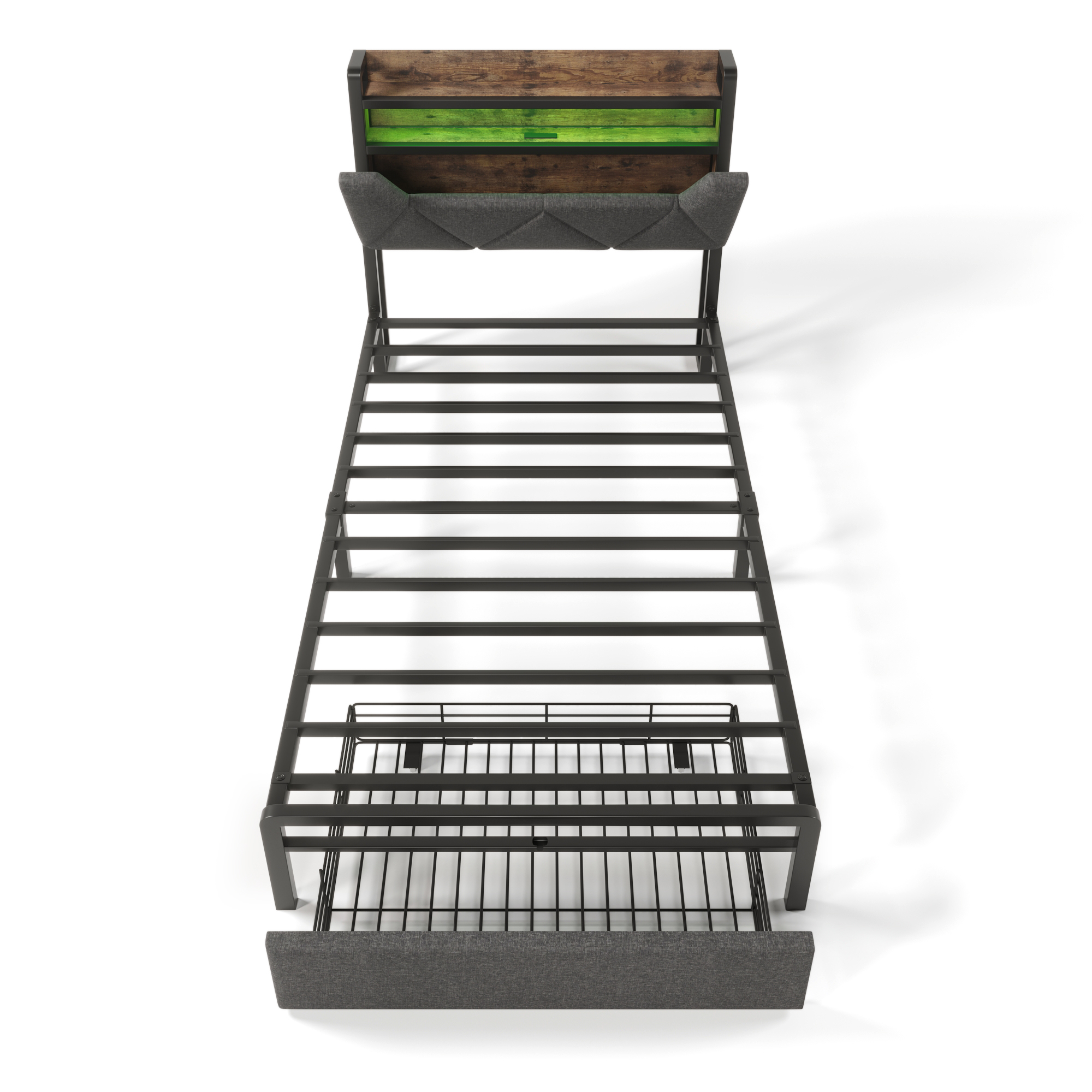 Product Name:Upholstered Single Bed with LED Lighting, USB Type-C Charging Function, Storage Headboard and Drawers, 3ft Single Bed 90 x 190 cm, Storage Bed Frame with Metal Slatted Frame,Linen, Grey(No Mattress)