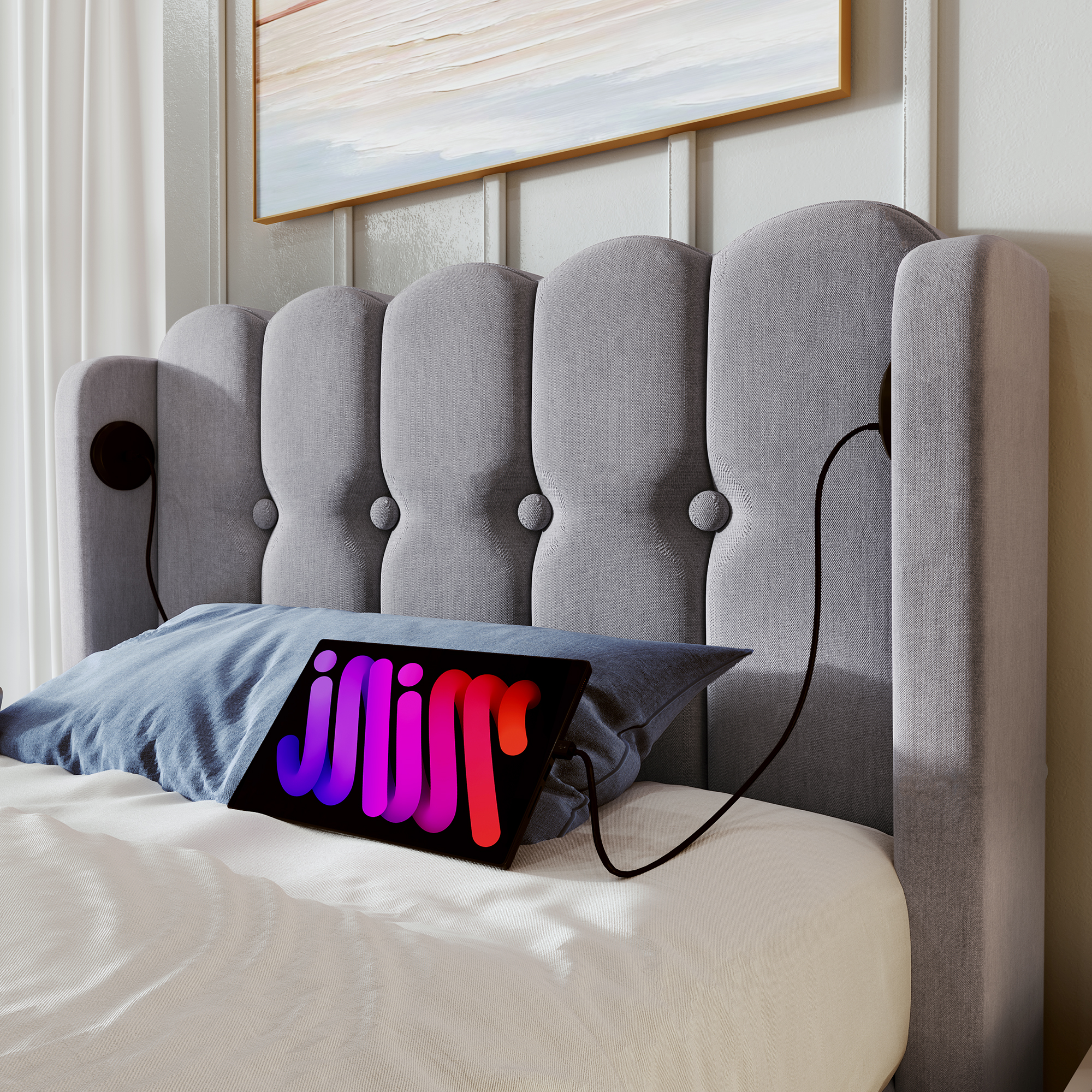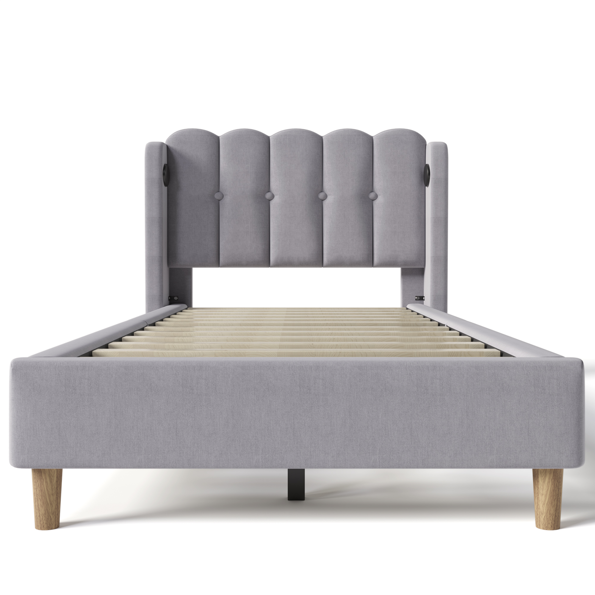Product Name:Upholstered Single Bed with USB and Type-C Charging, Bed Frame with Wooden Slatted Frame, Teenager Bed for Bedroom & Guest Room, 3ft 90 x 190 cm Bed Frame, Grey, Linen Material (No Mattress).
