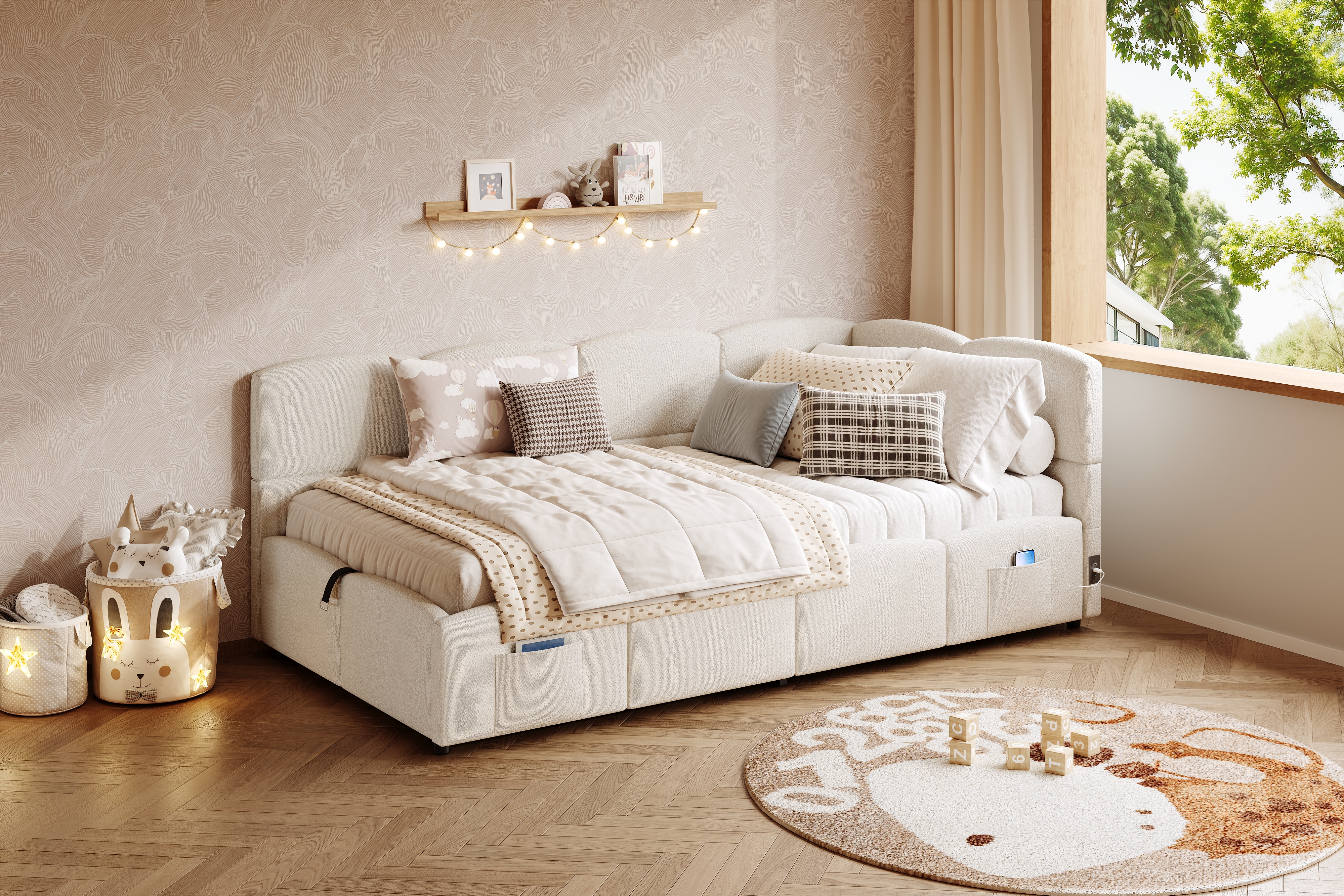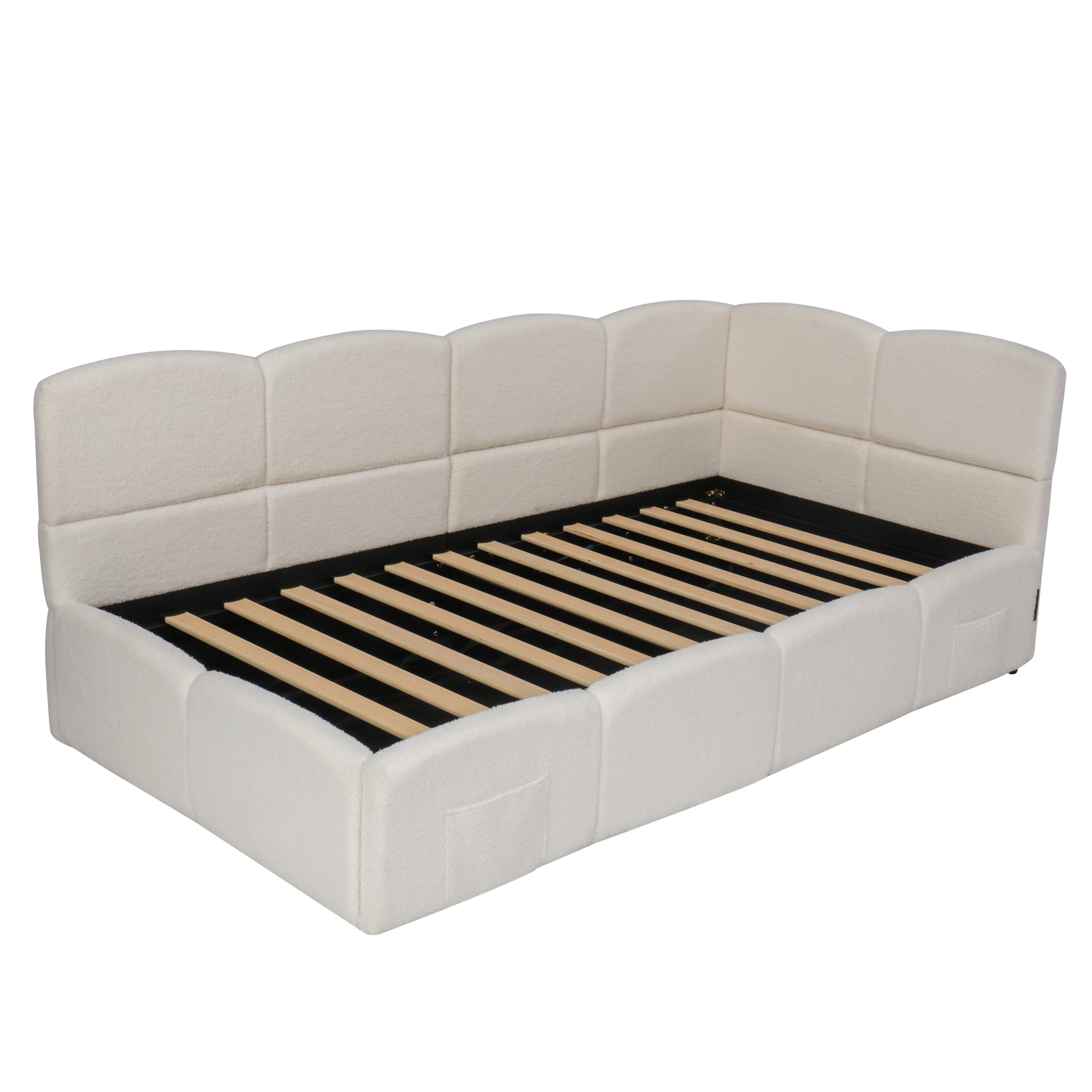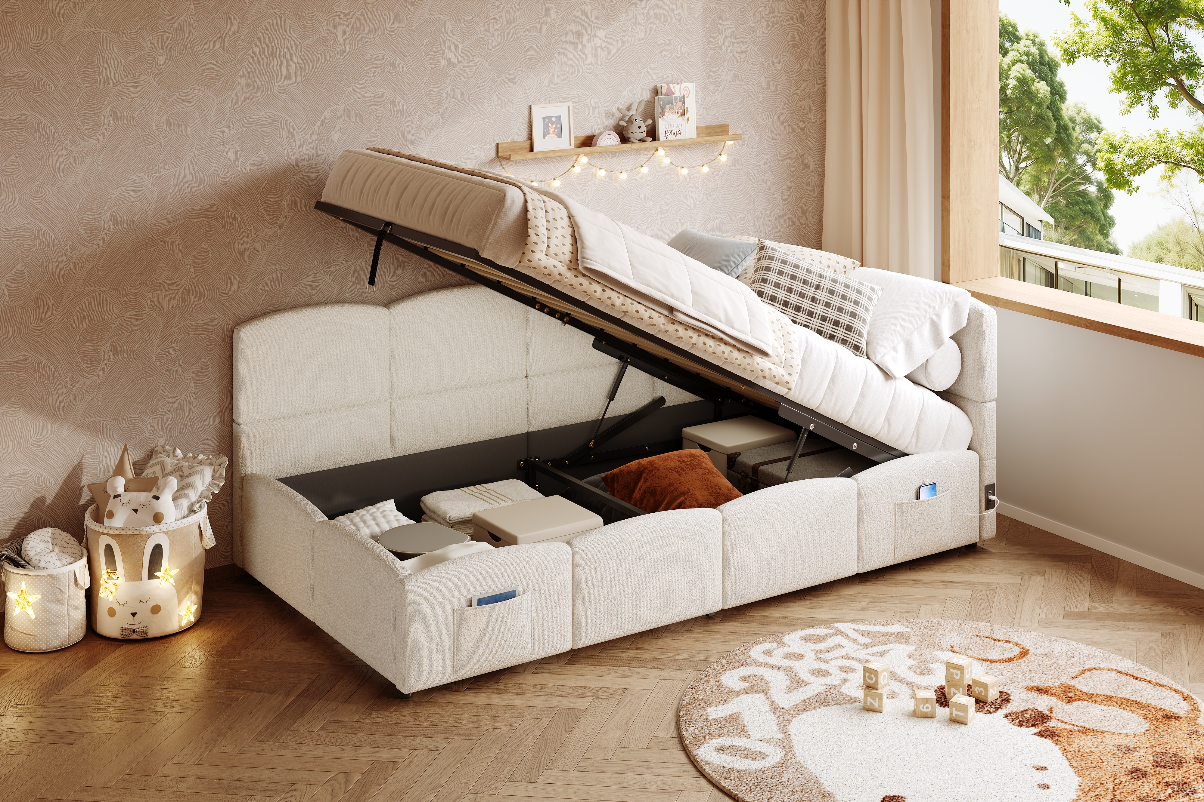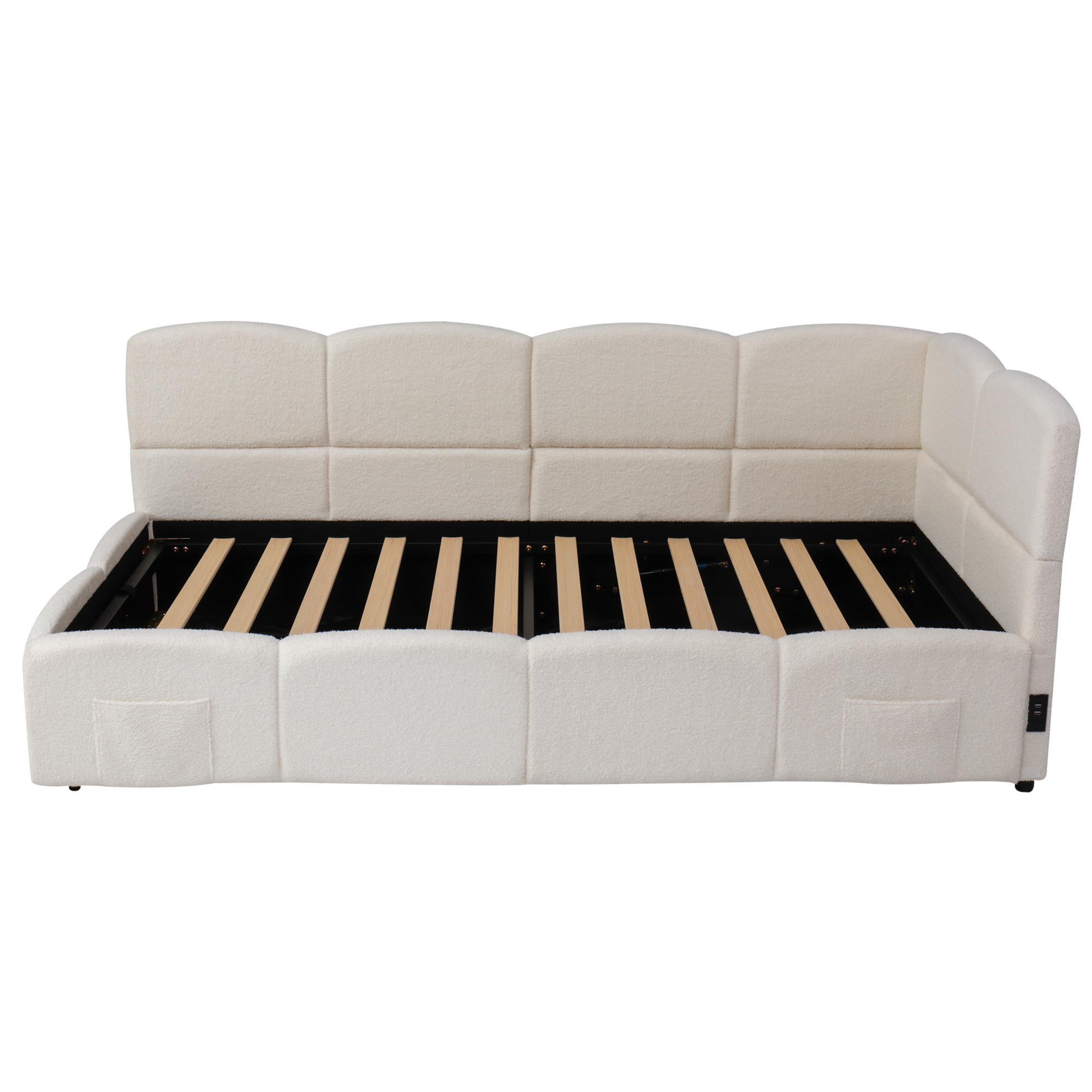 Product Name:Upholstered sofa bed 90 x 190 cm, 3-ft single daybed, children's bed, single sofa bed with slatted frame, hydraulic storage, USB charging, boucle, beige(without mattress)