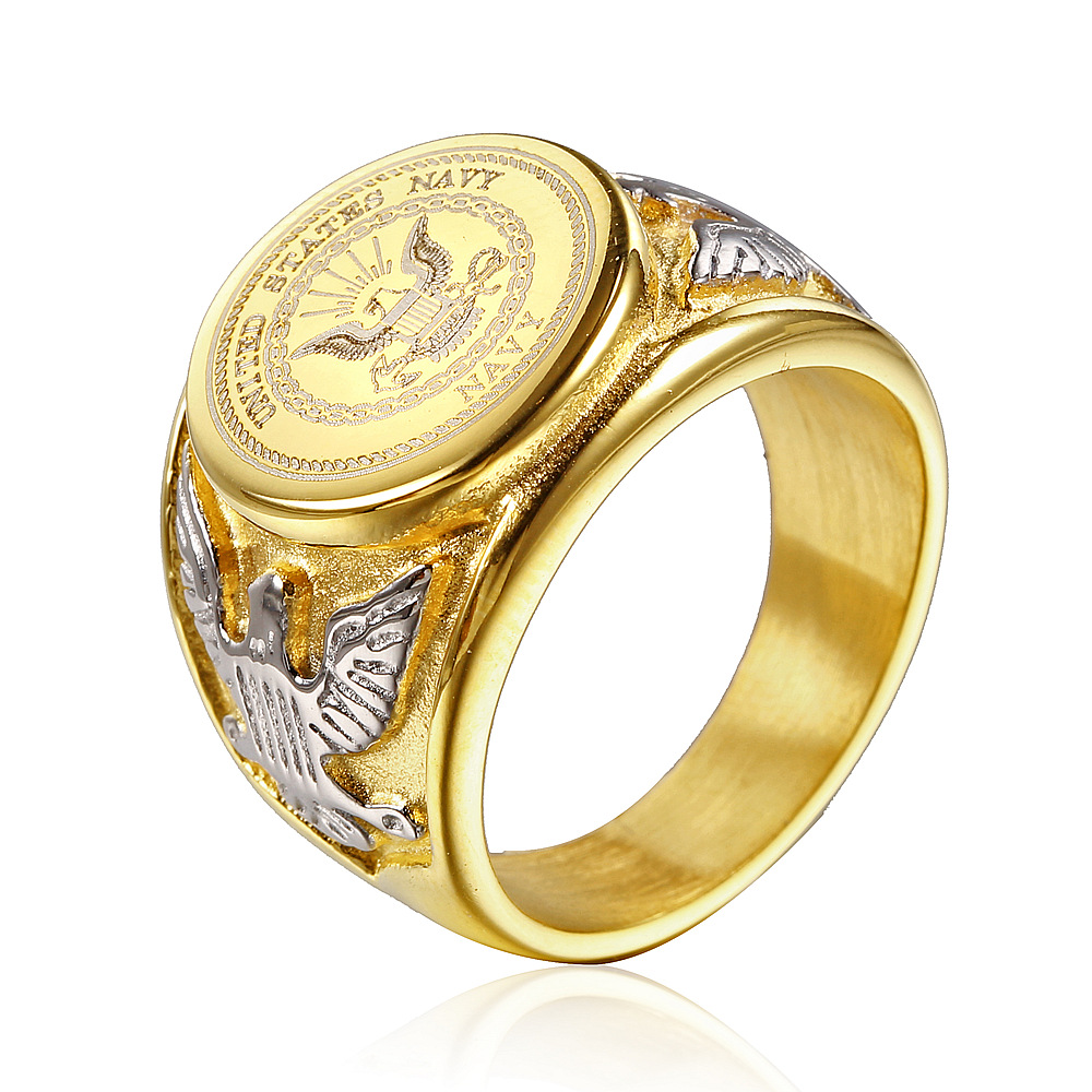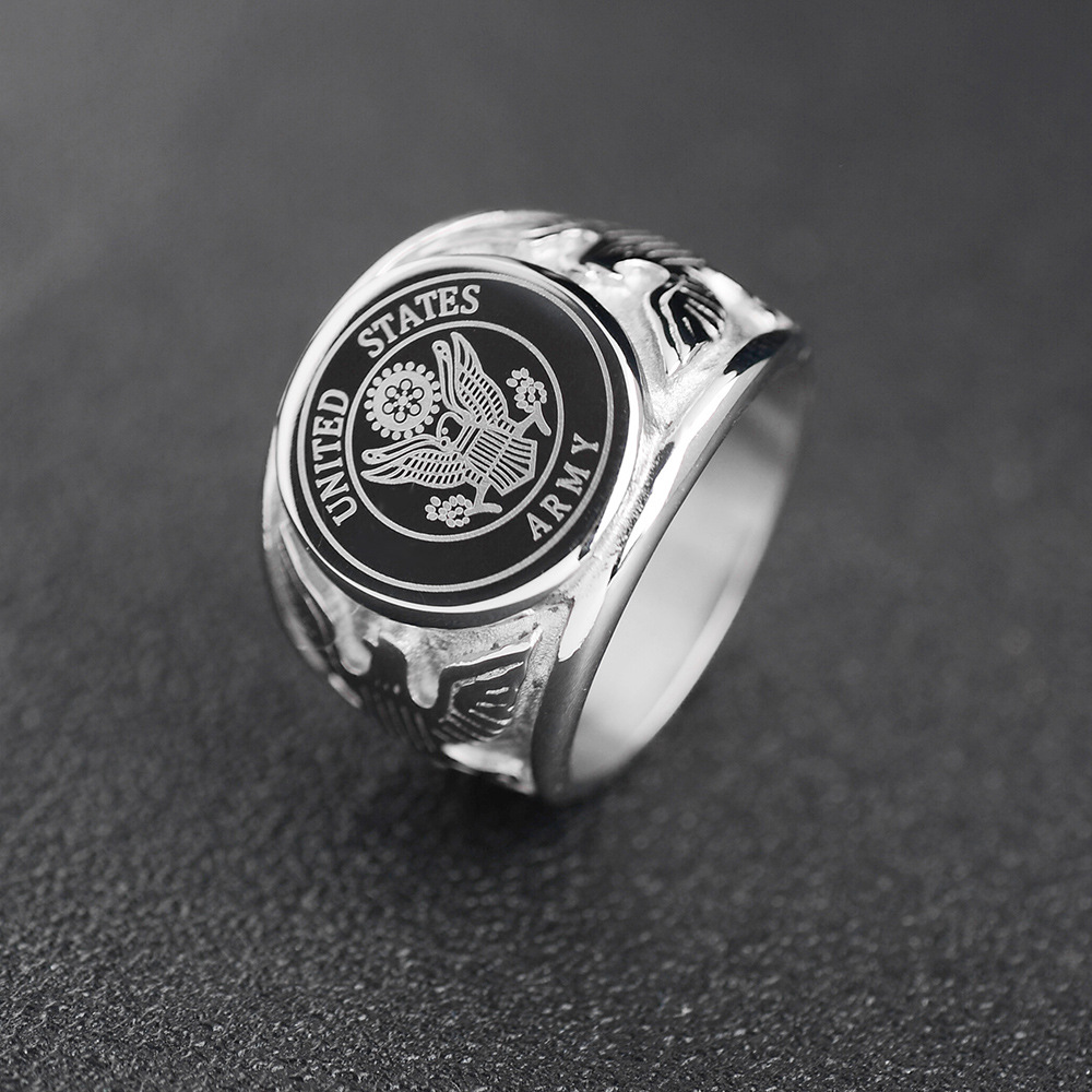US Army Badge Soldier Ring Titanium Steel Men's Ring US Army Eagle Logo Personality Pull Finger
