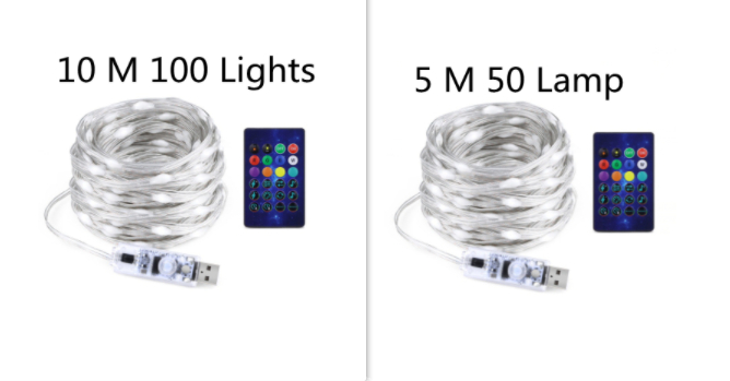 Power supply: 5 m 50 lamp (USB Bluetooth 24 key remote control),10 m 100 lamp (USB Bluetooth 24 key remote control),20 m 200 lamp (USB Bluetooth 24 key remote control),USB Bluetooth controller