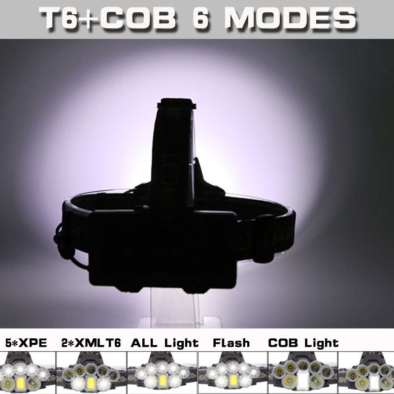 Switching mode: XPE light on / T6 light on / full light / flashing / COB strong light / COB low light
